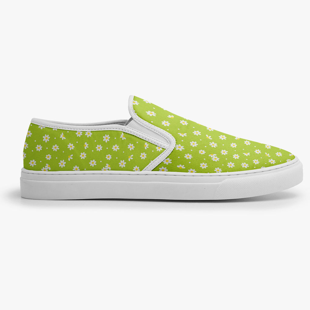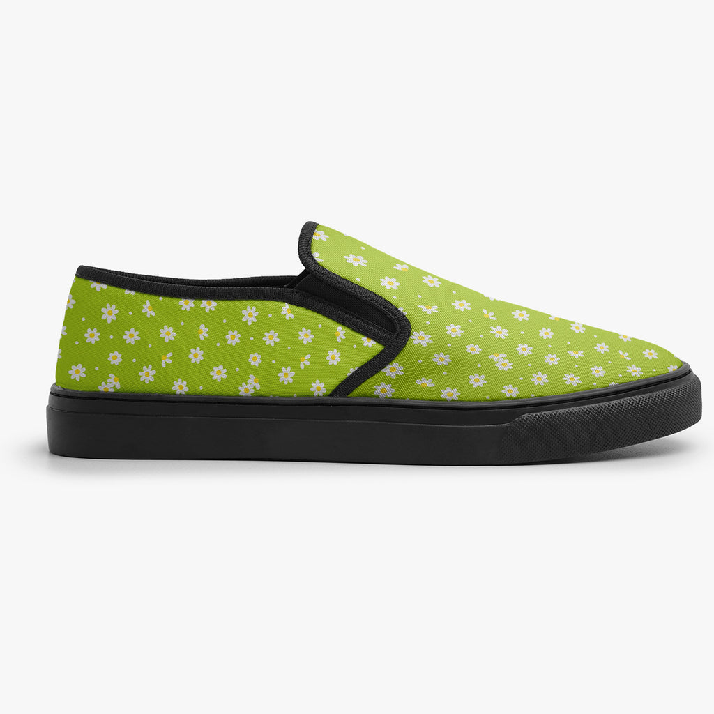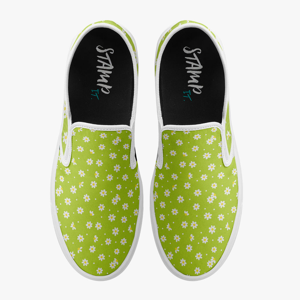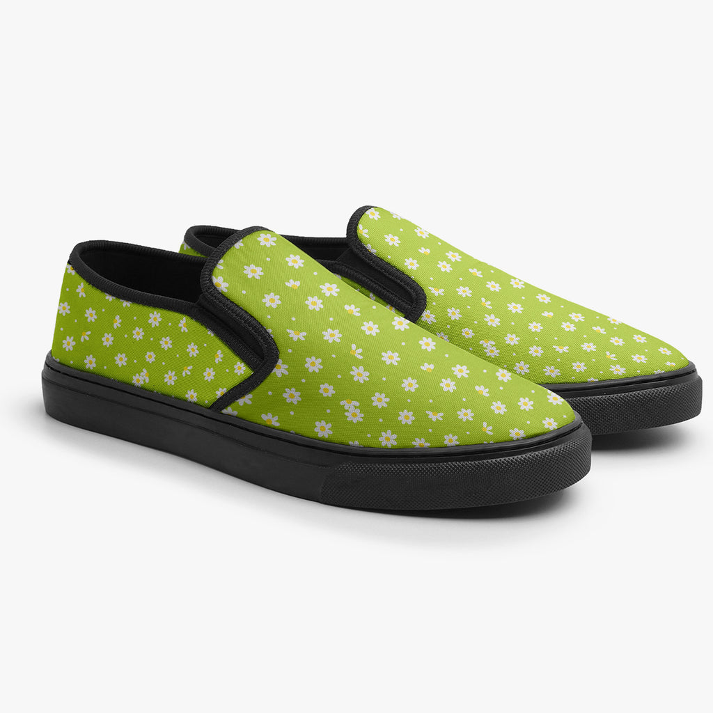 Calçado Slip On Verde Margarida Sunflower Tumblr Flores e Folhas, confeccionado em lona, com cores e estampas exclusivas.