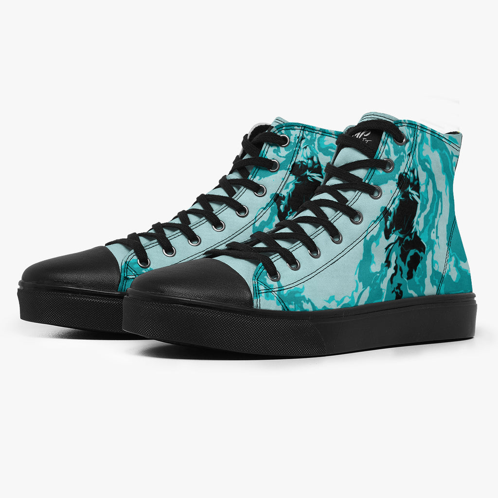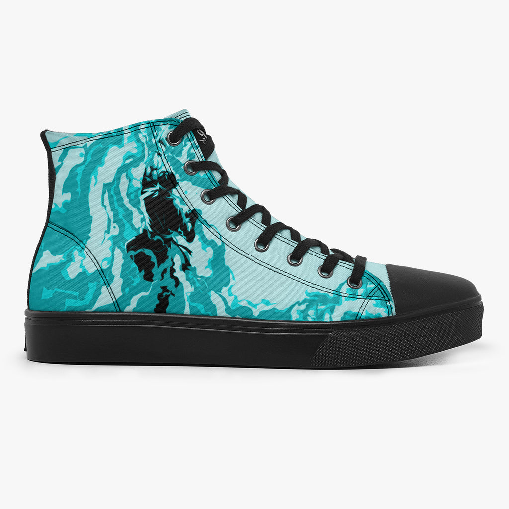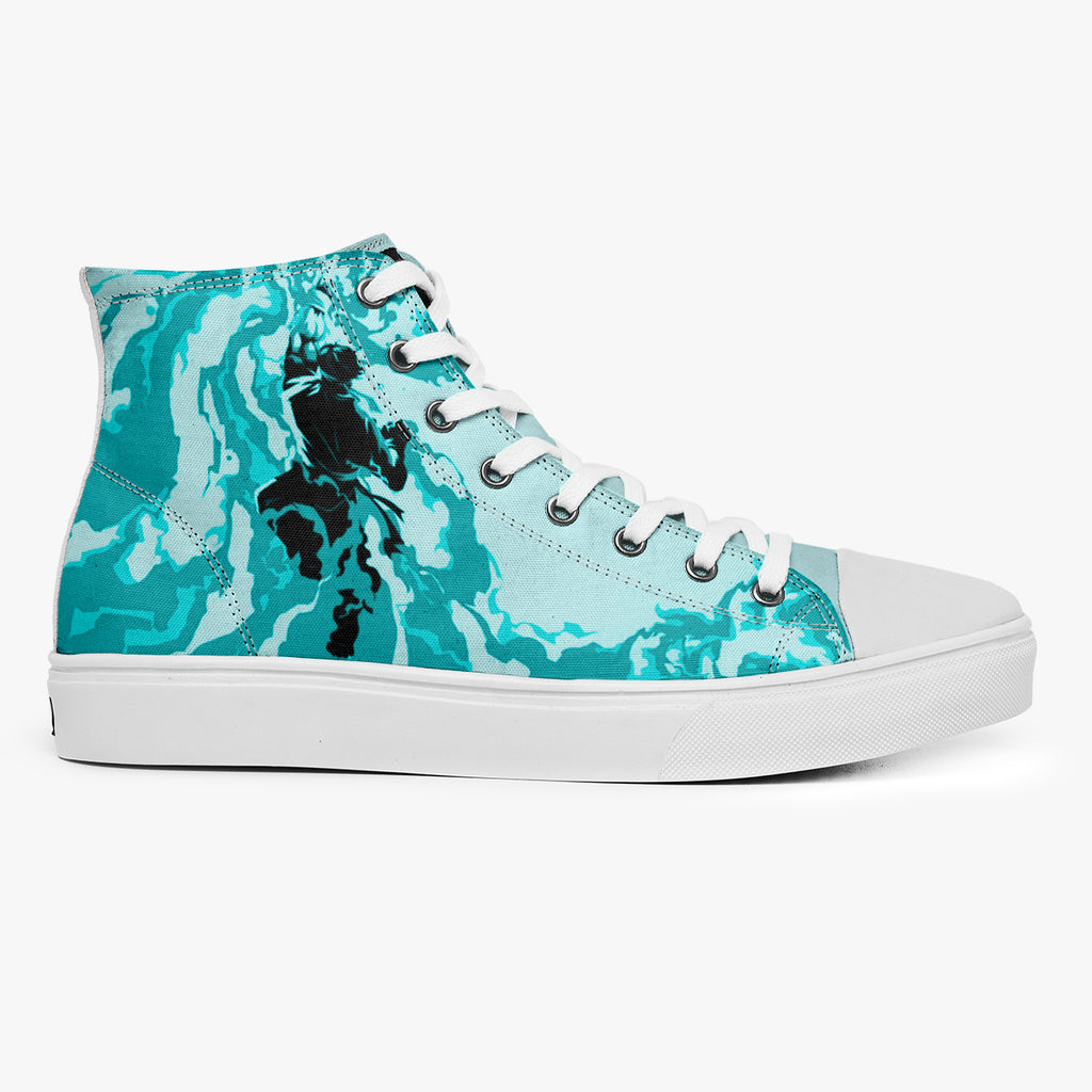 Tênis Cano Alto Azul Jogos Clássicos Street Fighter Ryu Power Games, confeccionado em lona, com cores e estampas exclusivas.