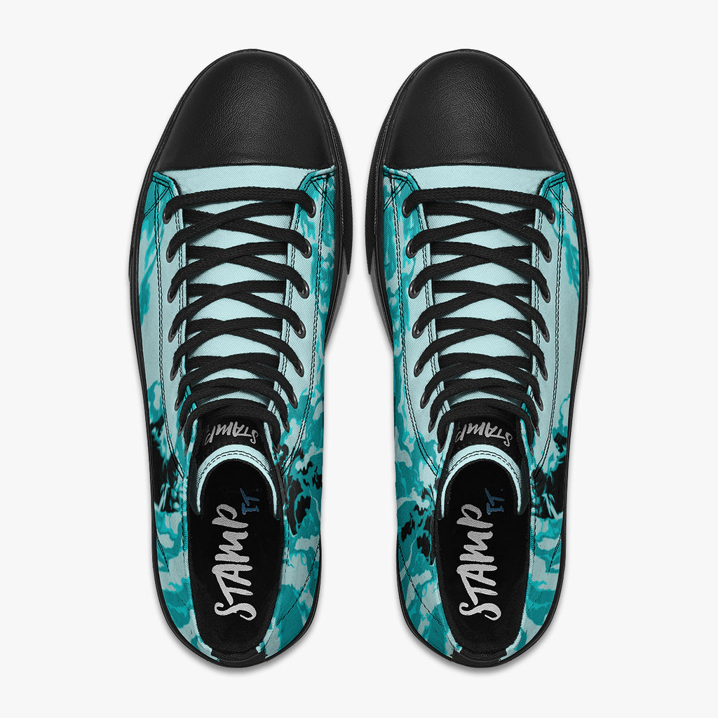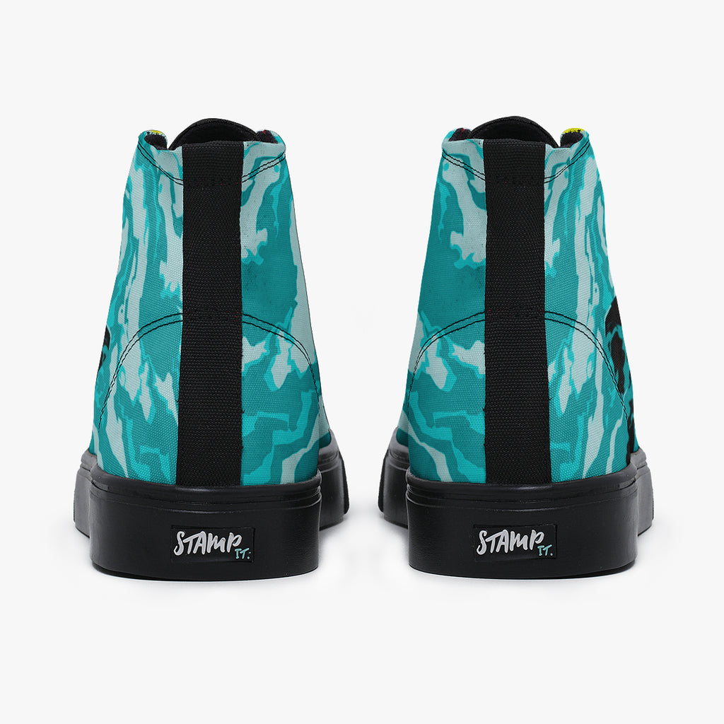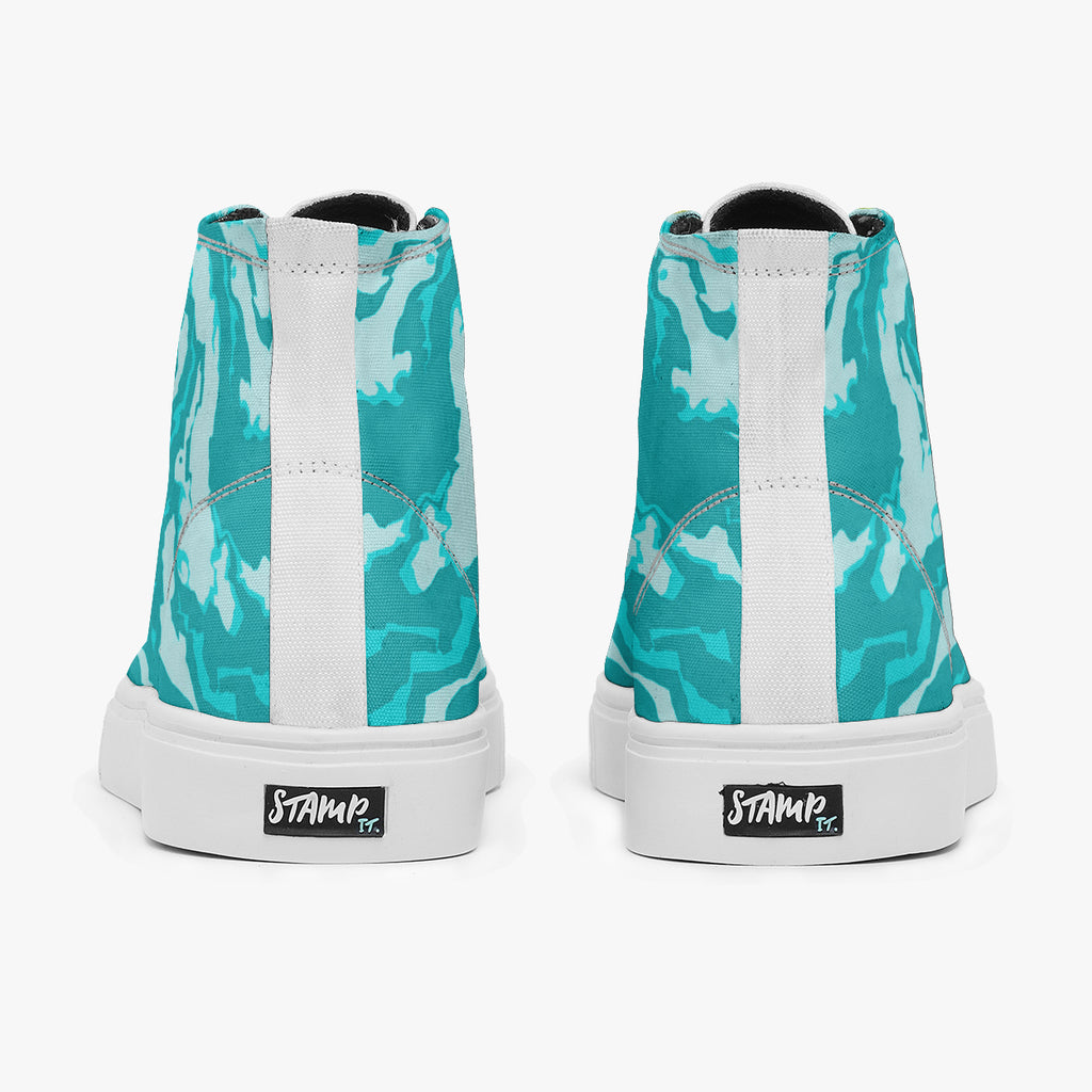 Tênis Cano Alto Azul Jogos Clássicos Street Fighter Ryu Power Games, confeccionado em lona, com cores e estampas exclusivas.
