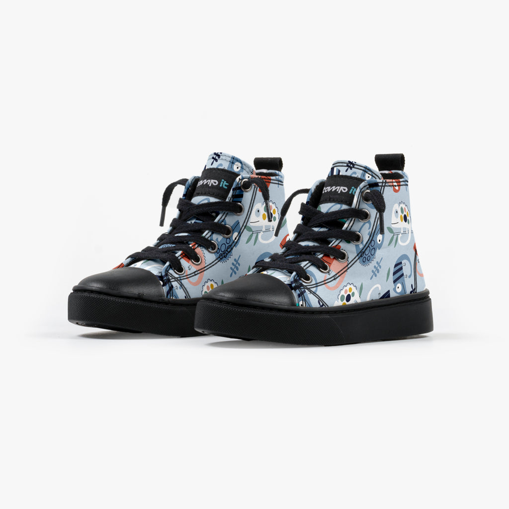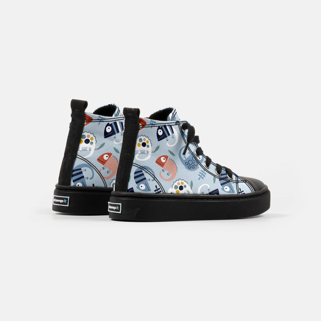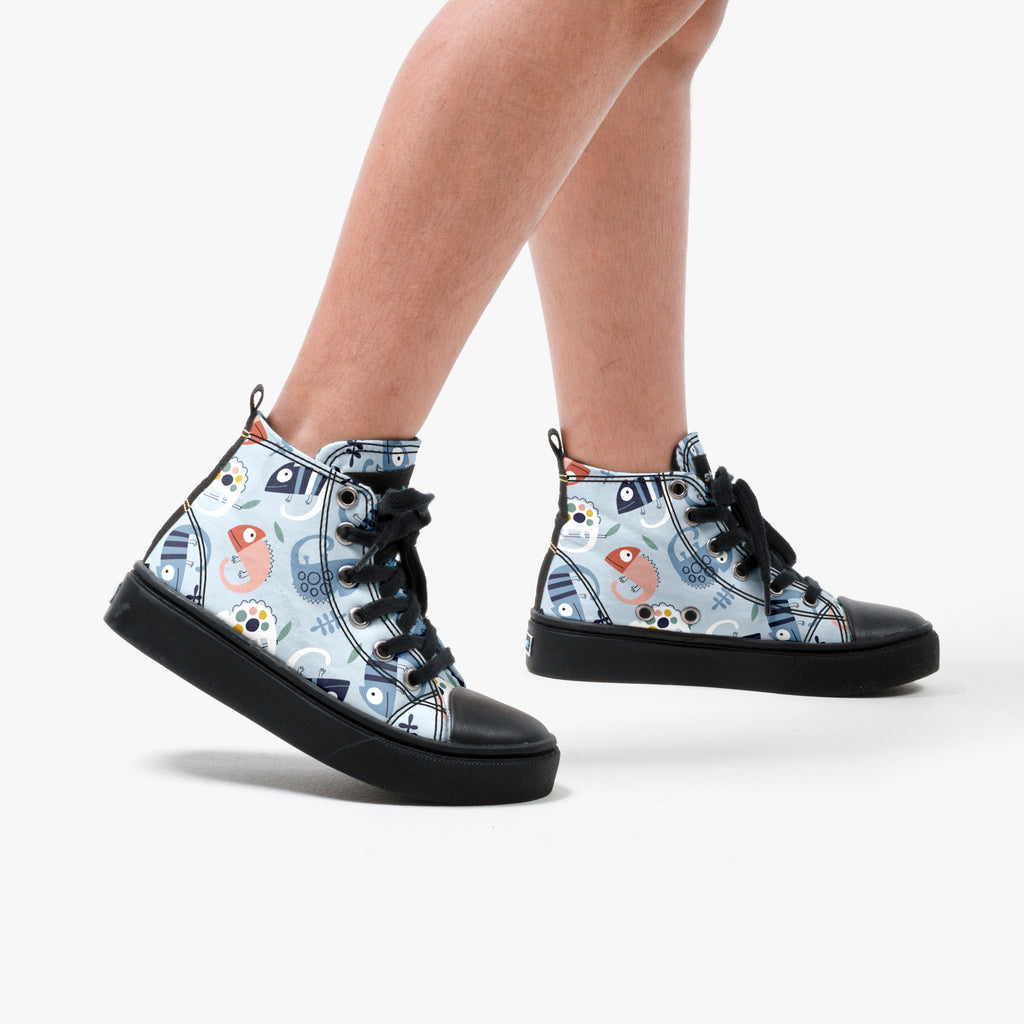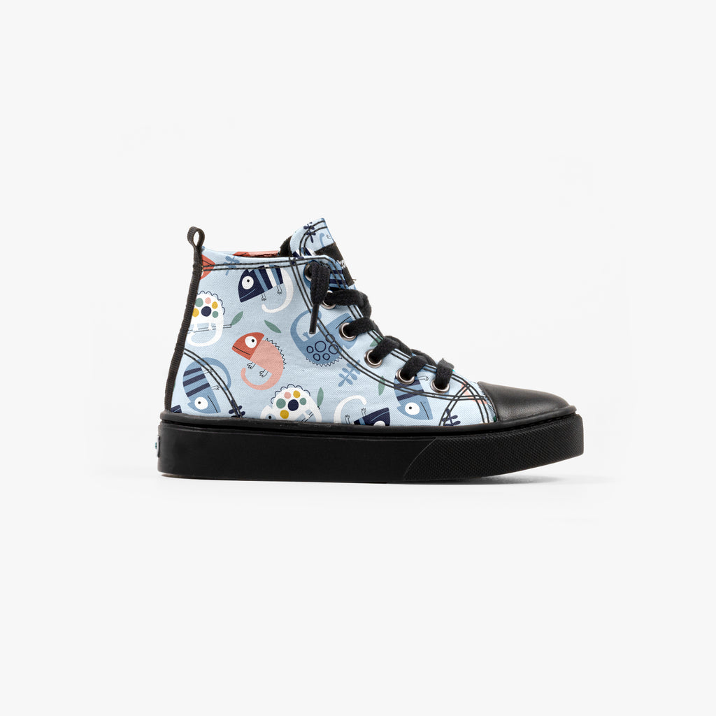 Tênis Cano Alto Infantil Chameleon, confeccionado em lona, com cores e estampas exclusivas.