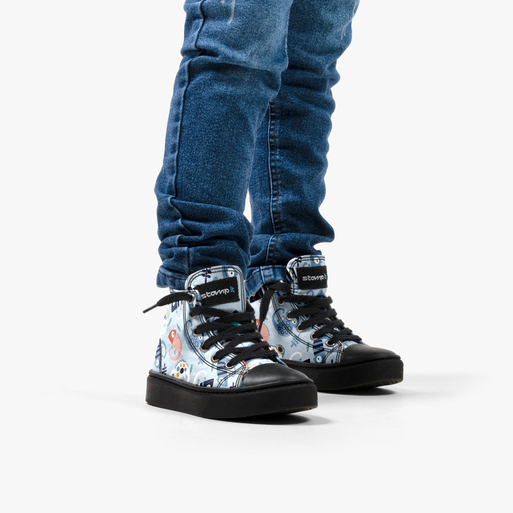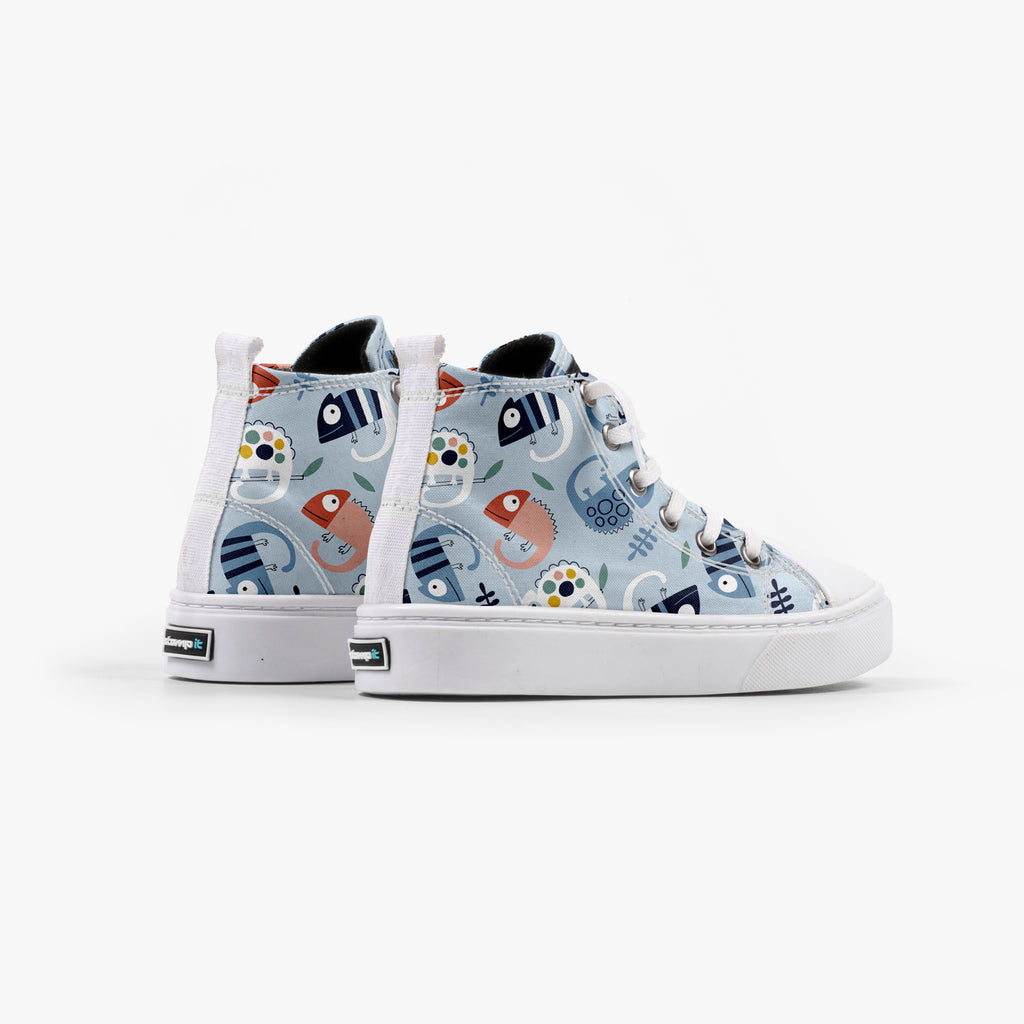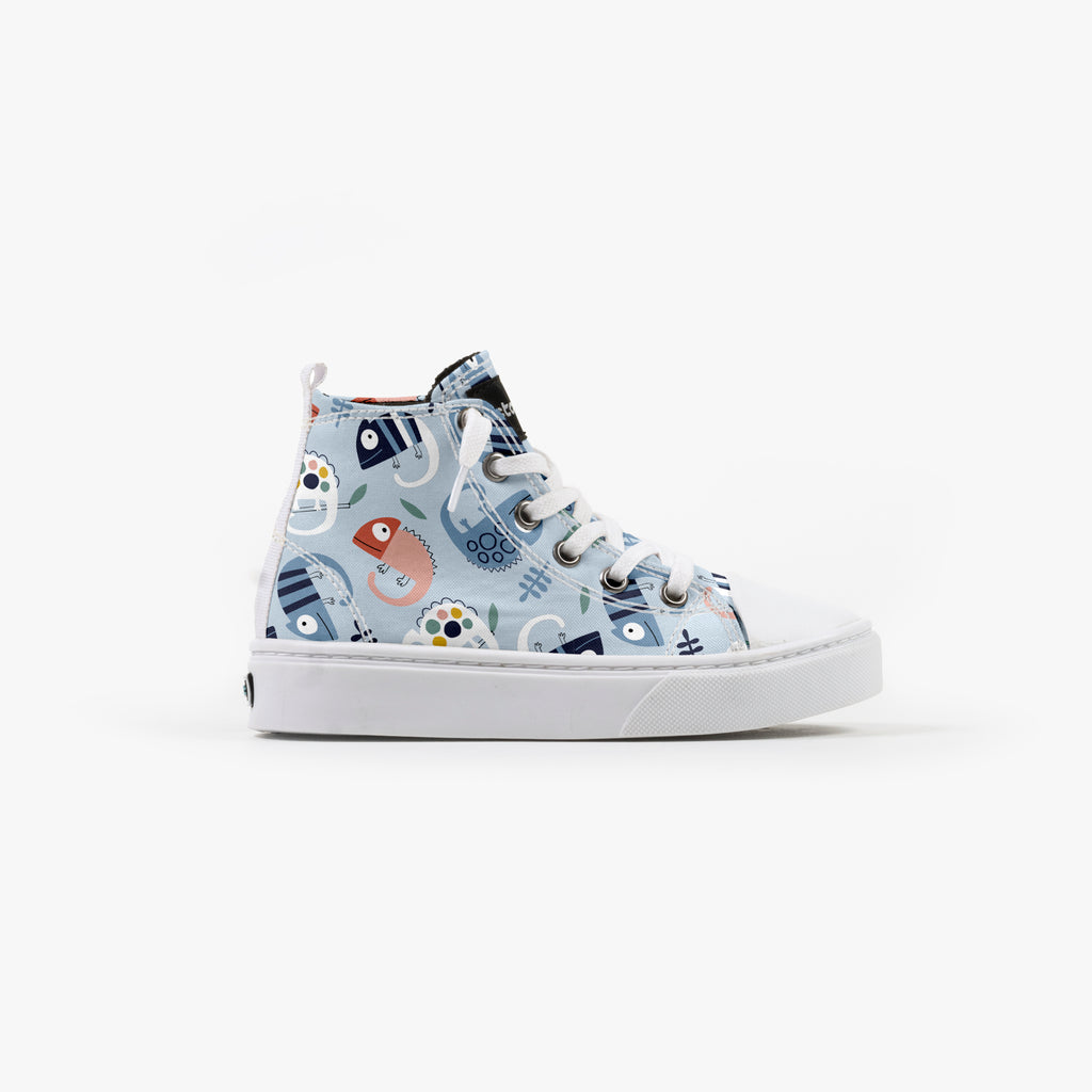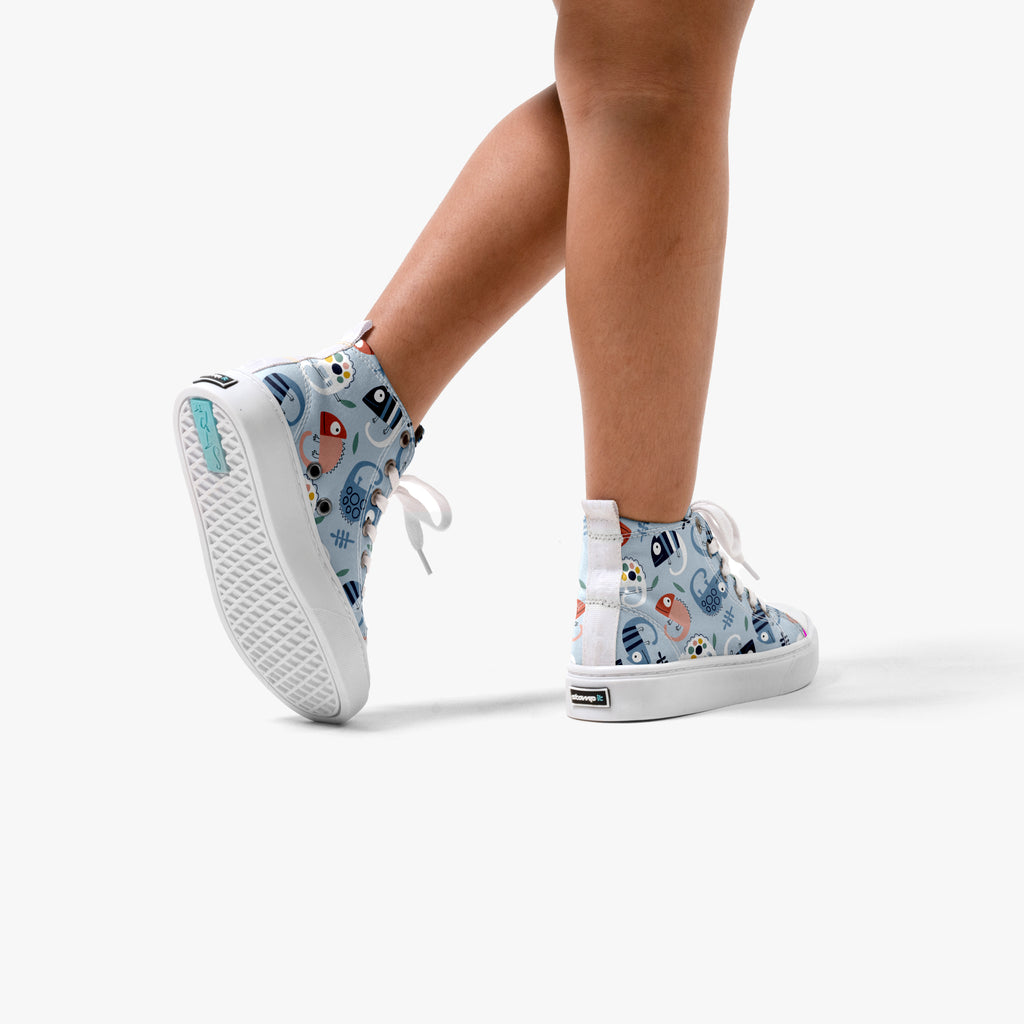Tênis Cano Alto Infantil Chameleon, confeccionado em lona, com cores e estampas exclusivas.