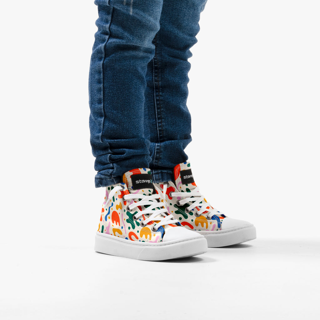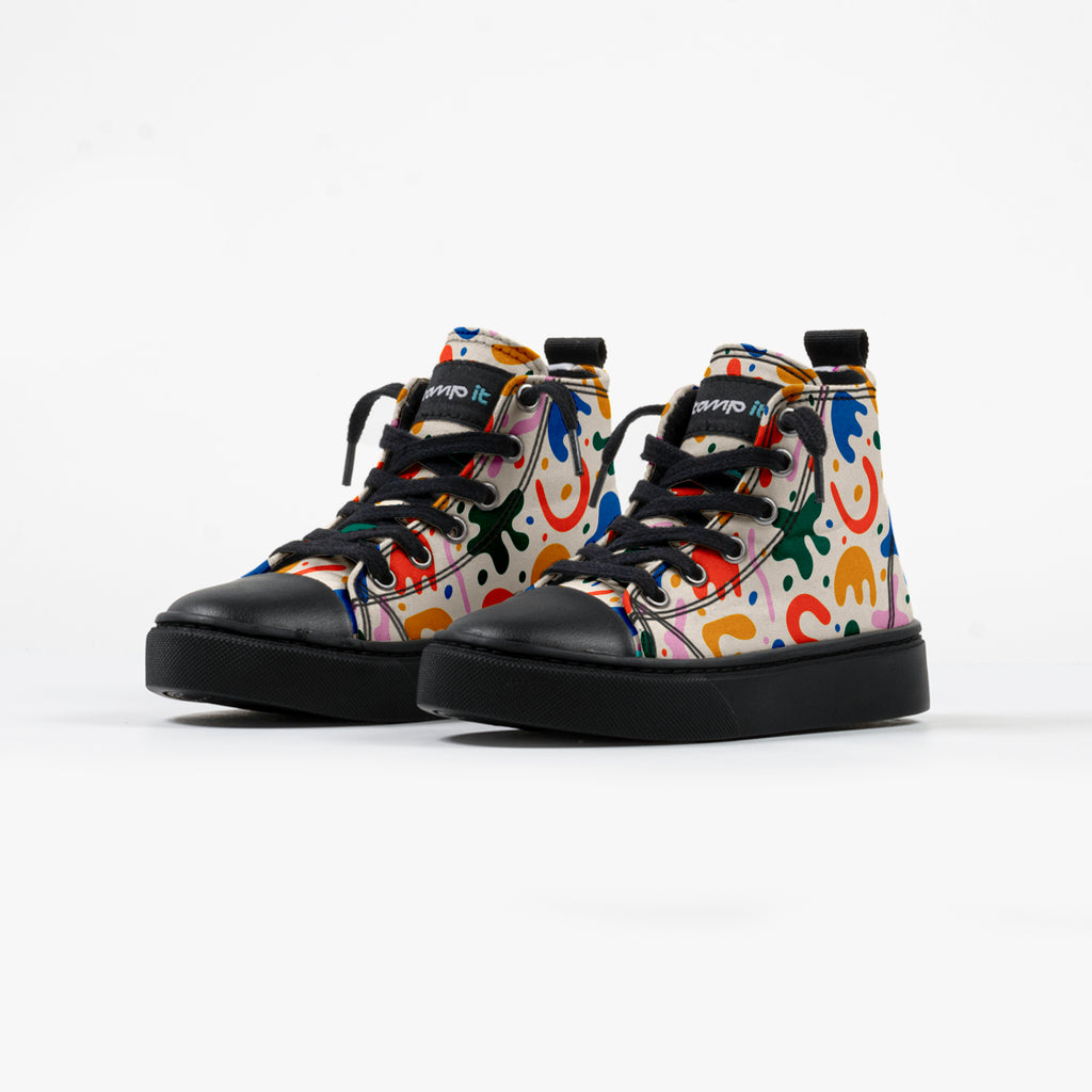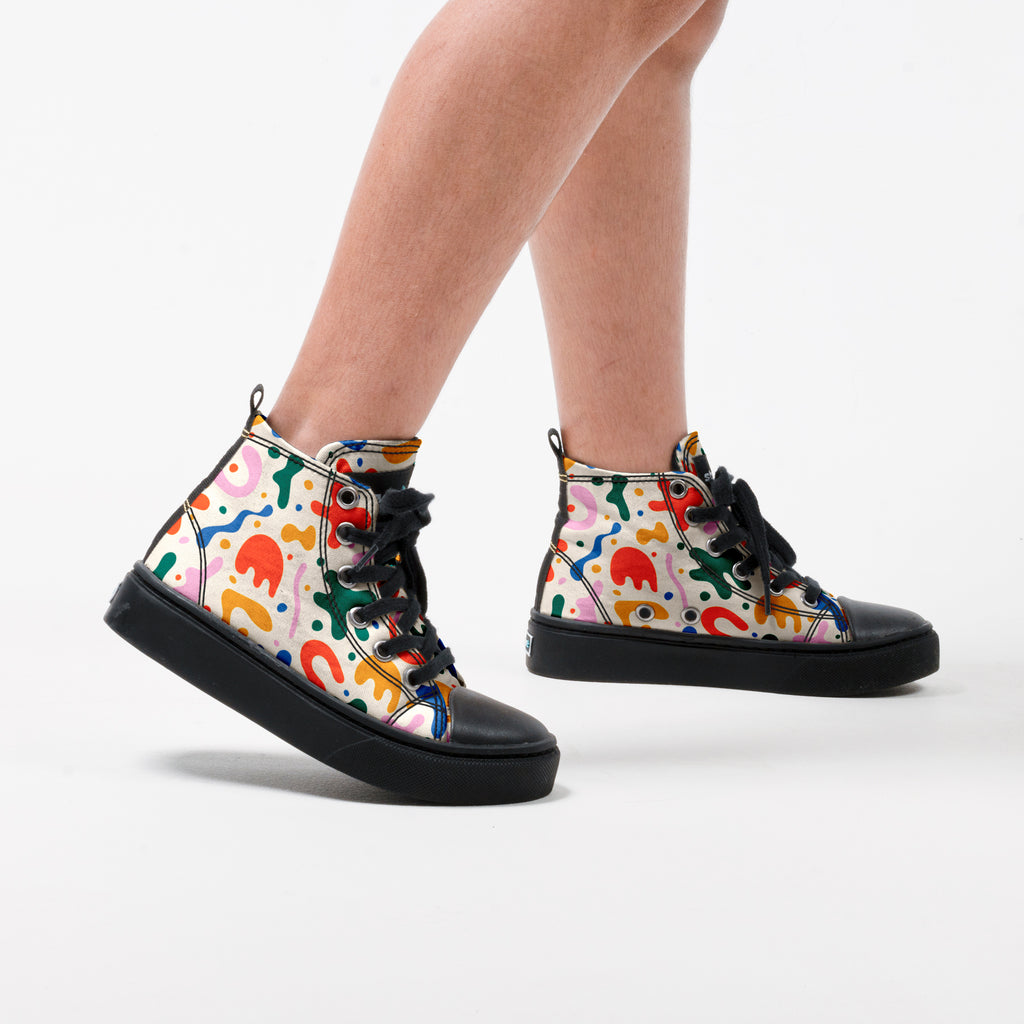 Tênis Cano Alto Infantil Color For Tennis, confeccionado em lona, com cores e estampas exclusivas.