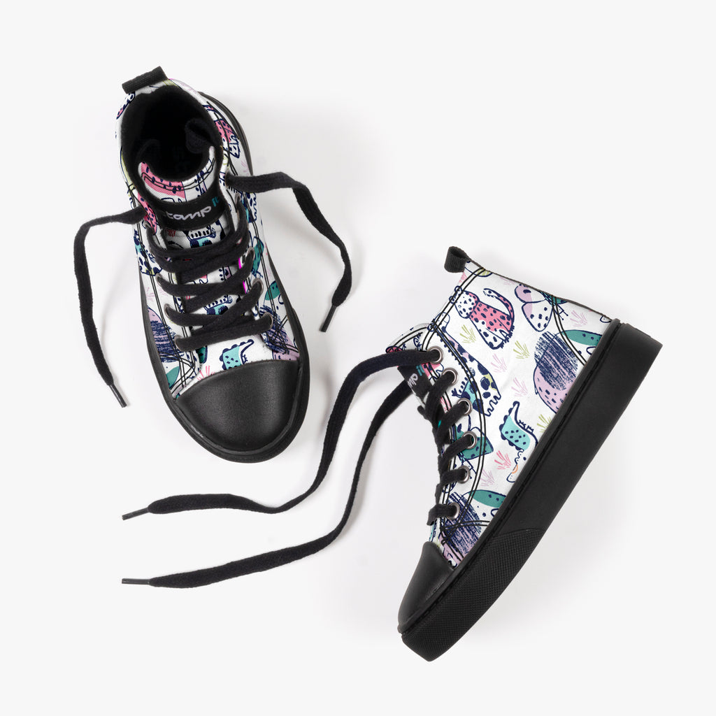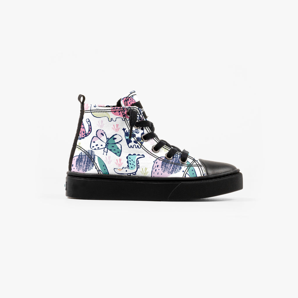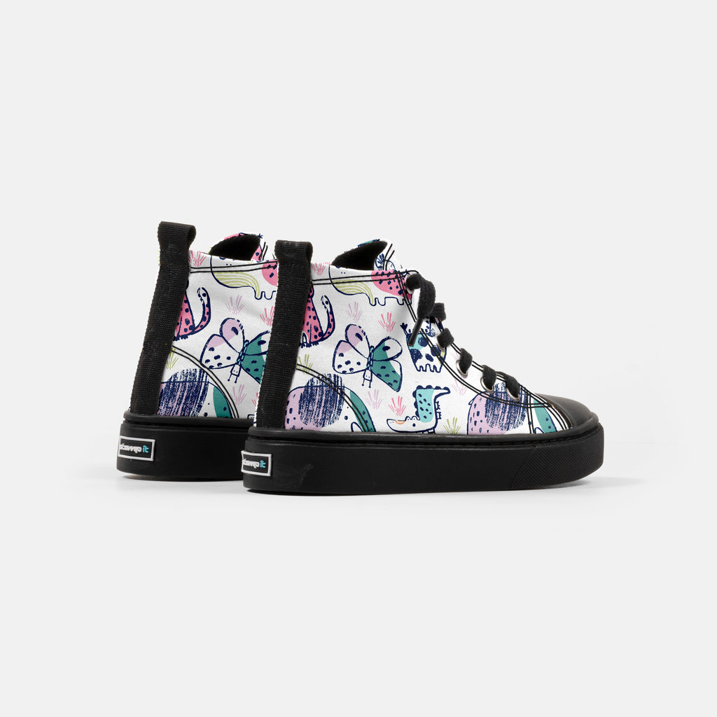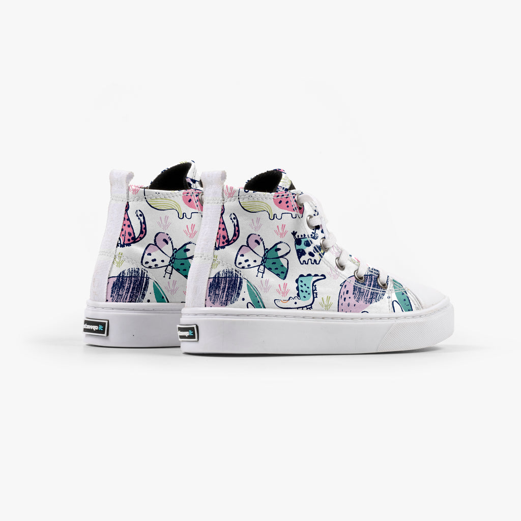 Tênis Cano Alto Infantil Jardim, confeccionado em lona, com cores e estampas exclusivas.
