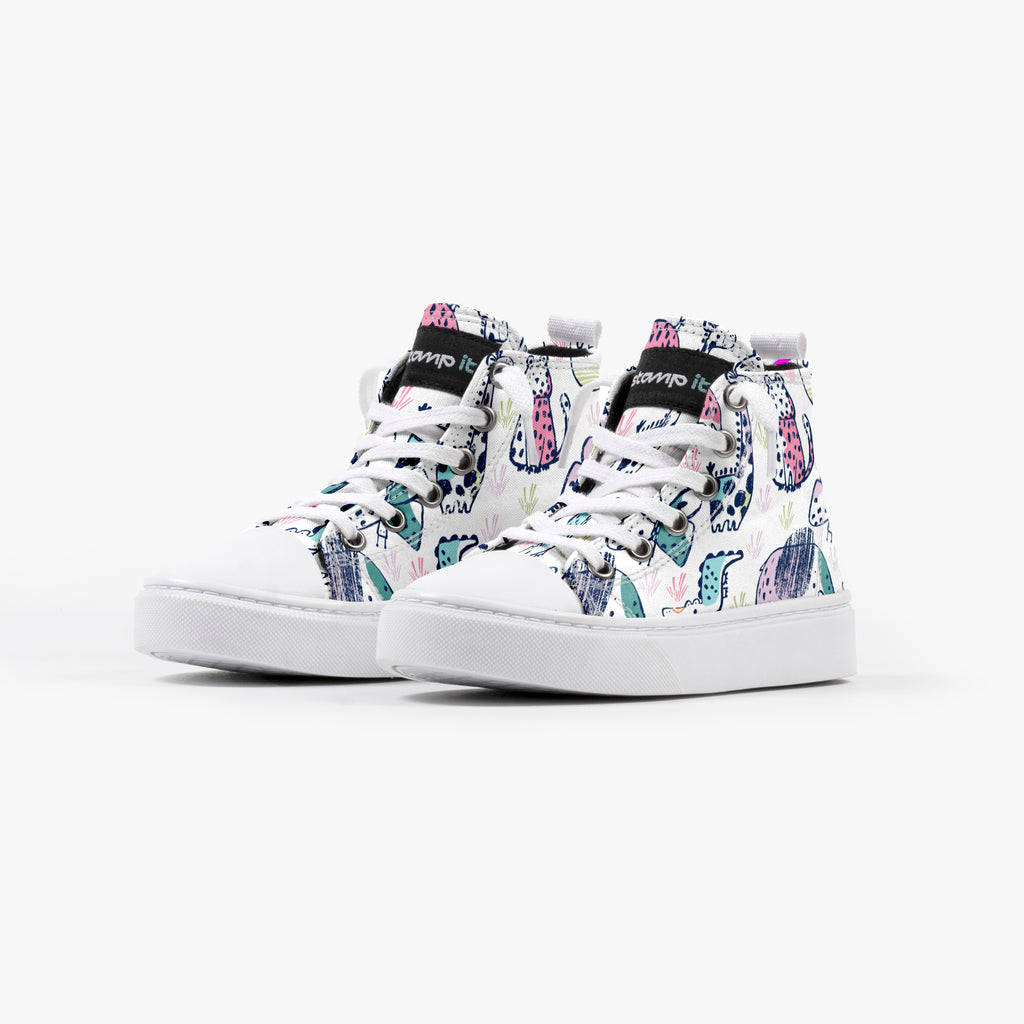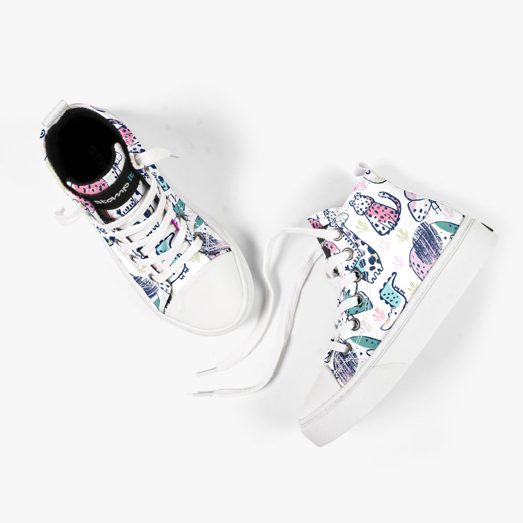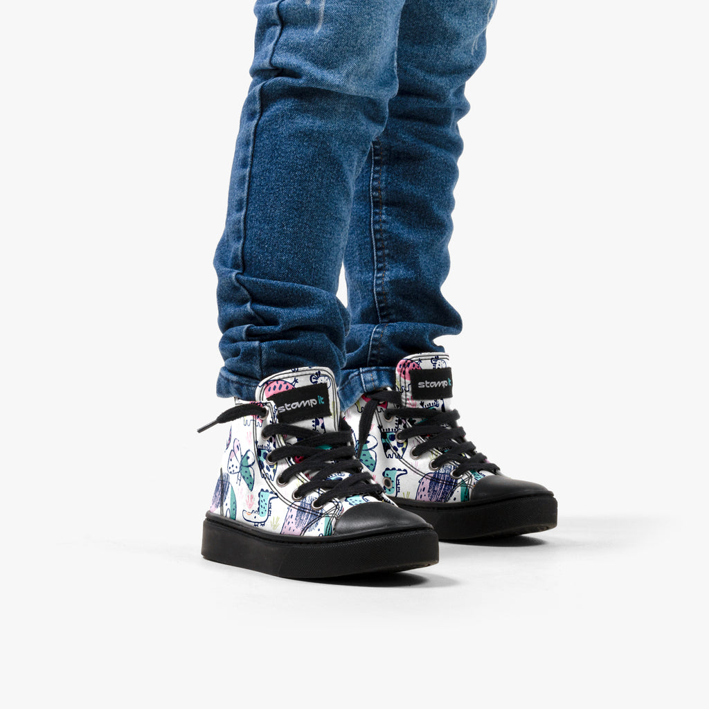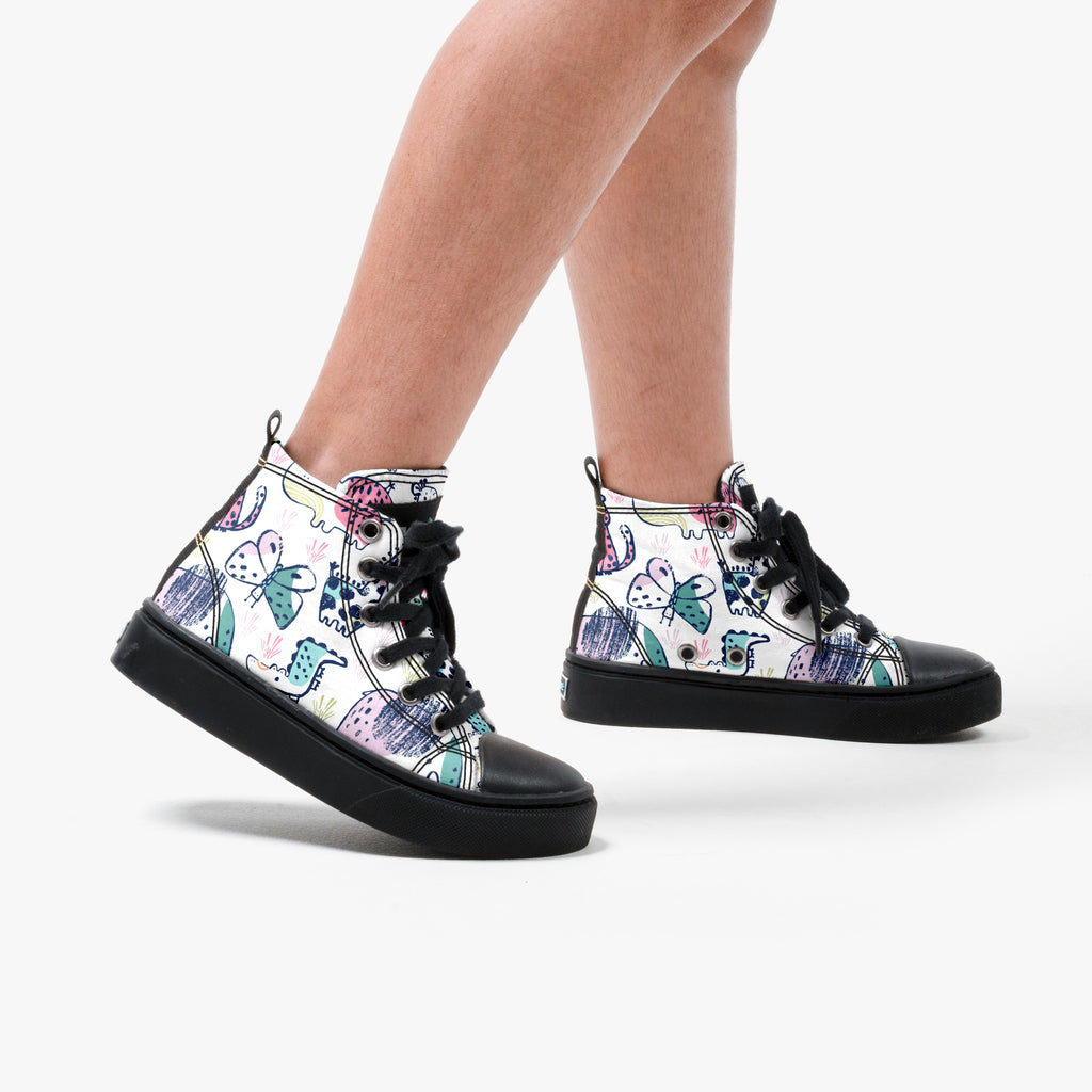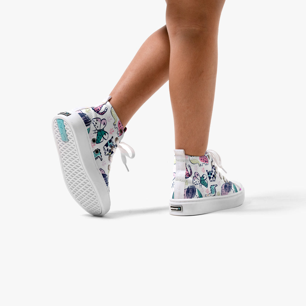 Tênis Cano Alto Infantil Jardim, confeccionado em lona, com cores e estampas exclusivas.