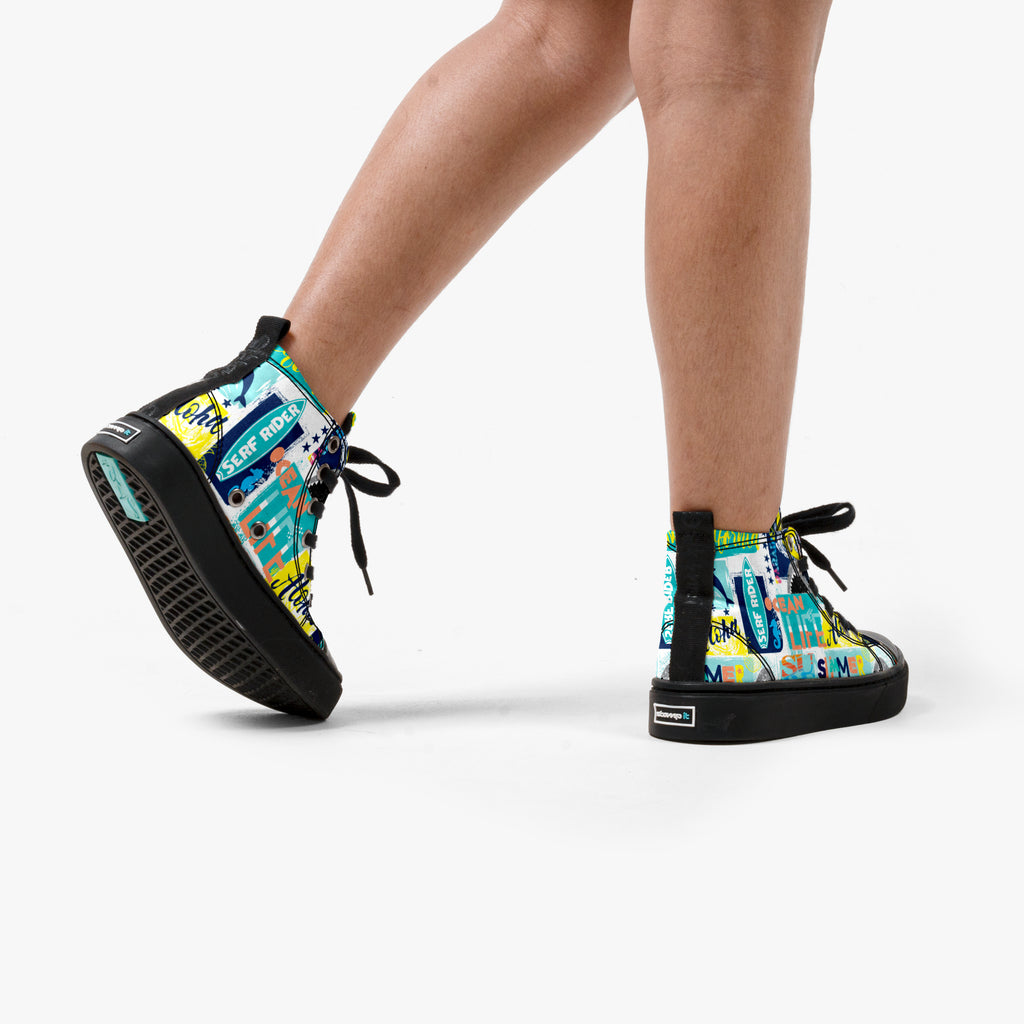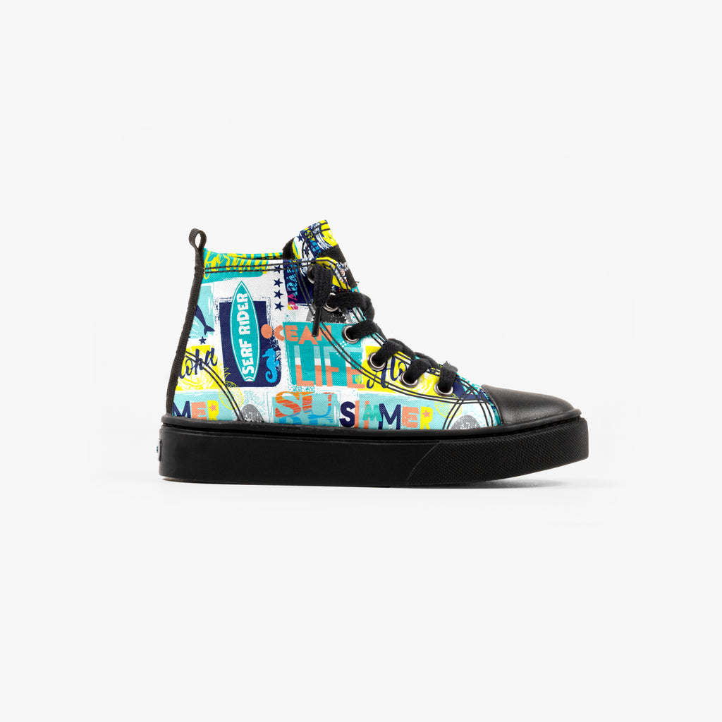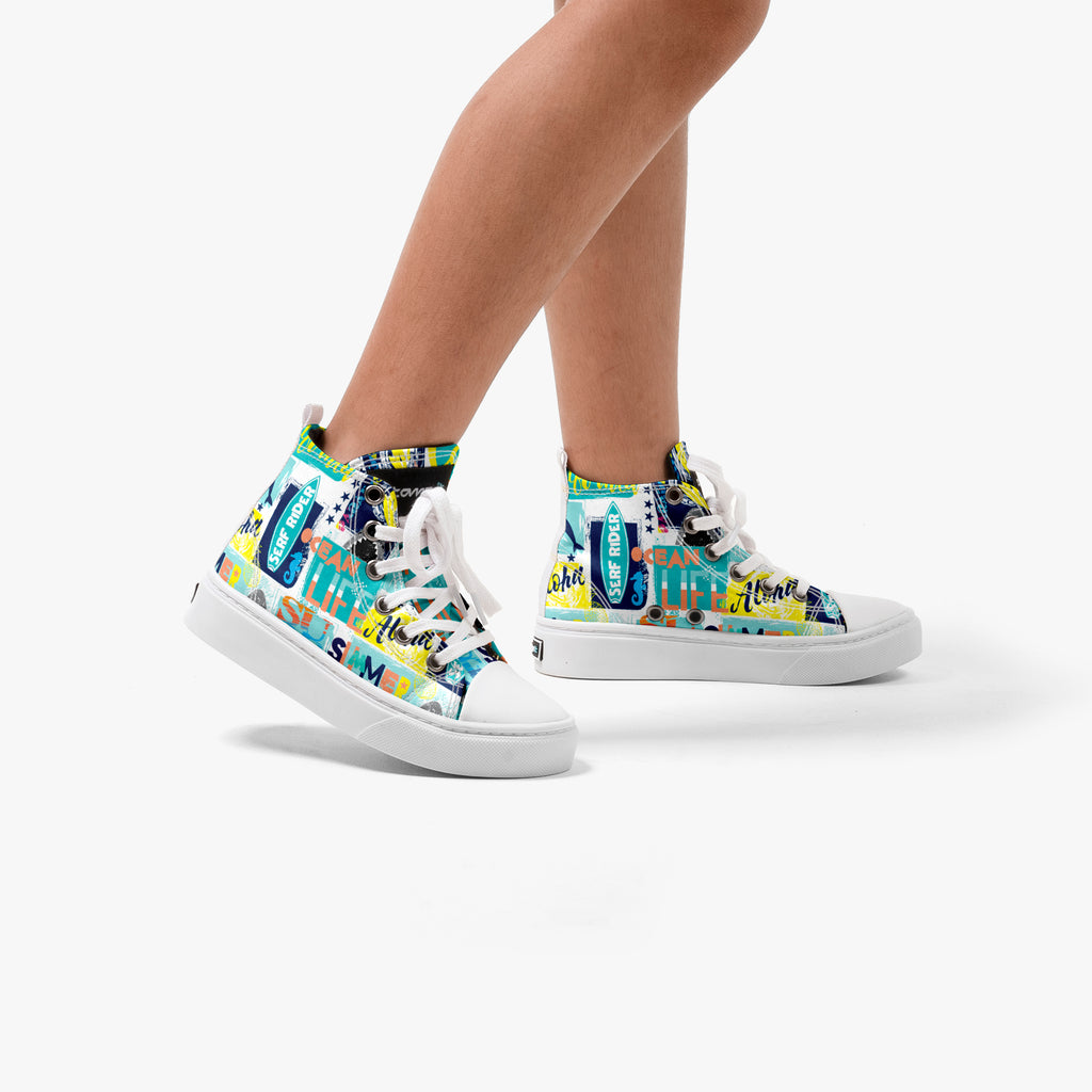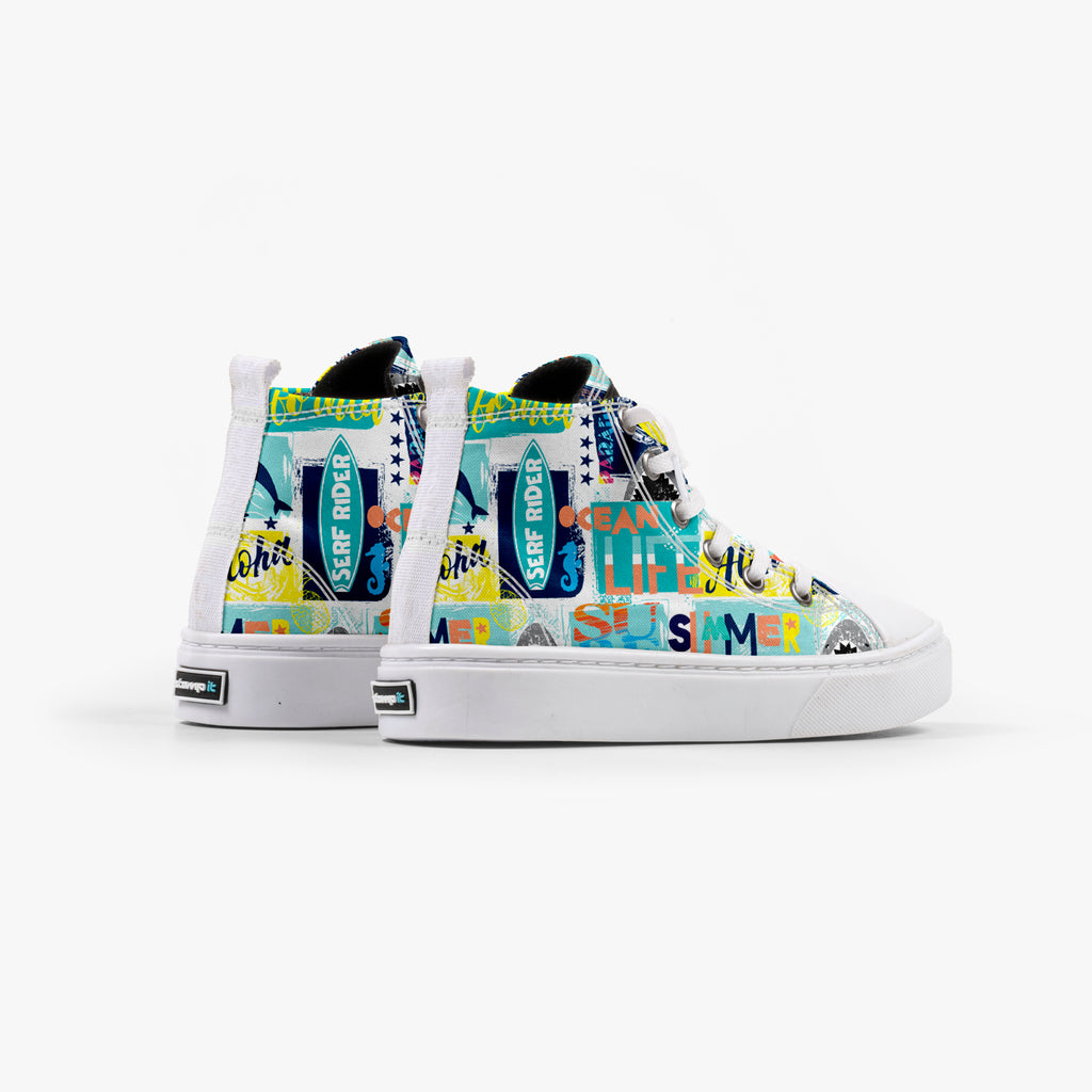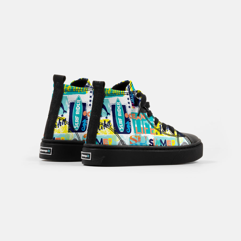 Tênis Cano Alto Infantil Serf Rider, confeccionado em lona, com cores e estampas exclusivas.