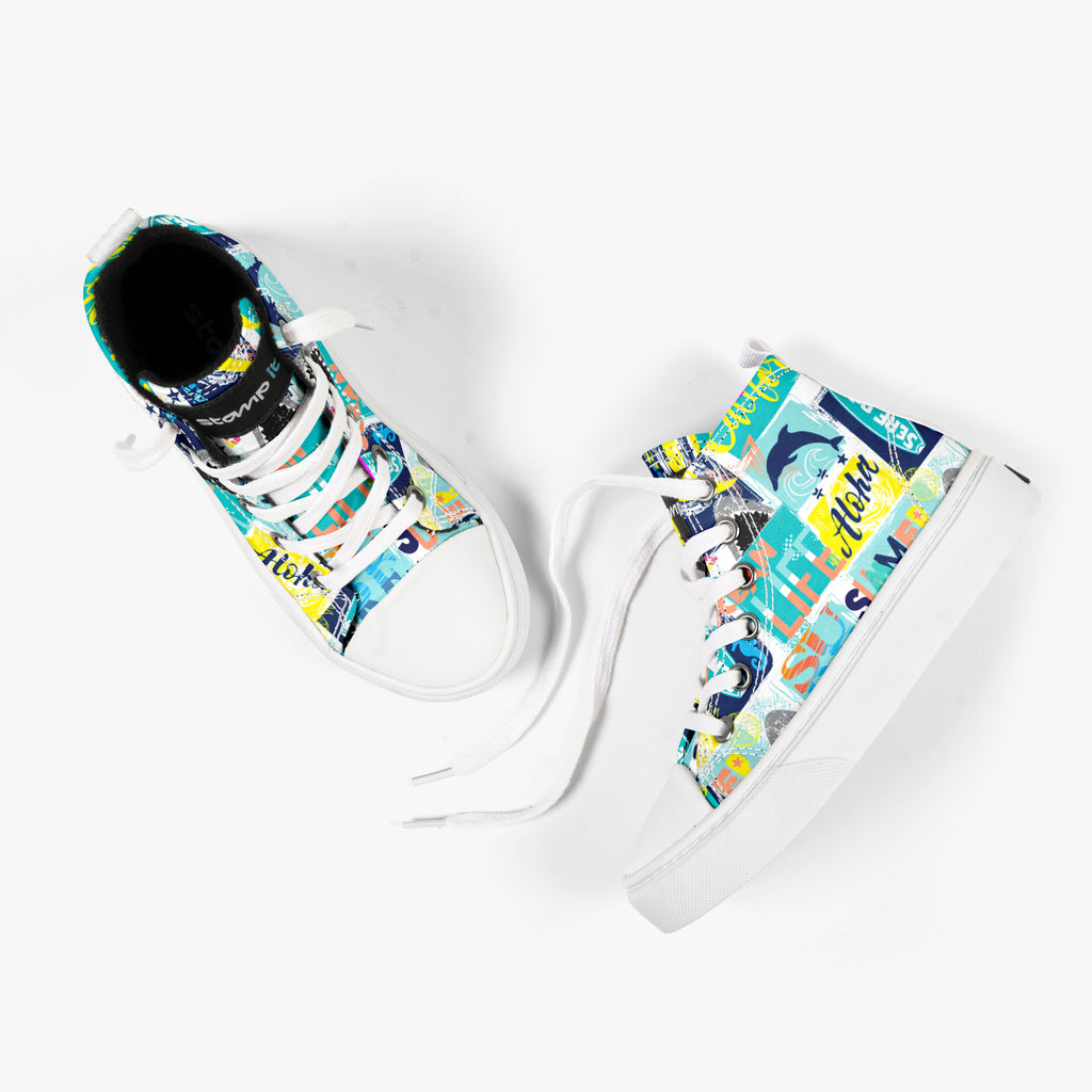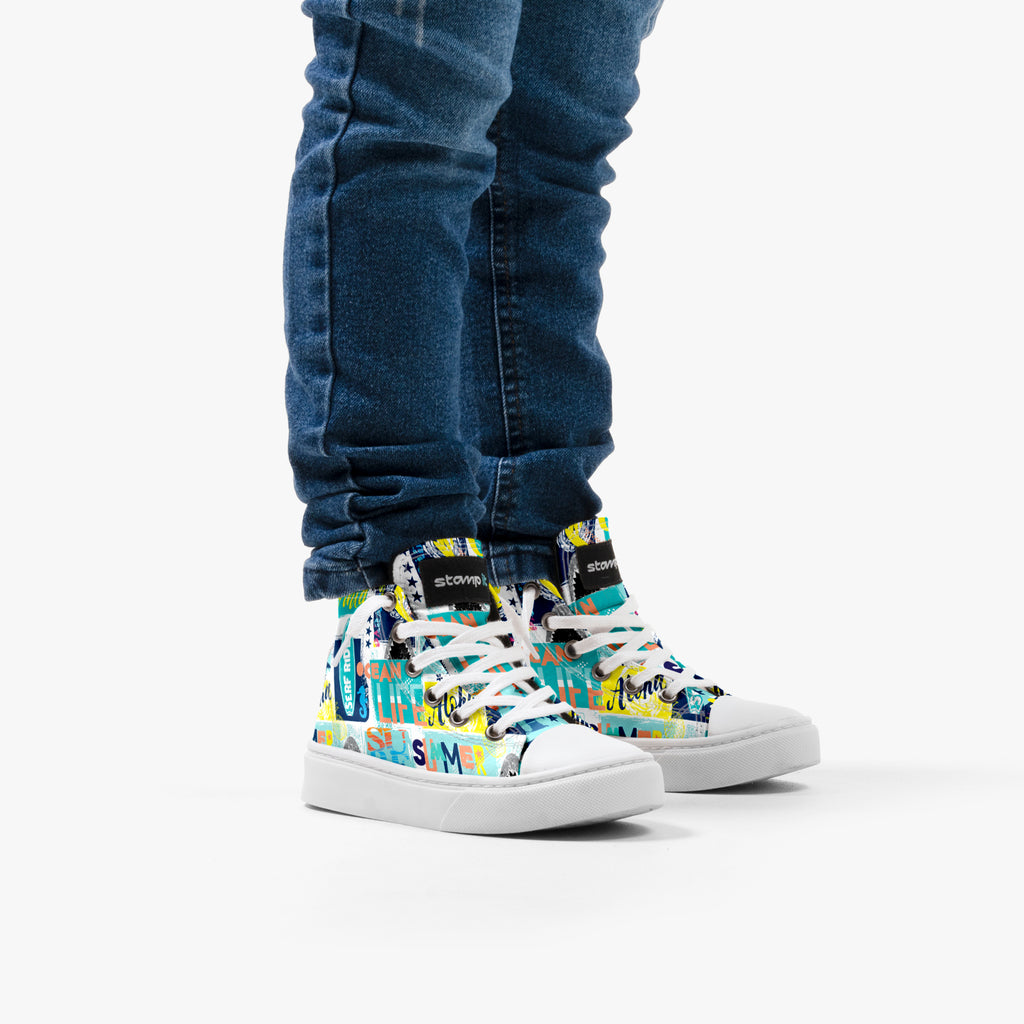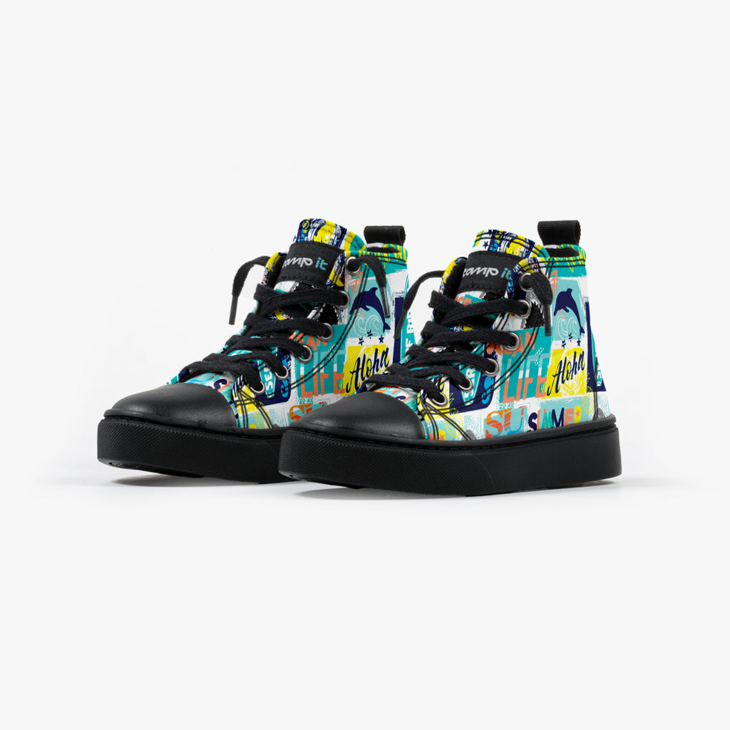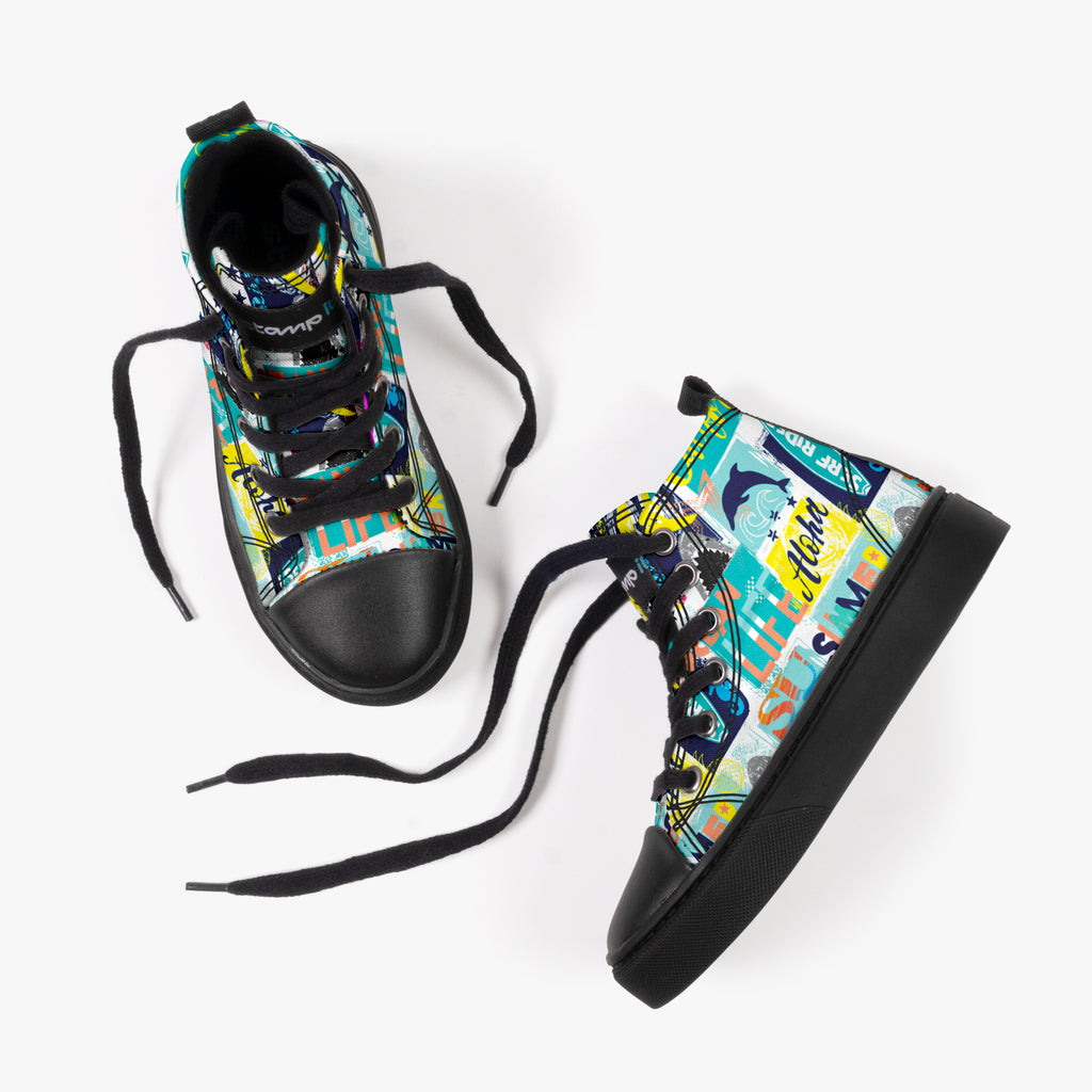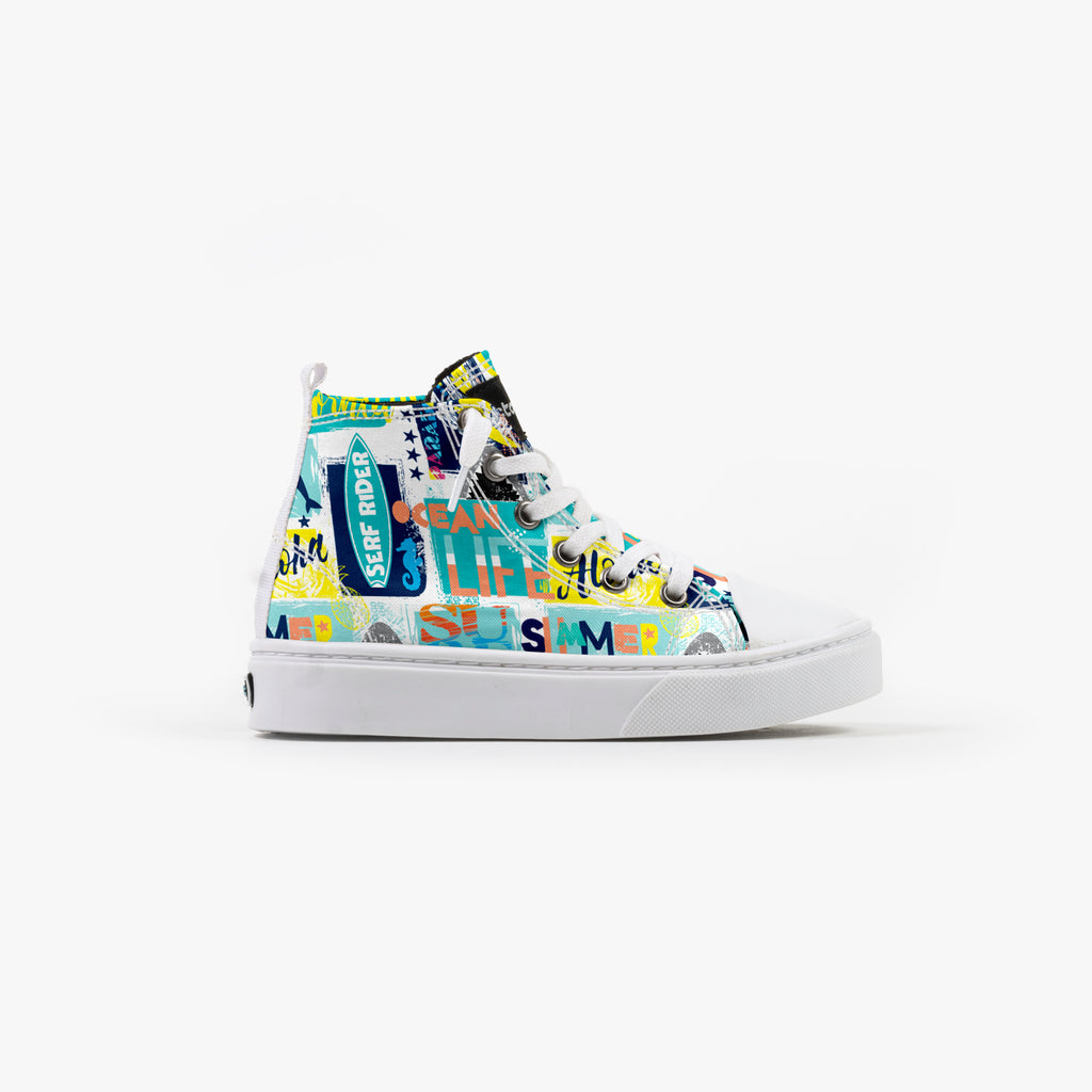 Tênis Cano Alto Infantil Serf Rider, confeccionado em lona, com cores e estampas exclusivas.
