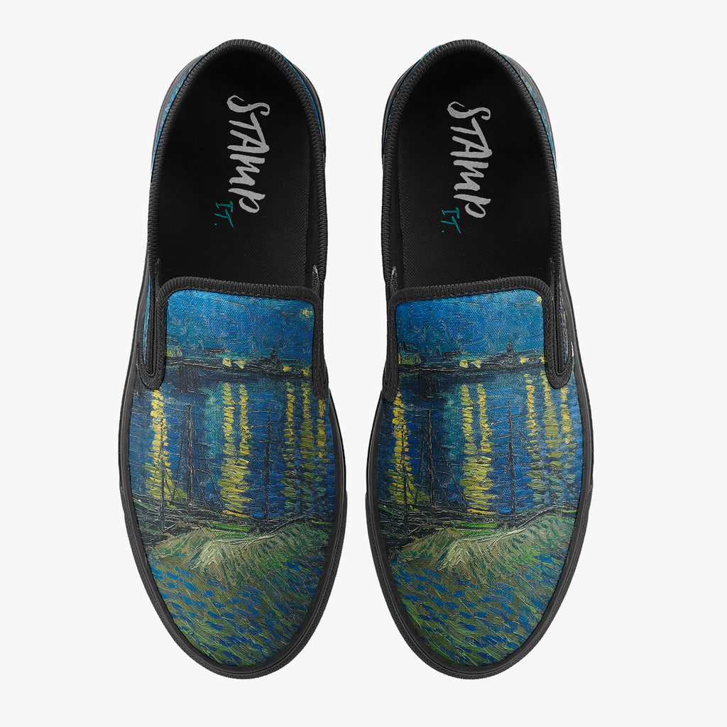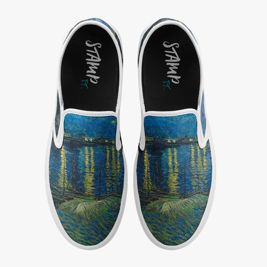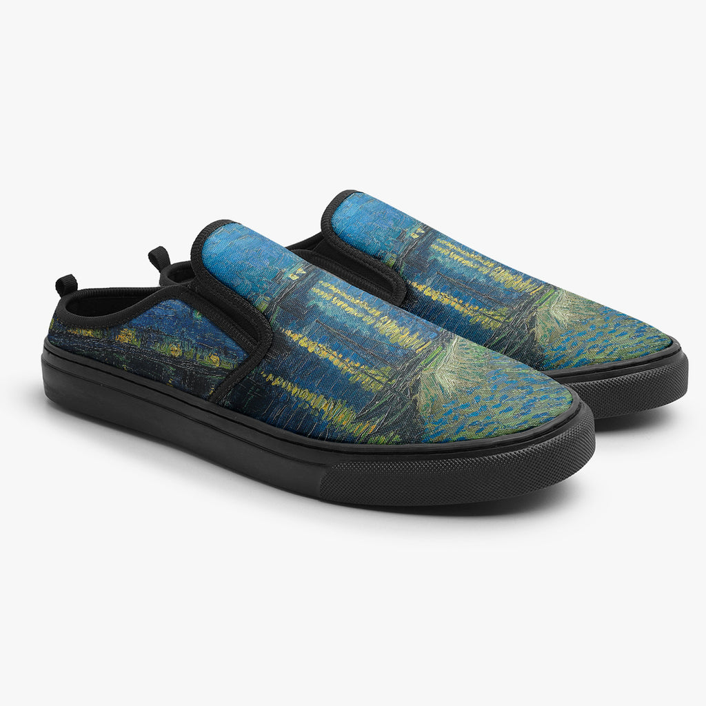 Tênis Mule Azul Van Gogh Noite Estrelada Sobre o Ródano Cultura e Arte