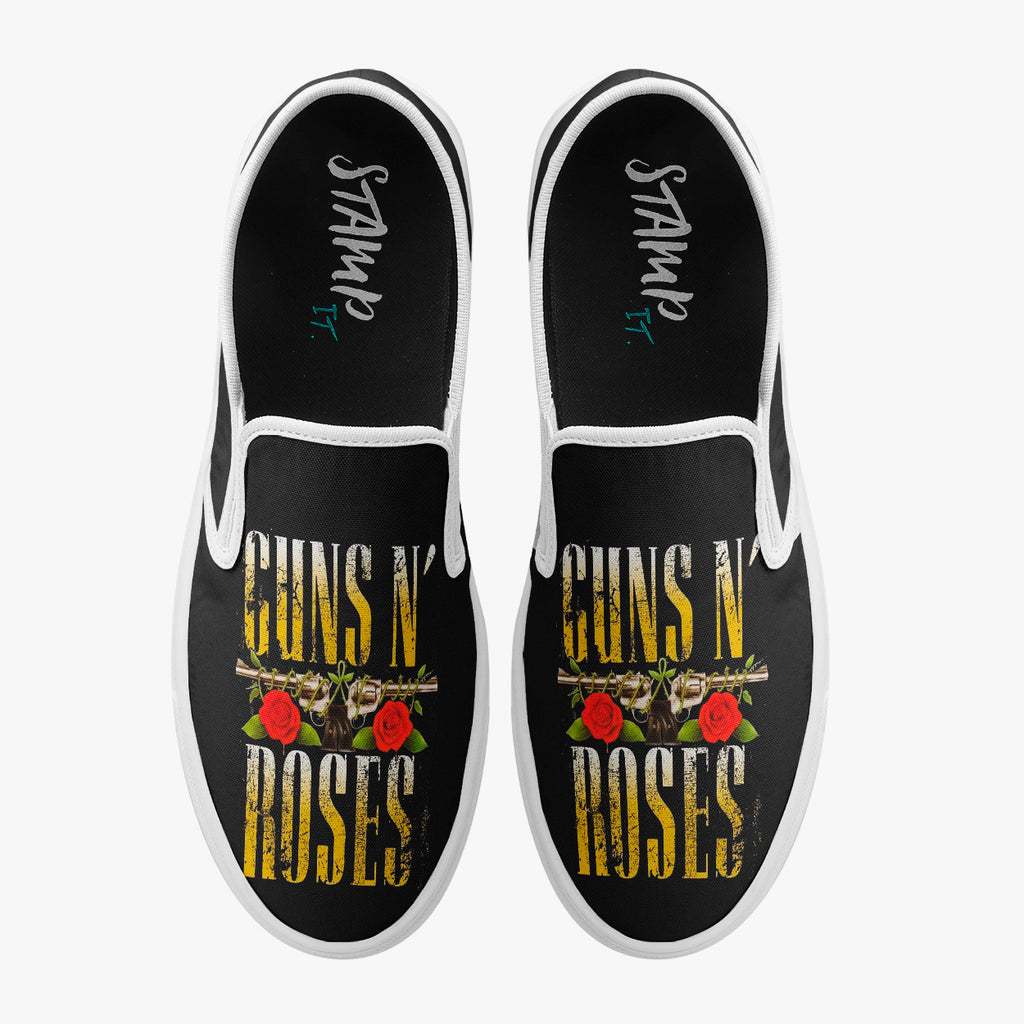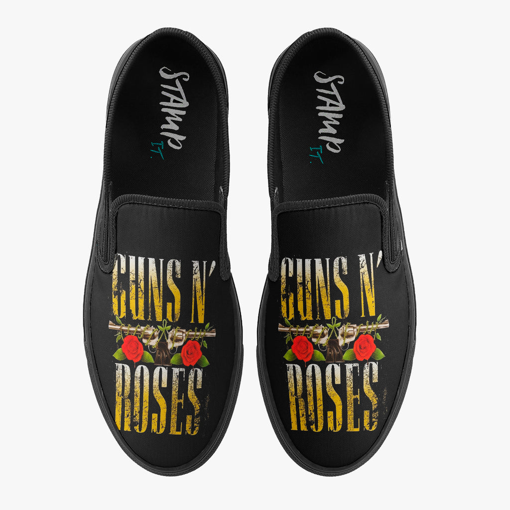 Tênis Mule Preto Guns N' Roses Rosa Laço Arma Bandas de Rock