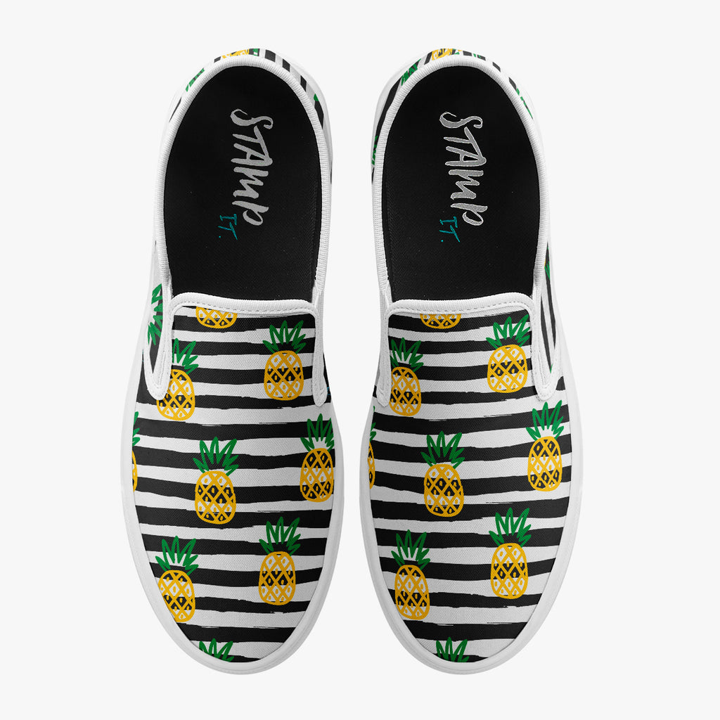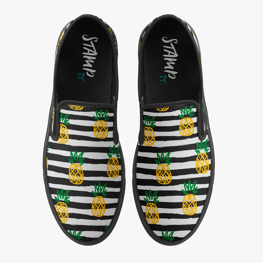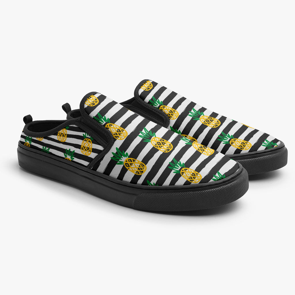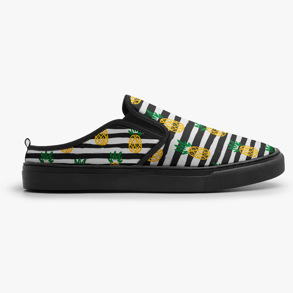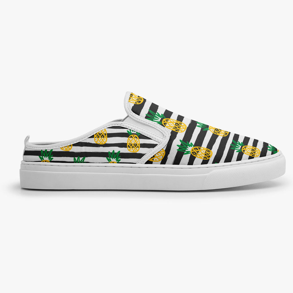 Tênis Sapatênis Mule Listras Pretas e Brancas Abacaxi