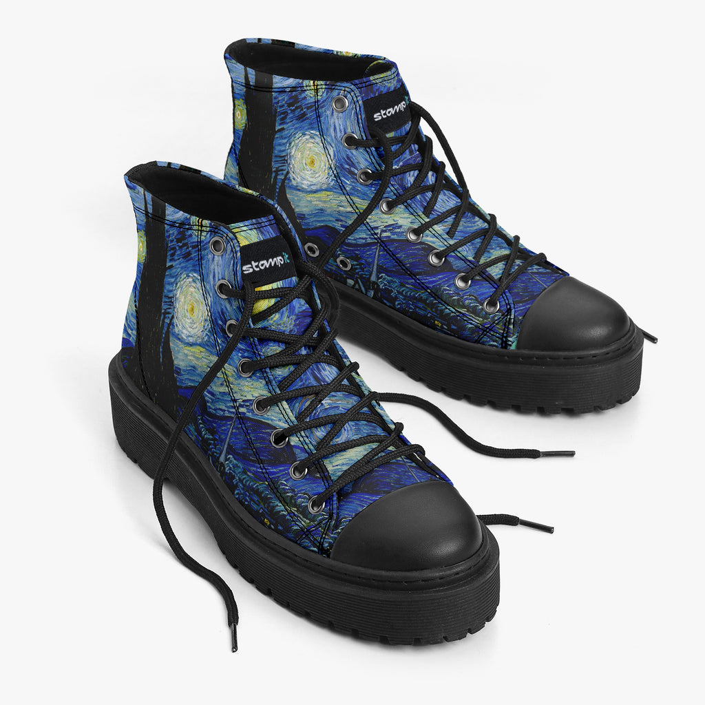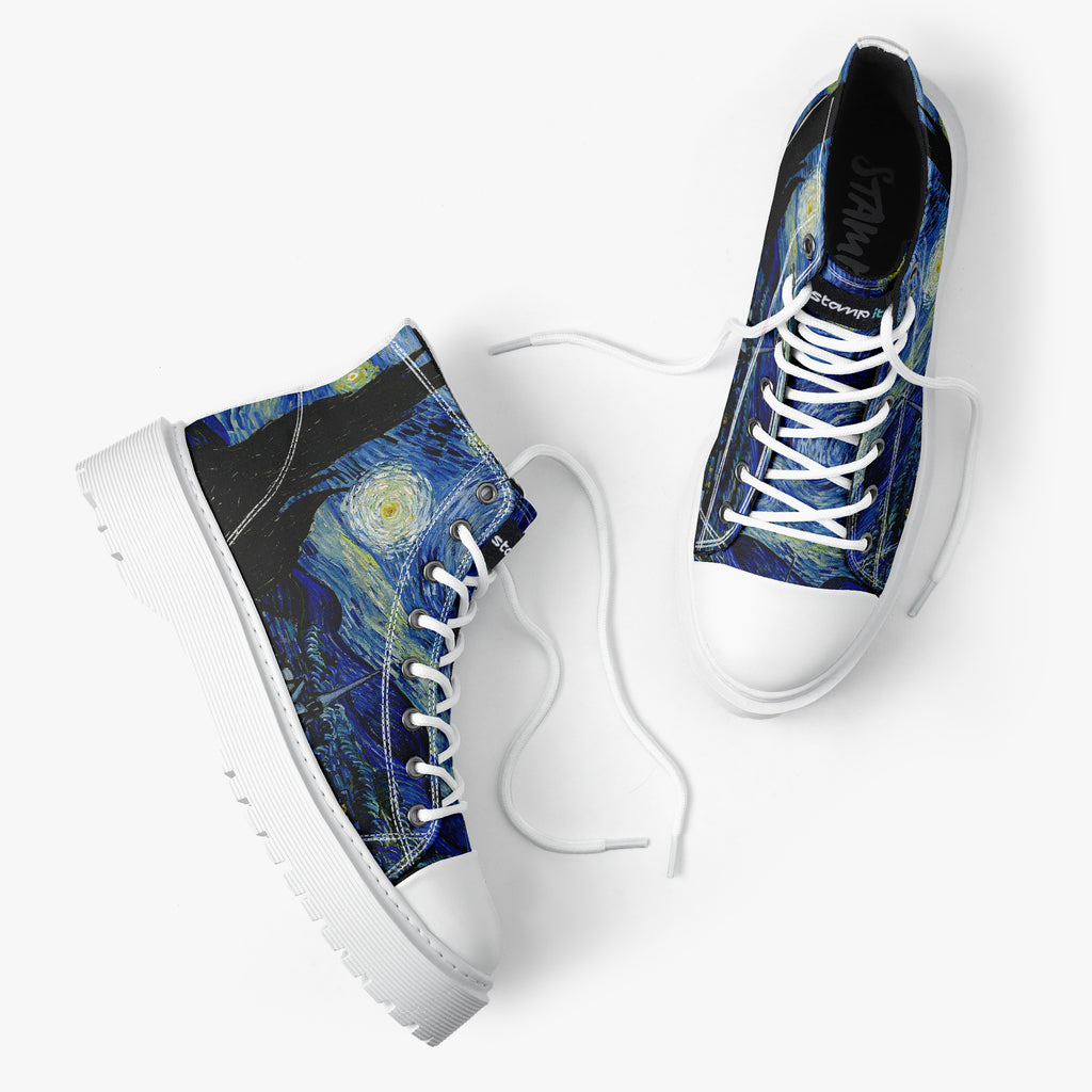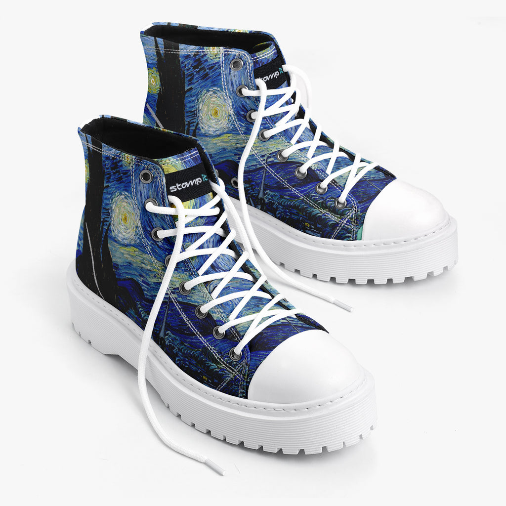 Tênis Cano Alto Plataforma Noite Estrelada Arte Van Gogh