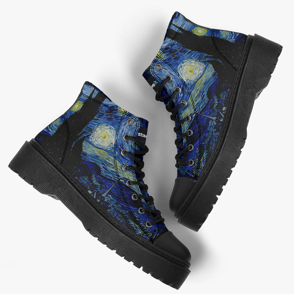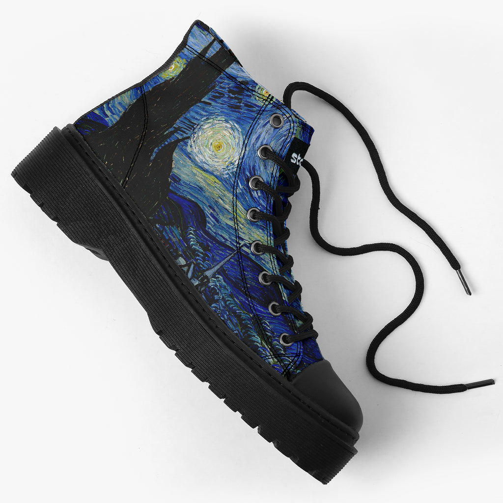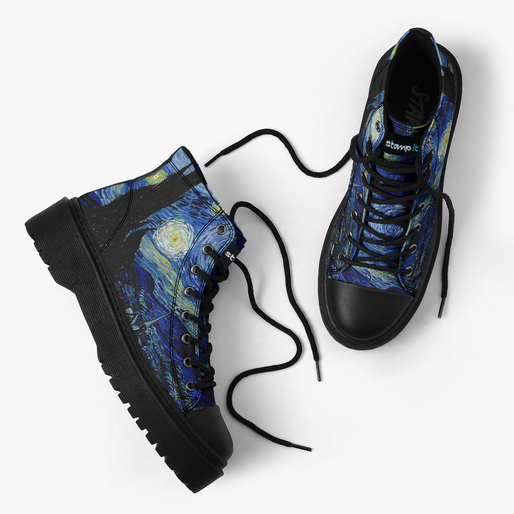 Tênis Cano Alto Plataforma Noite Estrelada Arte Van Gogh