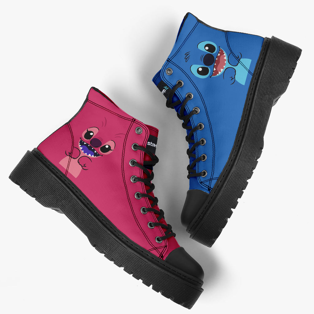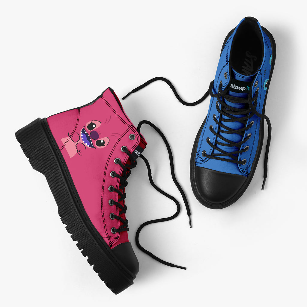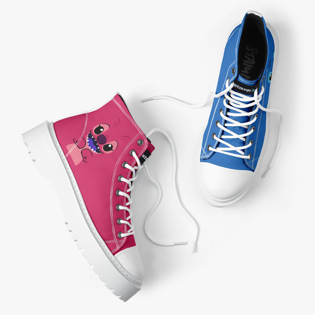 Tênis Cano Alto Plataforma Rosa e Azul Lilo e Stitch Duas Cores Séries E Filmes