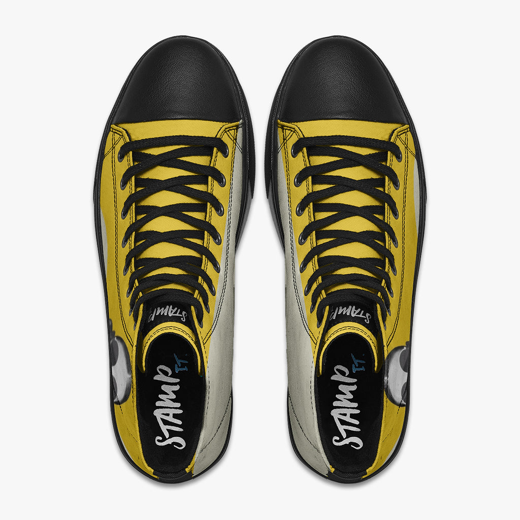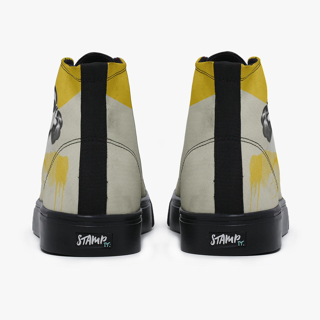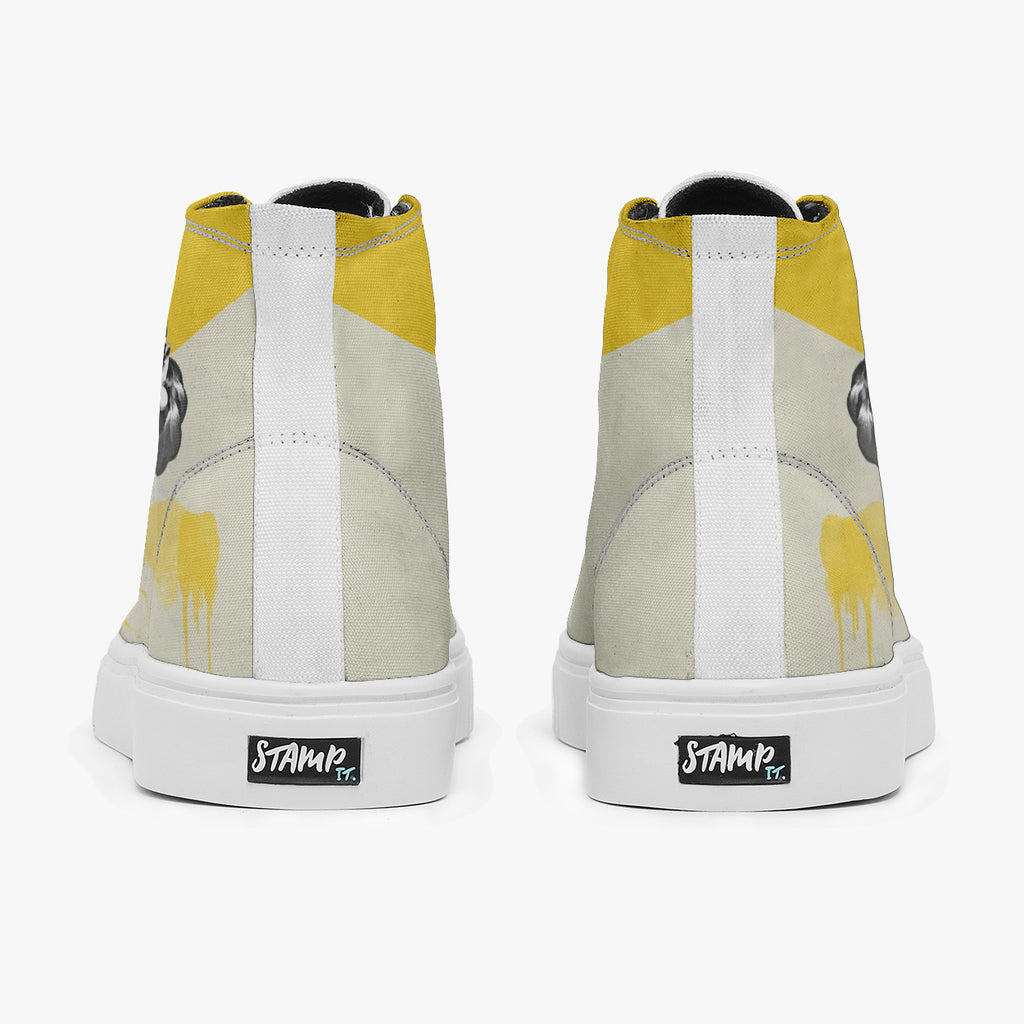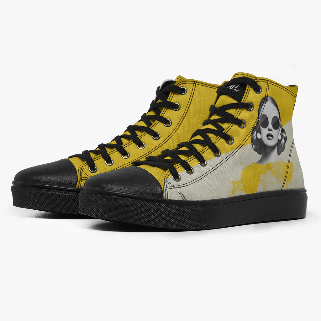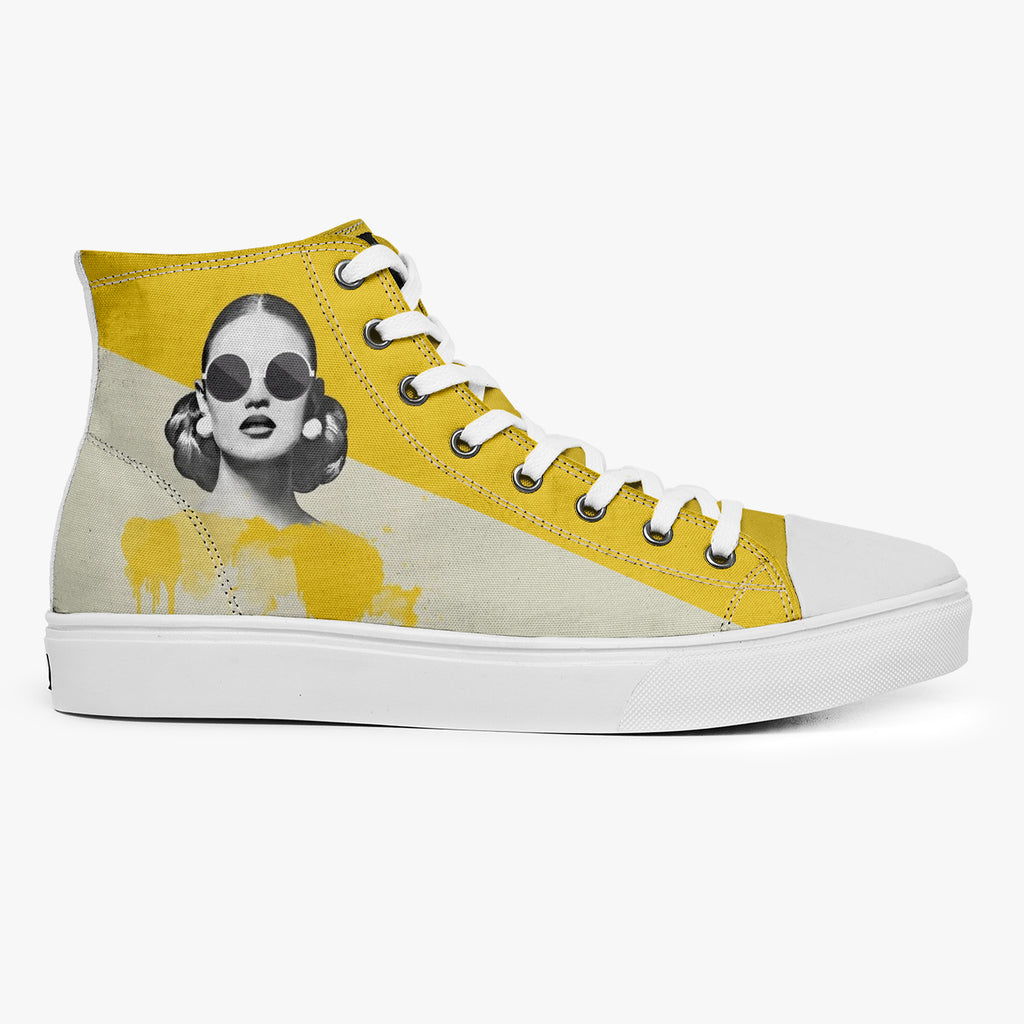 Tênis Cano Alto Colorido Fancy Girl Anos 80 Feminismo Pride, confeccionado em lona, com cores e estampas exclusivas.