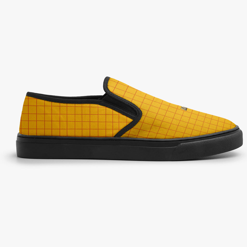 Calçado Slip On Amarelo Mood Quadriculado Tumblr Abstrato, confeccionado em lona, com cores e estampas exclusivas.