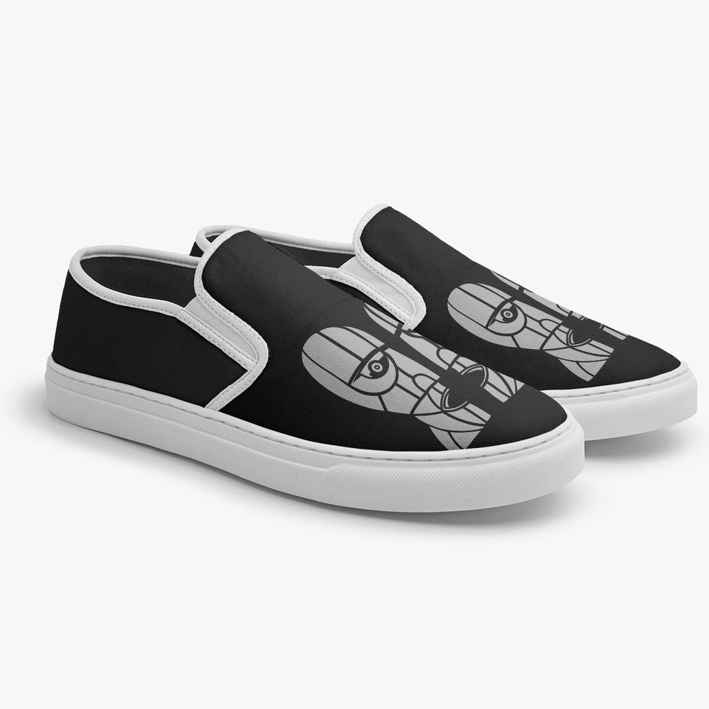 Tênis Slip On Preto Pink Floyd The Division Bell Bandas de Rock, confeccionado em lona, com cores e estampas exclusivas.