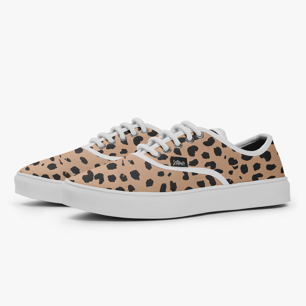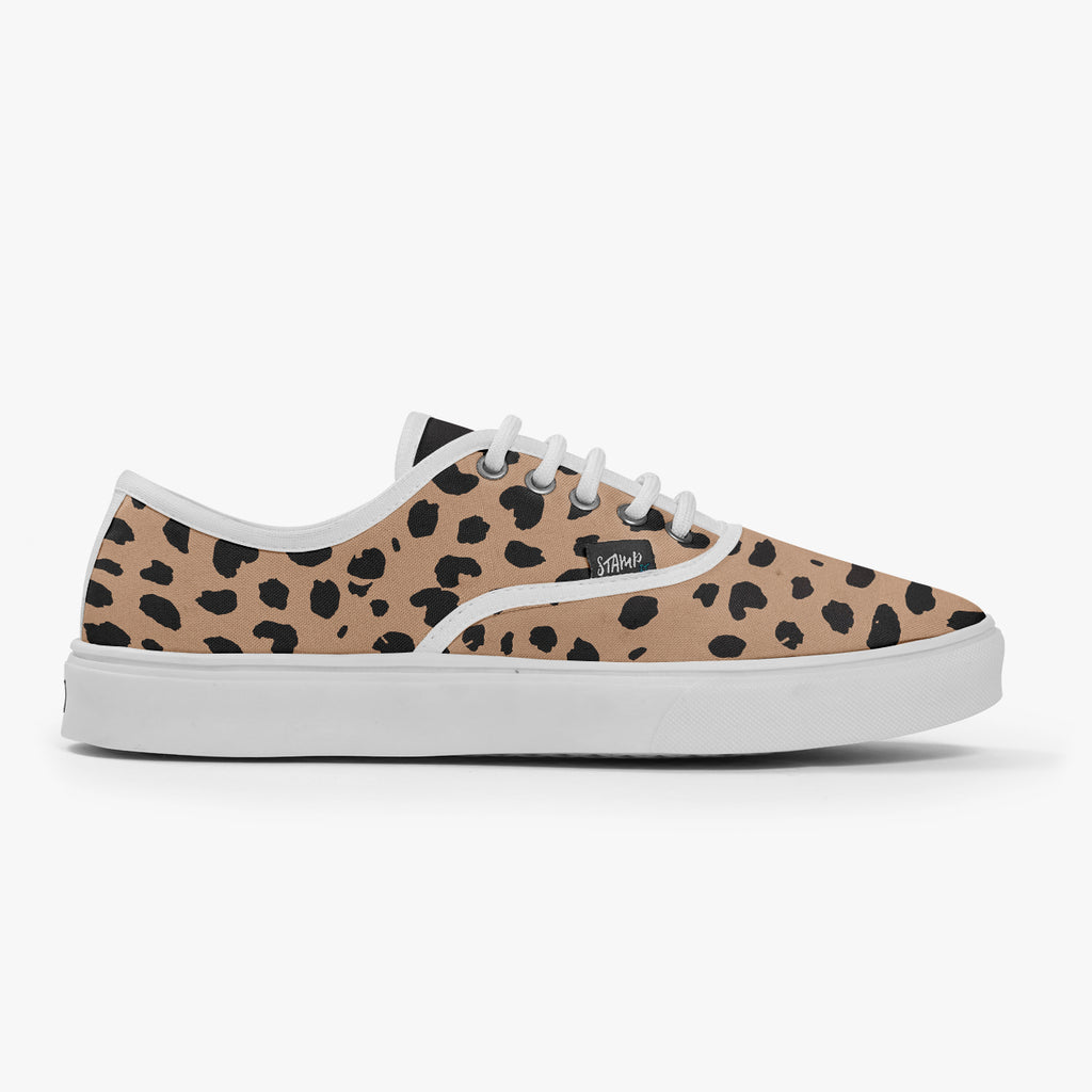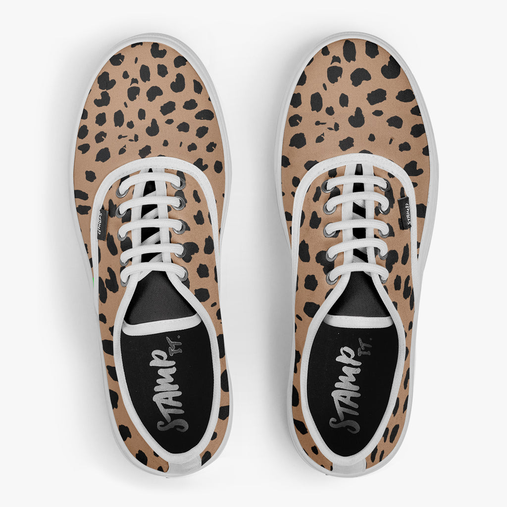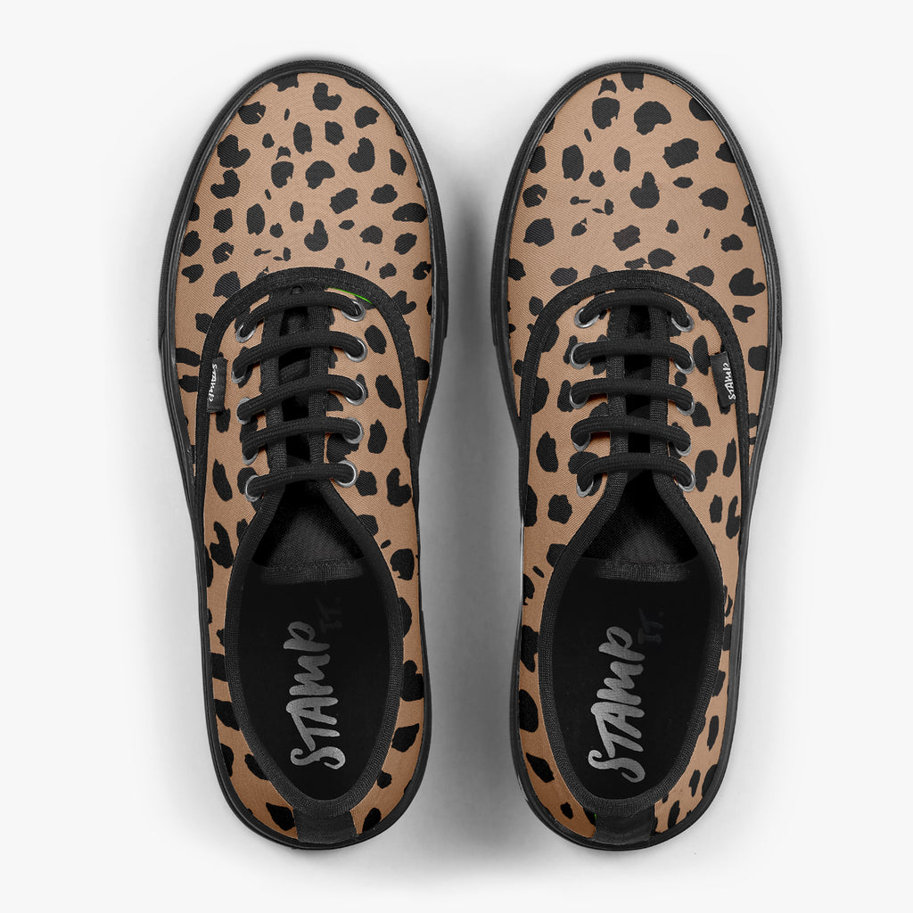 Tênis Casual Unissex Jaguar Preto Com Marrom Animais, confeccionado em lona, com cores e estampas exclusivas.