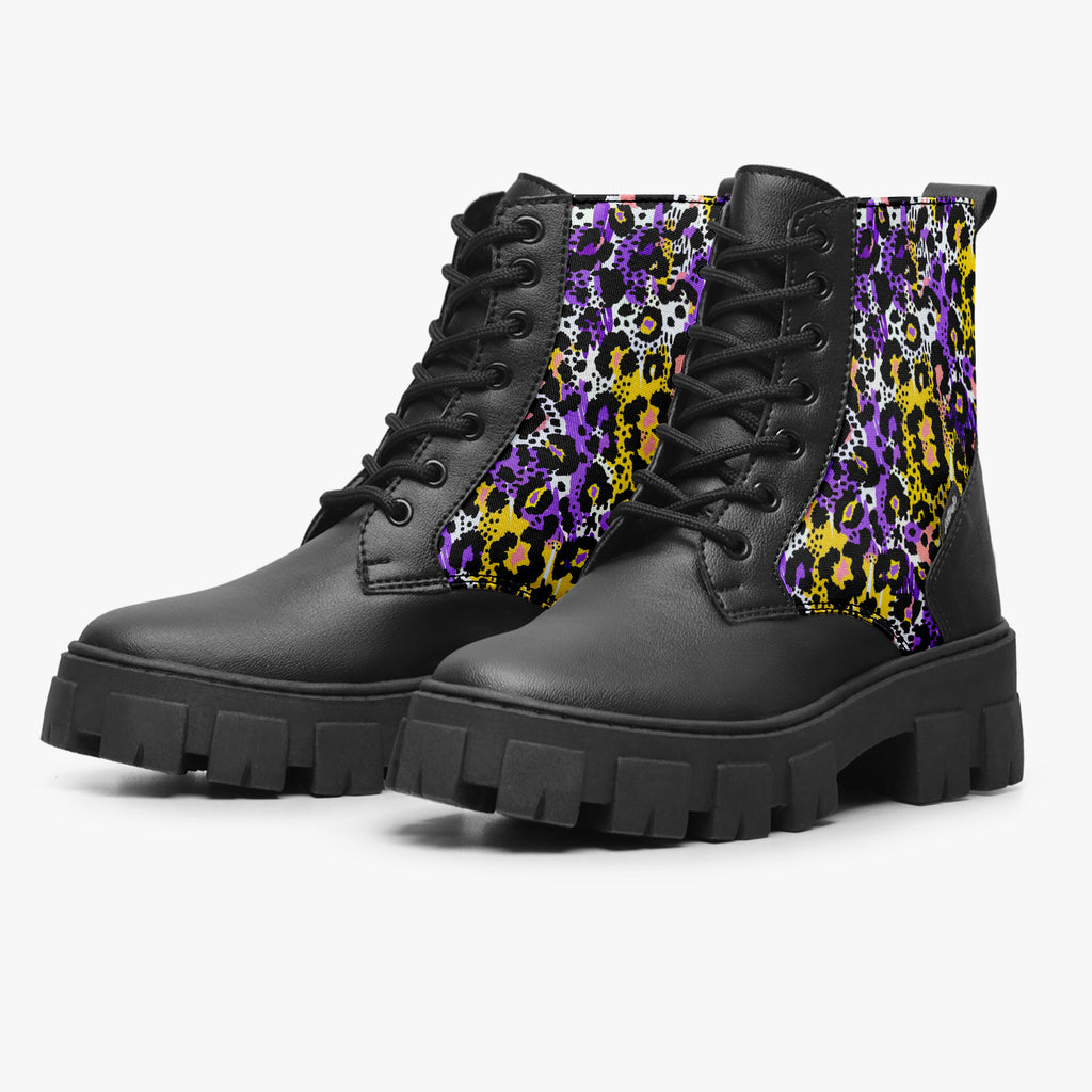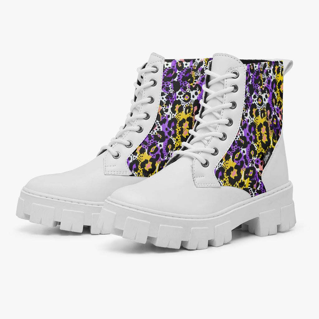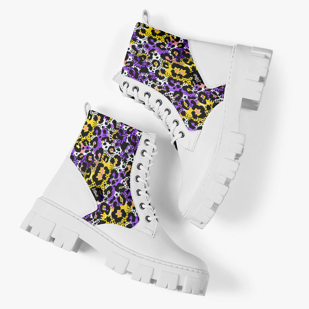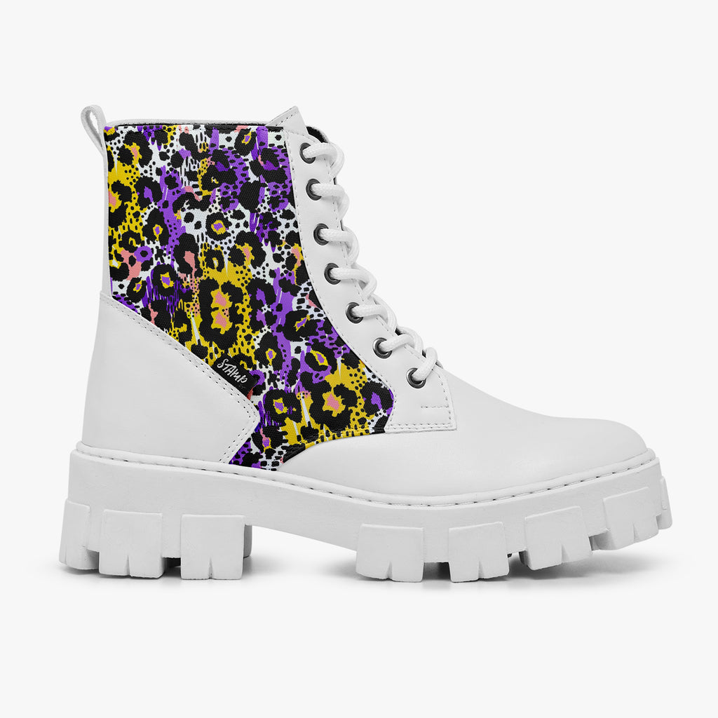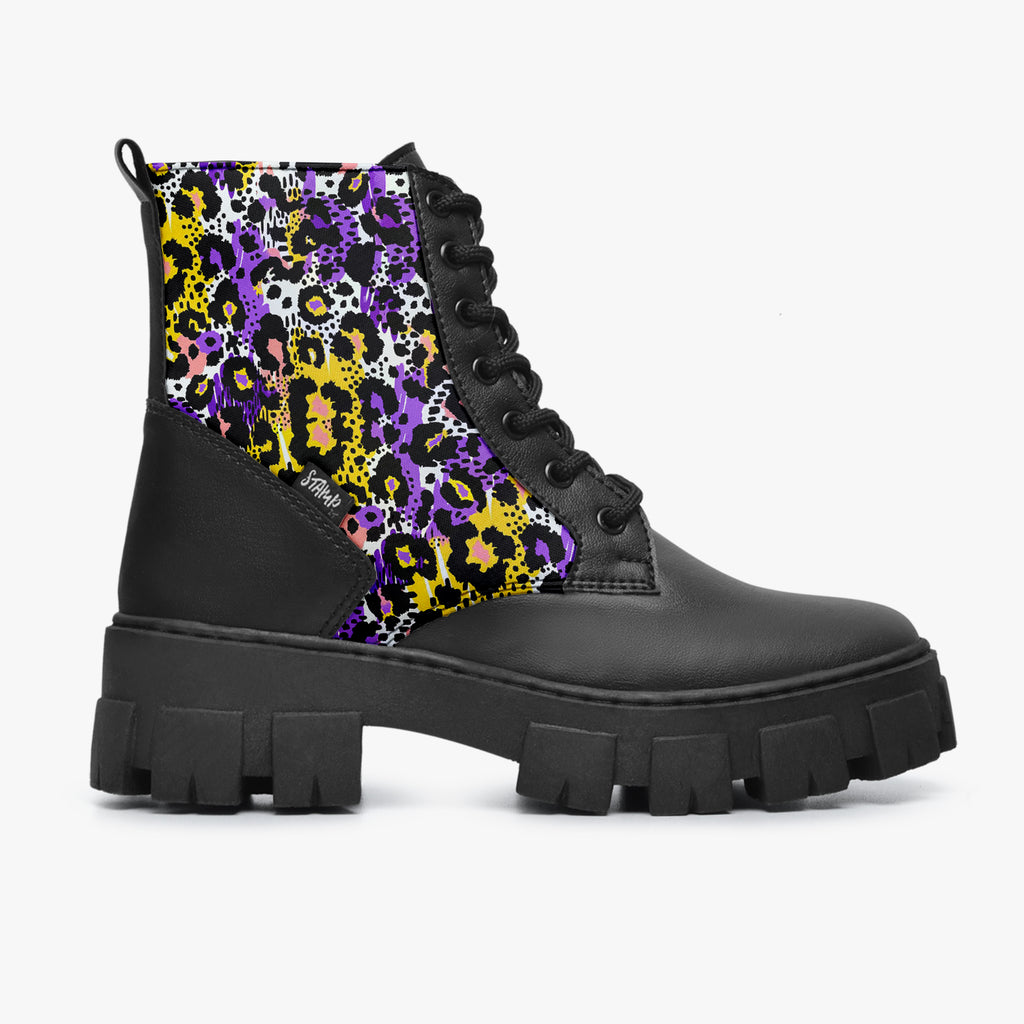 Bota Coturno Tratorada Cano Médio Animal Print Leopardo Aquarela Colorido Animal Print