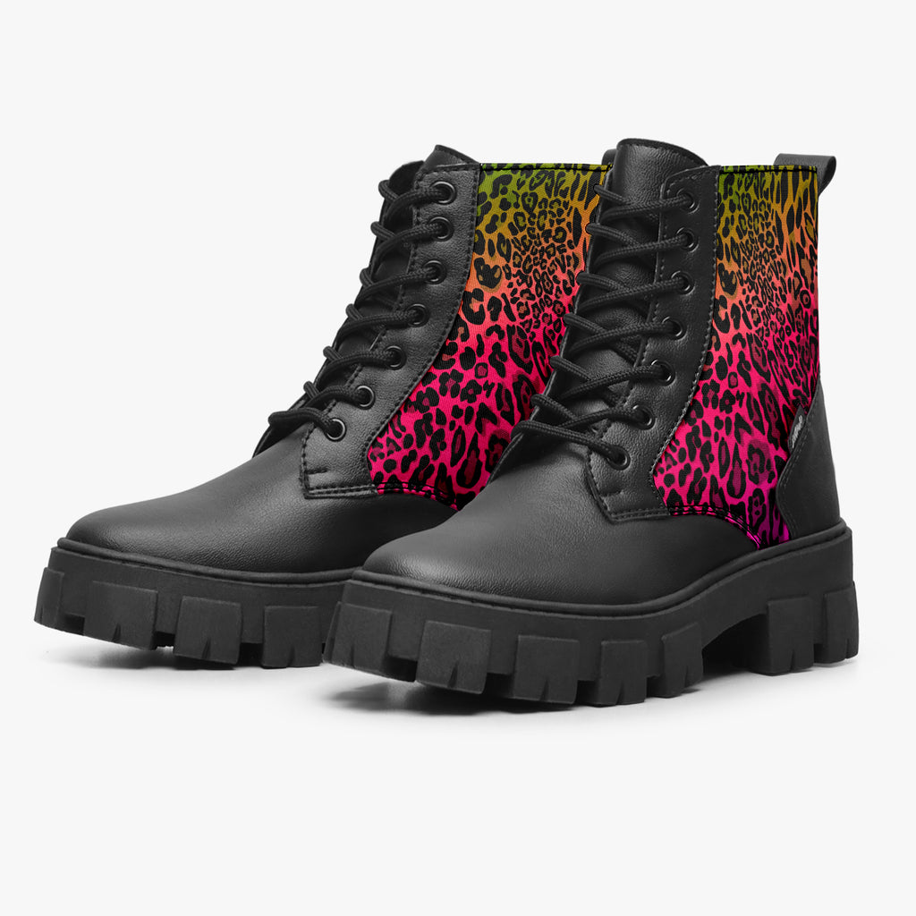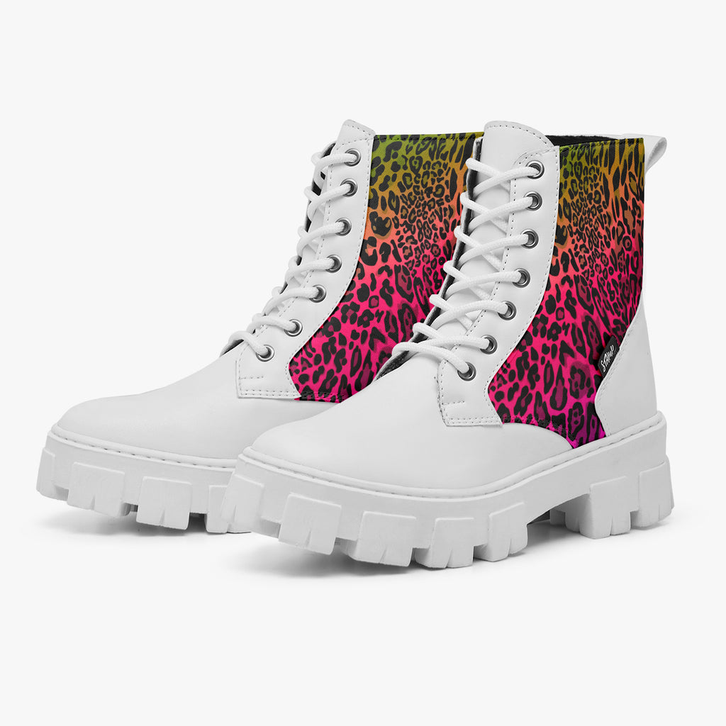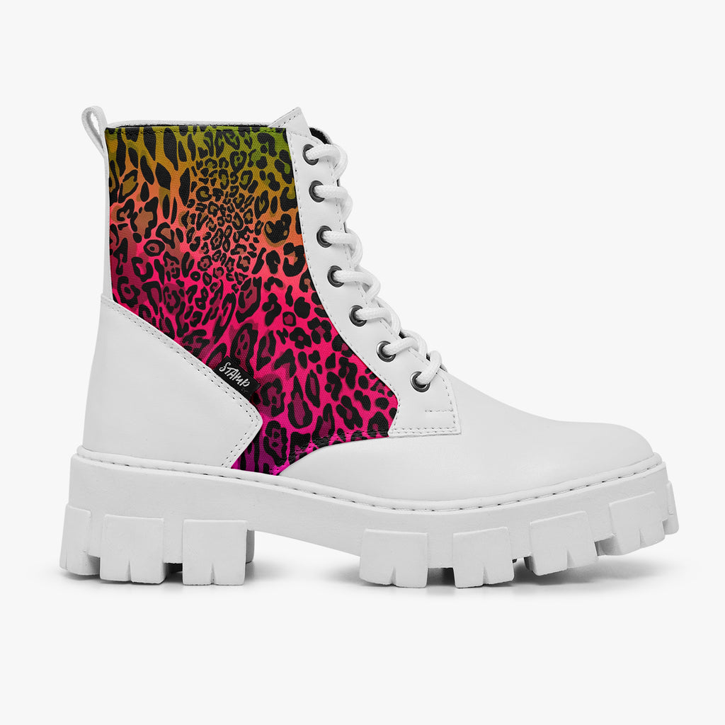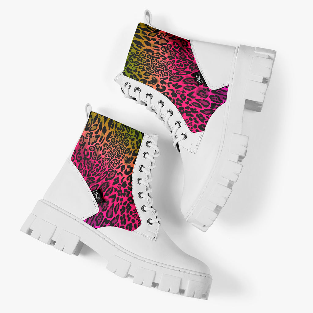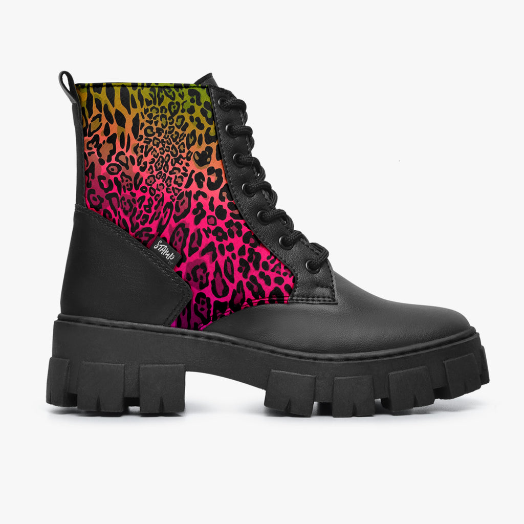 Bota Coturno Tratorada Cano Médio Animal Print Leopardo Psicodélico Colorido Animal Print