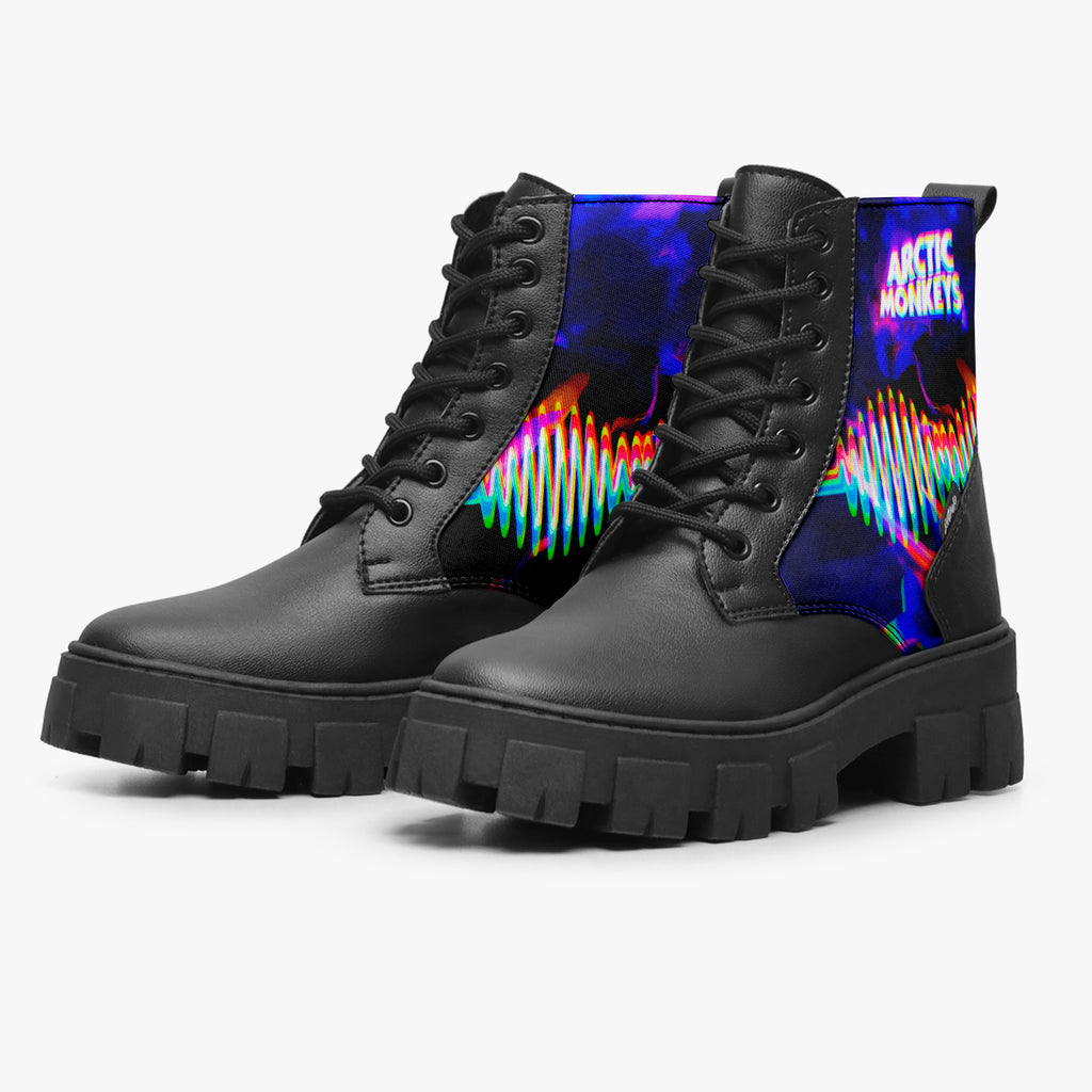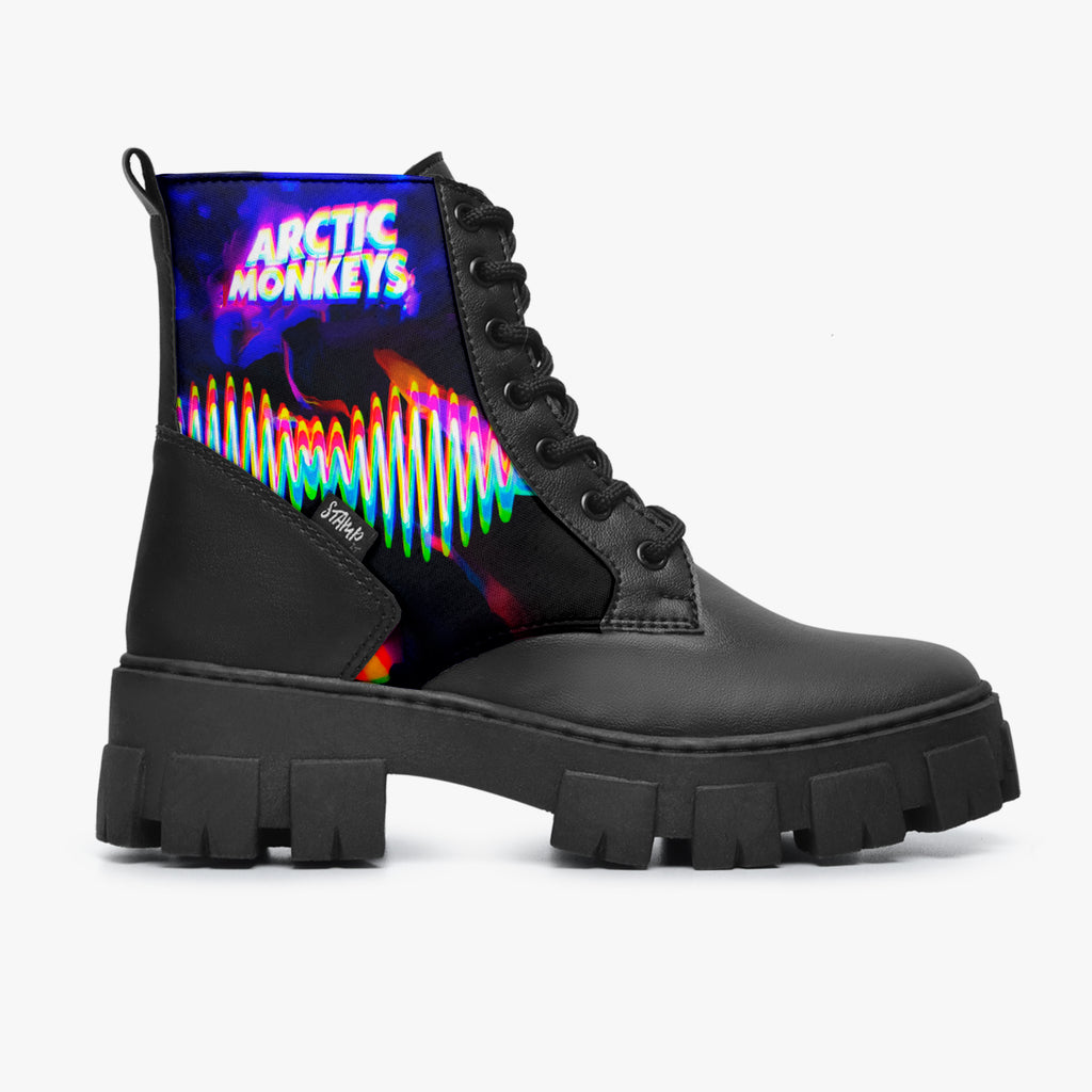 Bota Coturno Tratorada Cano Médio Arctic Monkeys Psychedelic AM Colorido Bandas de Rock, confeccionado em lona e couro sintético com cores e estampas exclusivas.