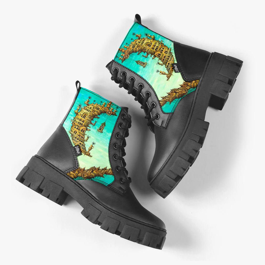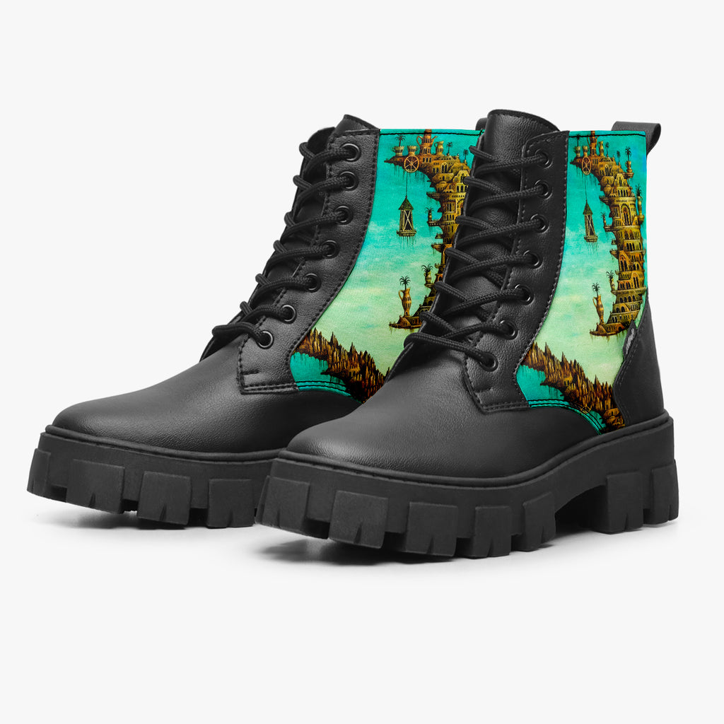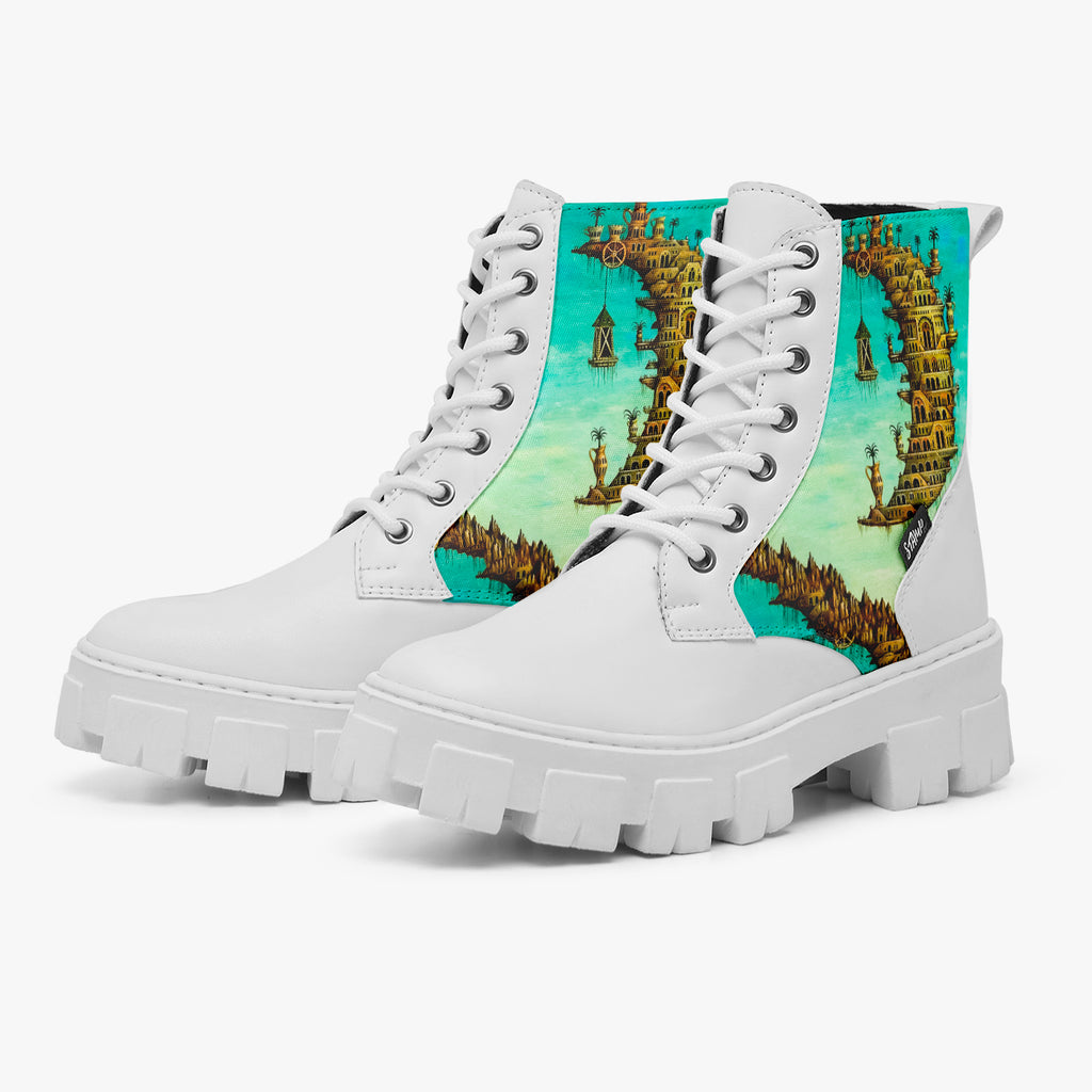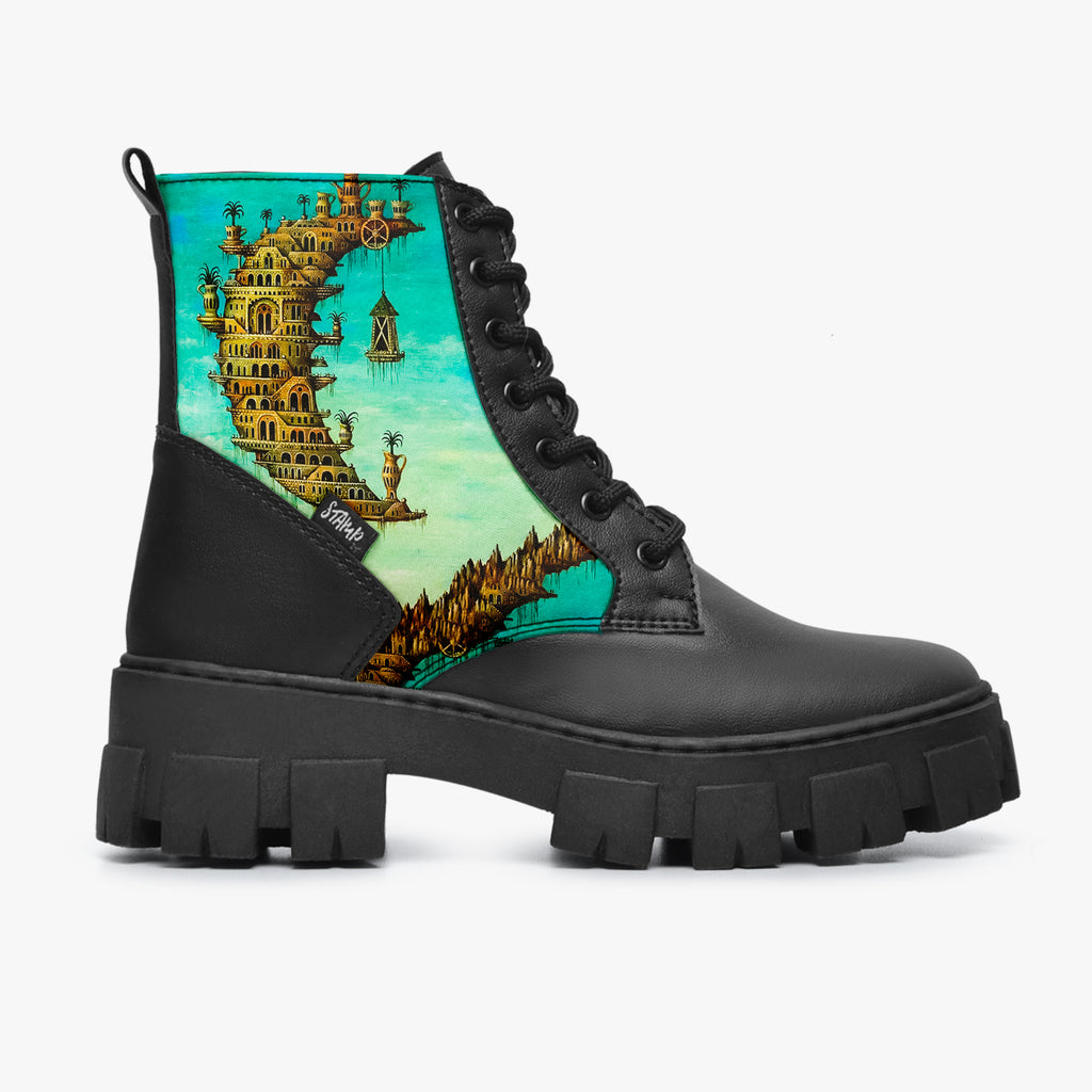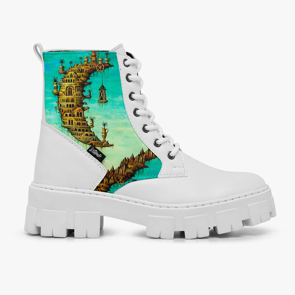 Bota Coturno Tratorada Cano Médio Arte A Lua Futurista Azul Cultura e Arte