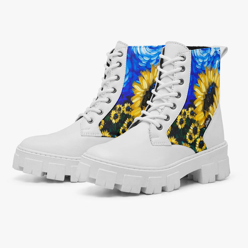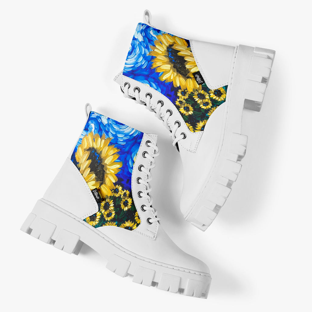 Bota Coturno Tratorada Cano Médio Arte Aquarela Céu e Girassóis Cultura e Arte