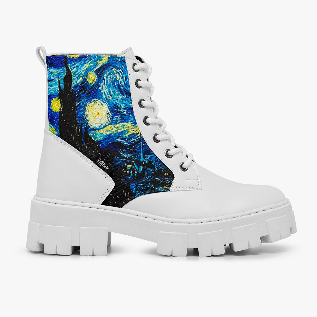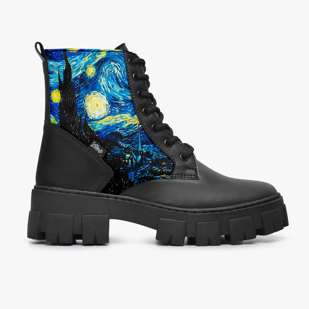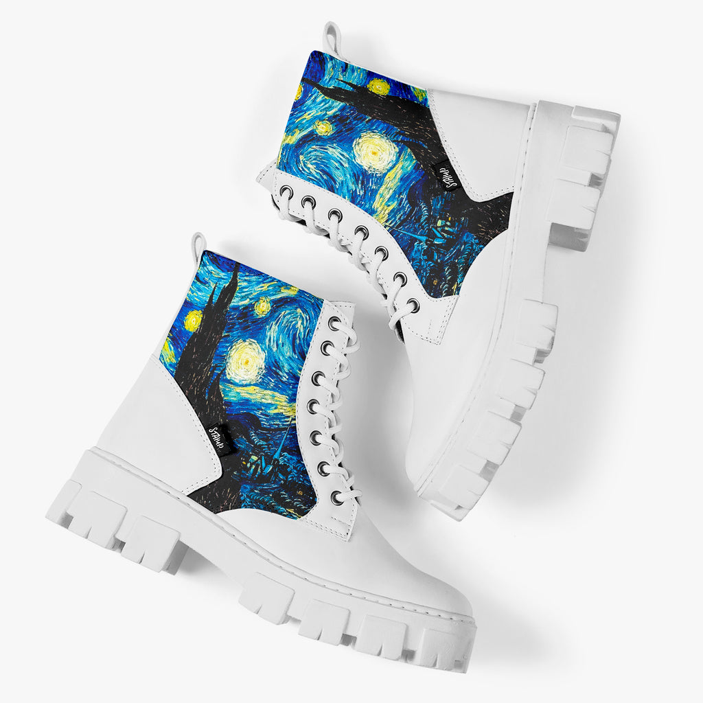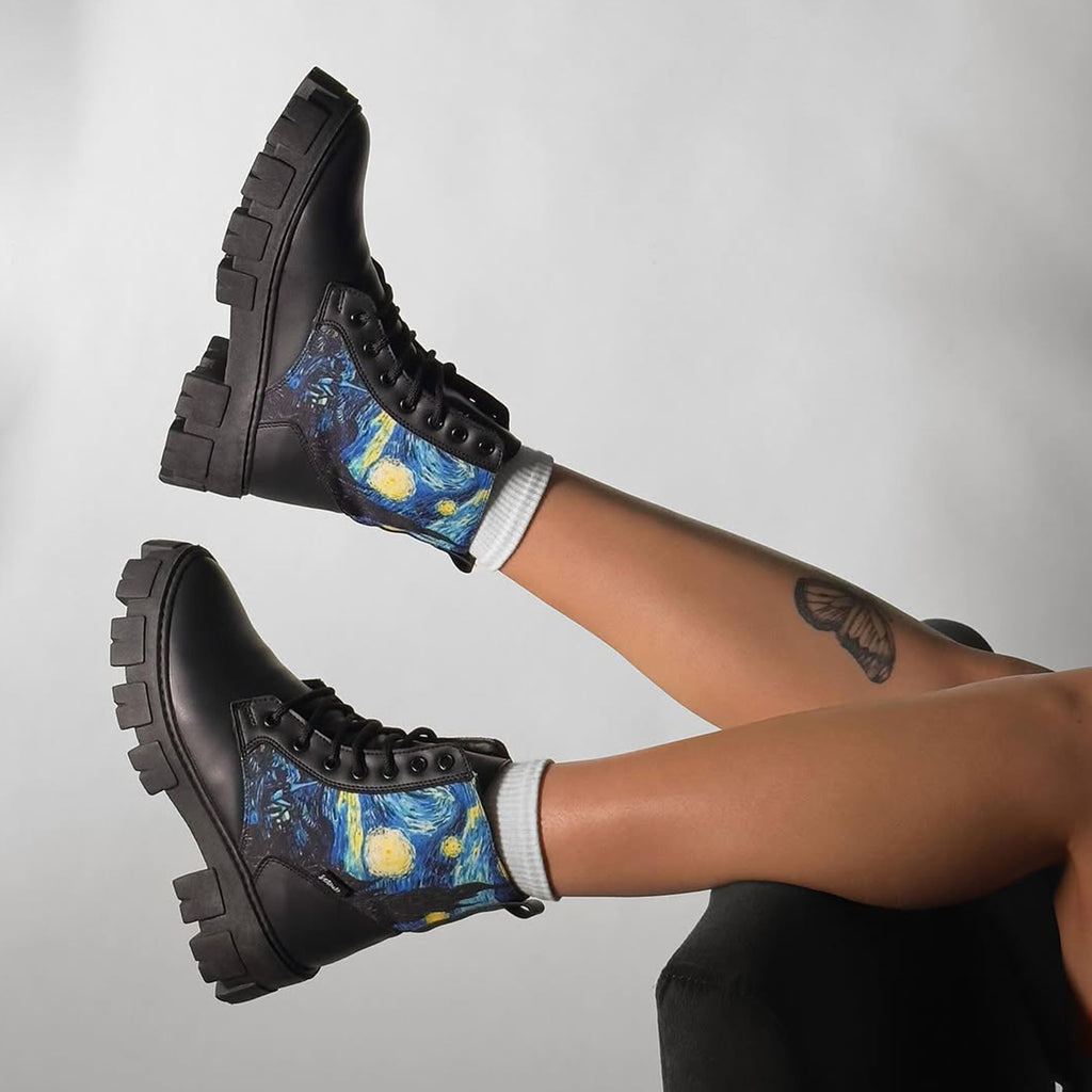 Bota Coturno Tratorada Cano Médio Arte Noite Estrelada Van Gogh Azul Cultura e Arte