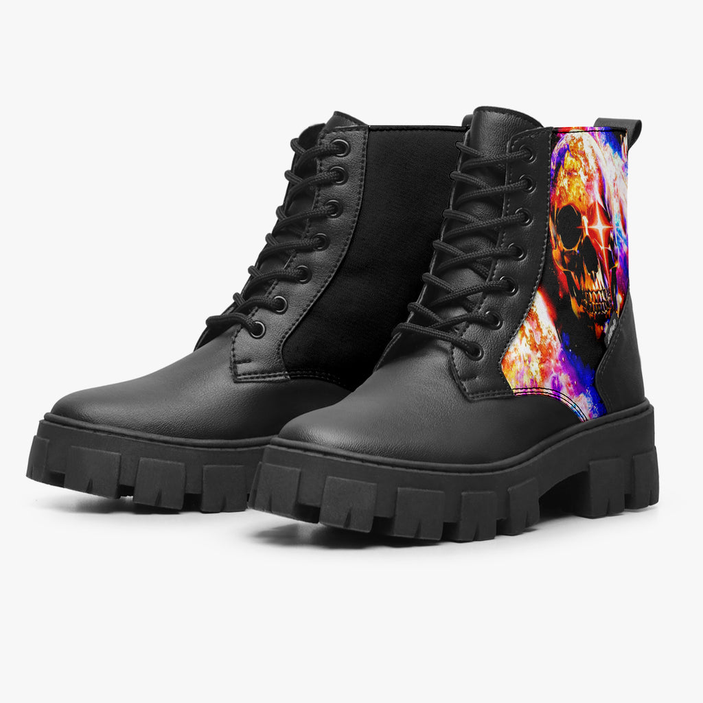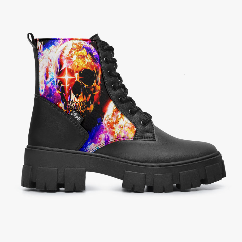 Bota Coturno Tratorada Cano Médio Caveira Explosão Intergaláctica Preto Caveiras