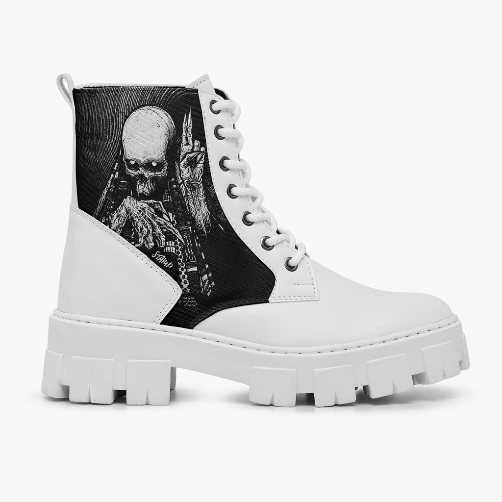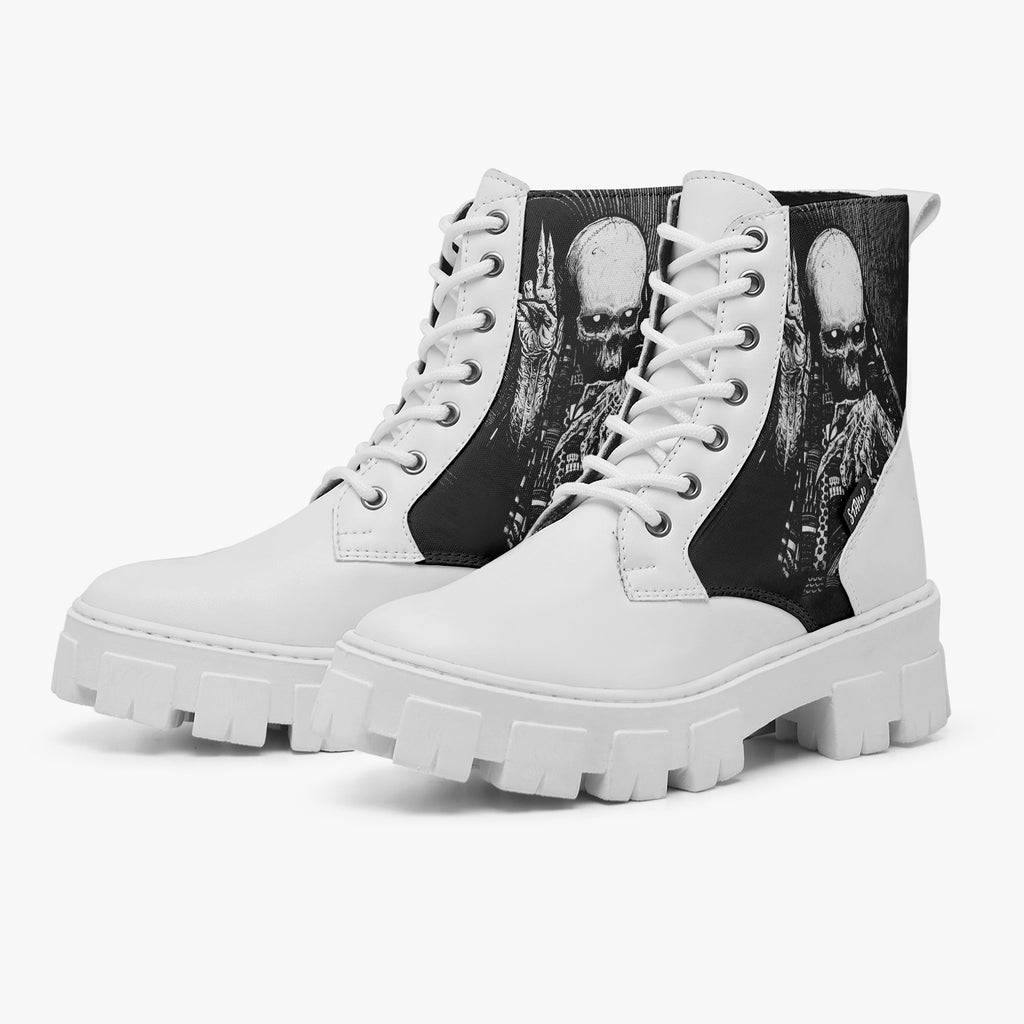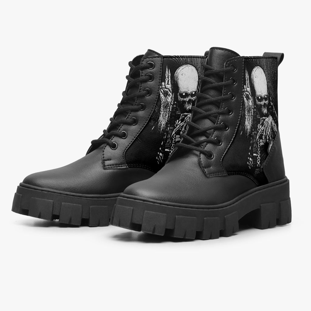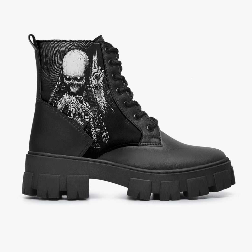 Bota Coturno Tratorada Cano Médio Caveira Illuminati Skull Preto Caveiras