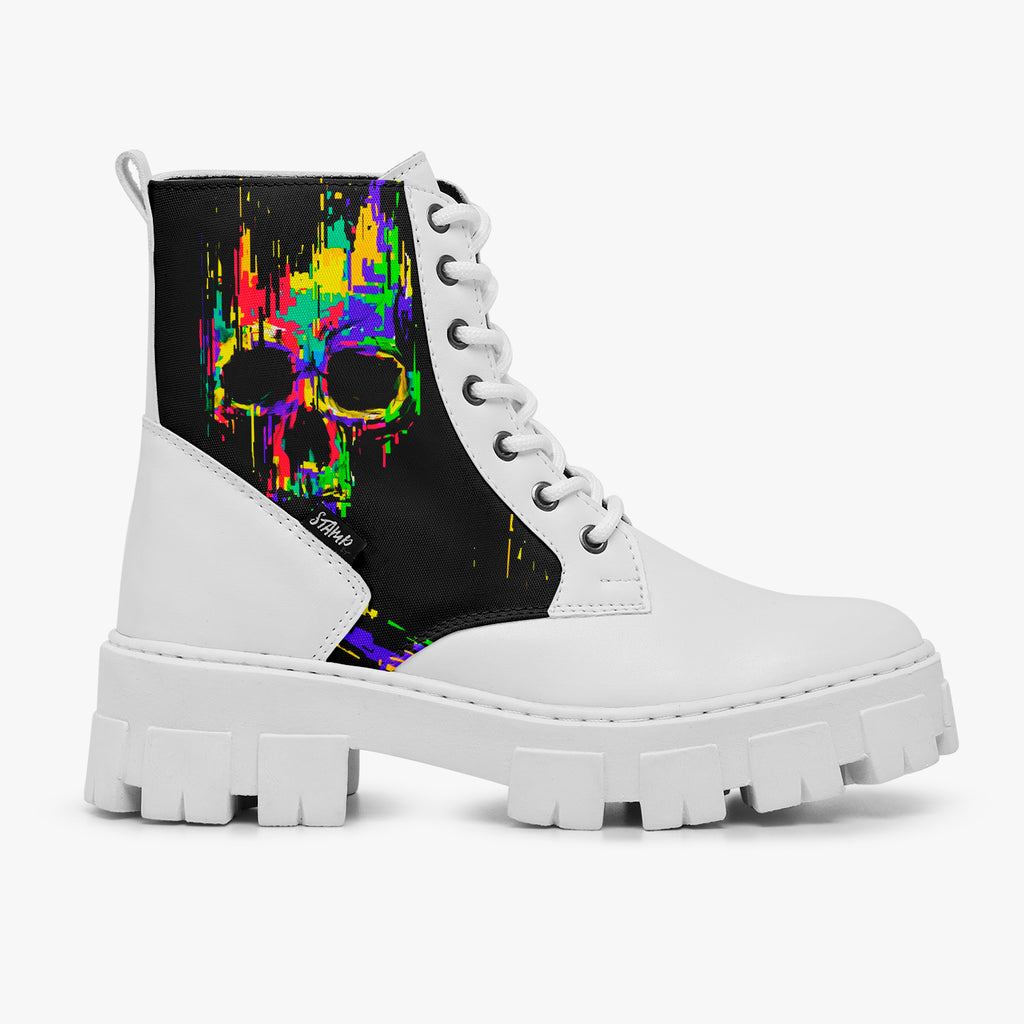 Bota Coturno Tratorada Cano Médio Caveira Pixels Preto Caveiras