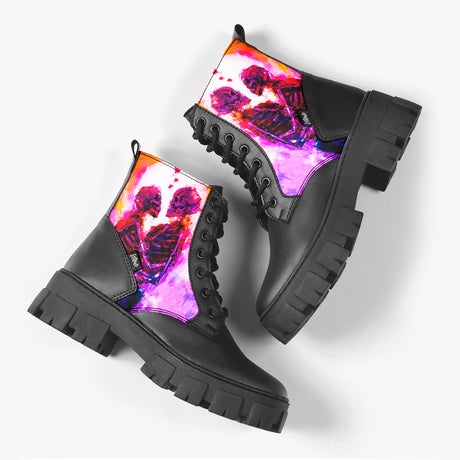 Bota Coturno Tratorada Cano Médio Cute Skeletons in Love Colorido Caveiras, confeccionado em lona e couro sintético com cores e estampas exclusivas.