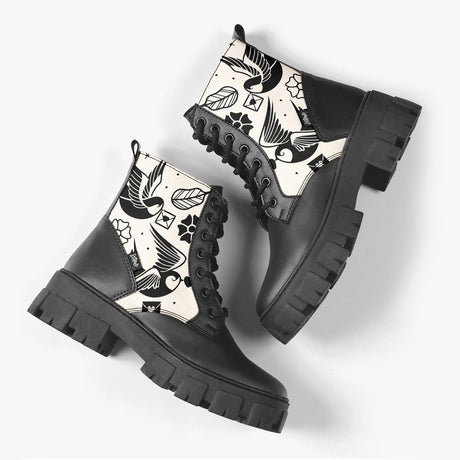 Bota Coturno Tratorada Cano Médio Flying Birds Tattoo Creme Old School