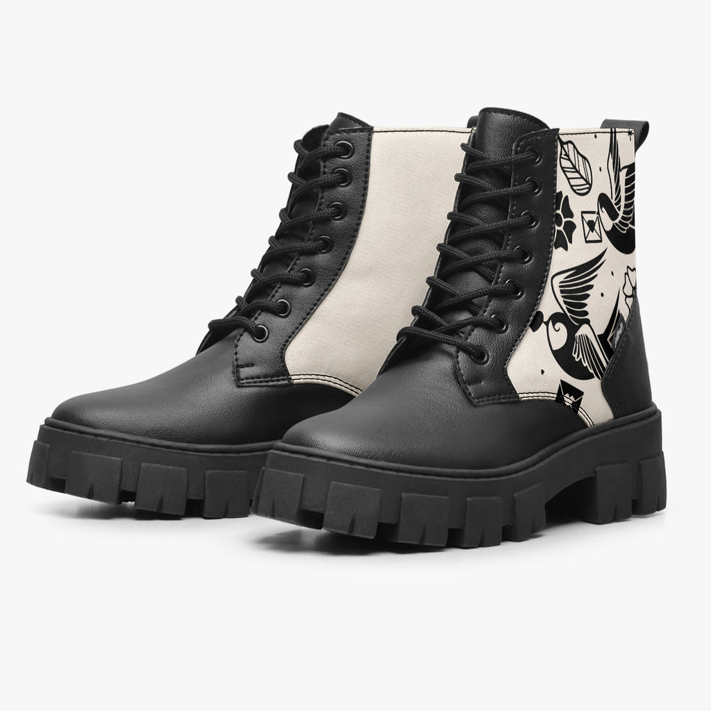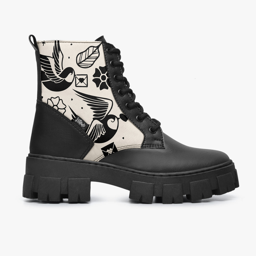 Bota Coturno Tratorada Cano Médio Flying Birds Tattoo Creme Old School
