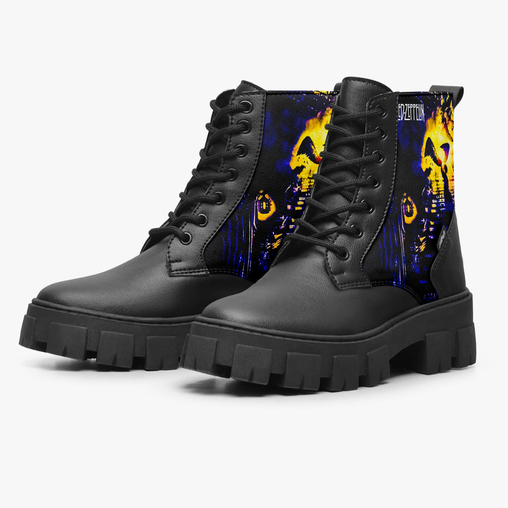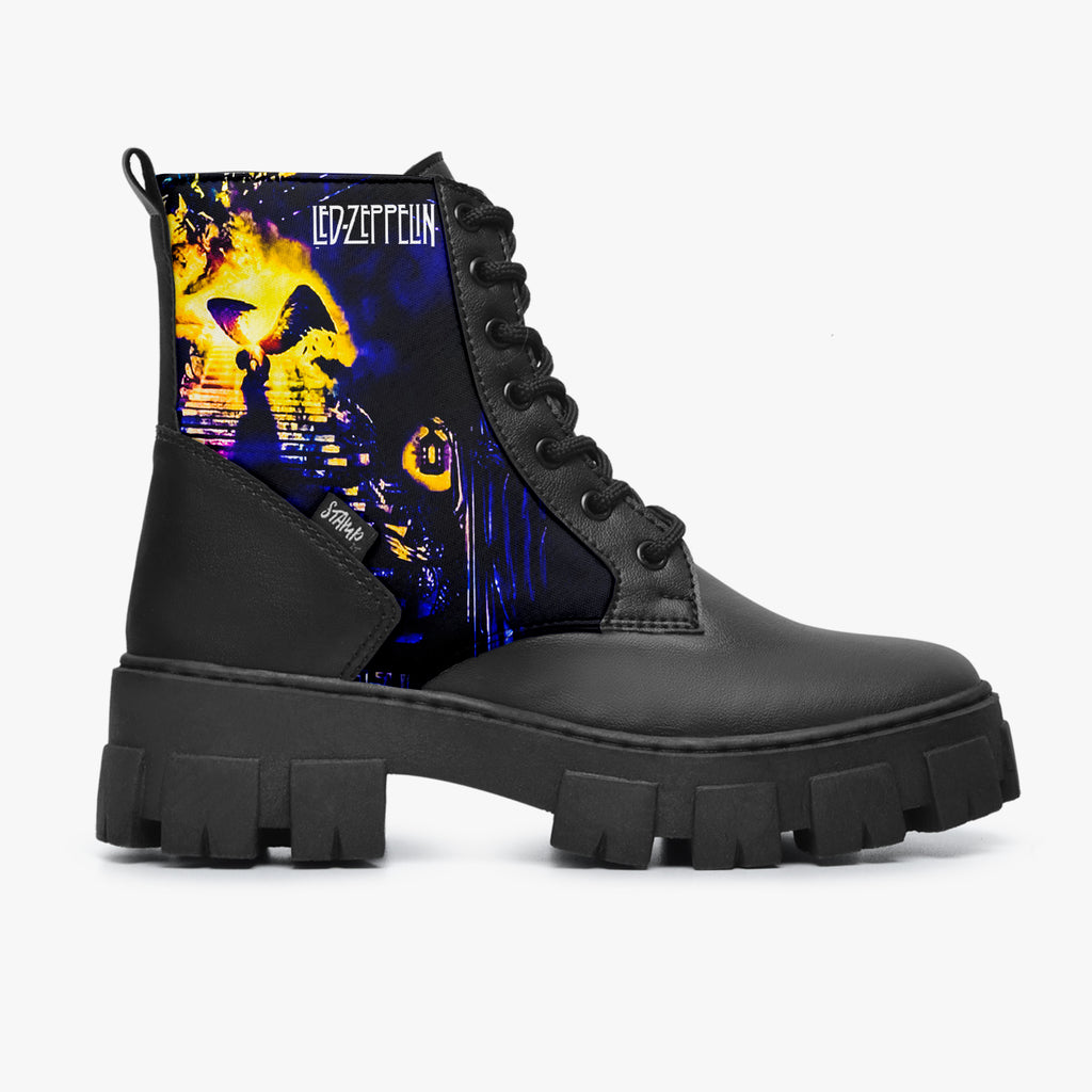 Bota Coturno Tratorada Cano Médio Led Zeppelin Stairway to Heaven Preto Bandas de Rock, confeccionado em lona e couro sintético com cores e estampas exclusivas.