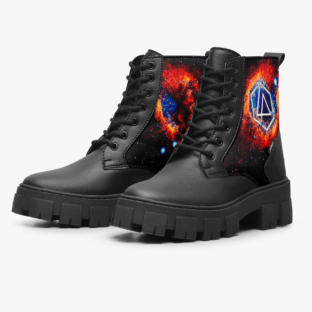 Bota Coturno Tratorada Cano Médio Linkin Park LP Galaxy Colorido Bandas de Rock, confeccionado em lona e couro sintético com cores e estampas exclusivas.