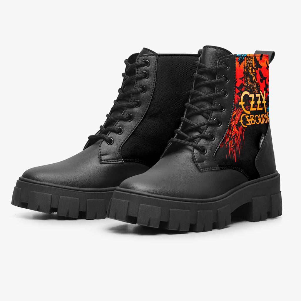 Bota Coturno Tratorada Cano Médio Ozzy Osbourne Mr. Crawley Preto e Vermelho Bandas de Rock, confeccionado em lona e couro sintético com cores e estampas exclusivas.