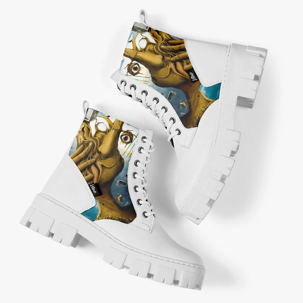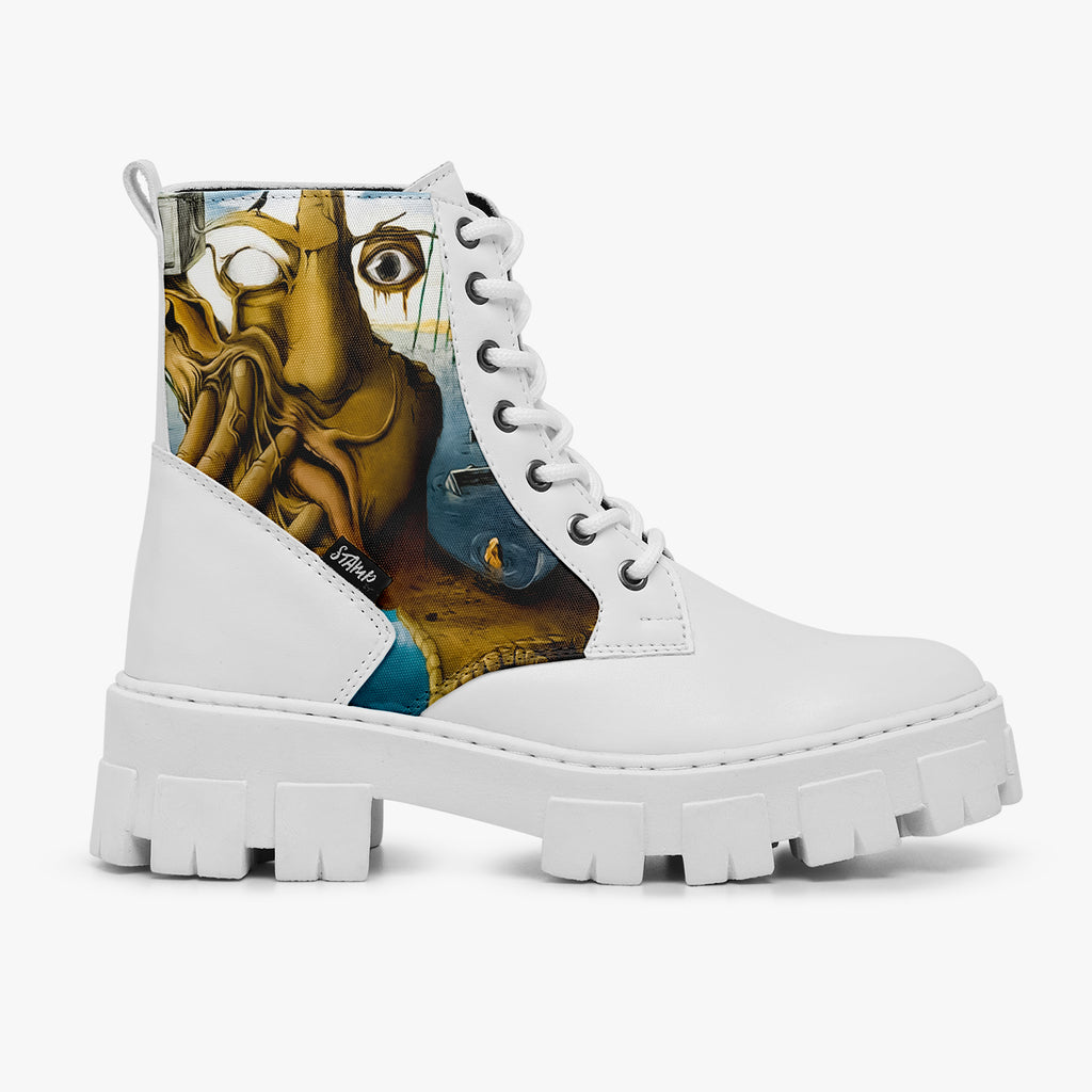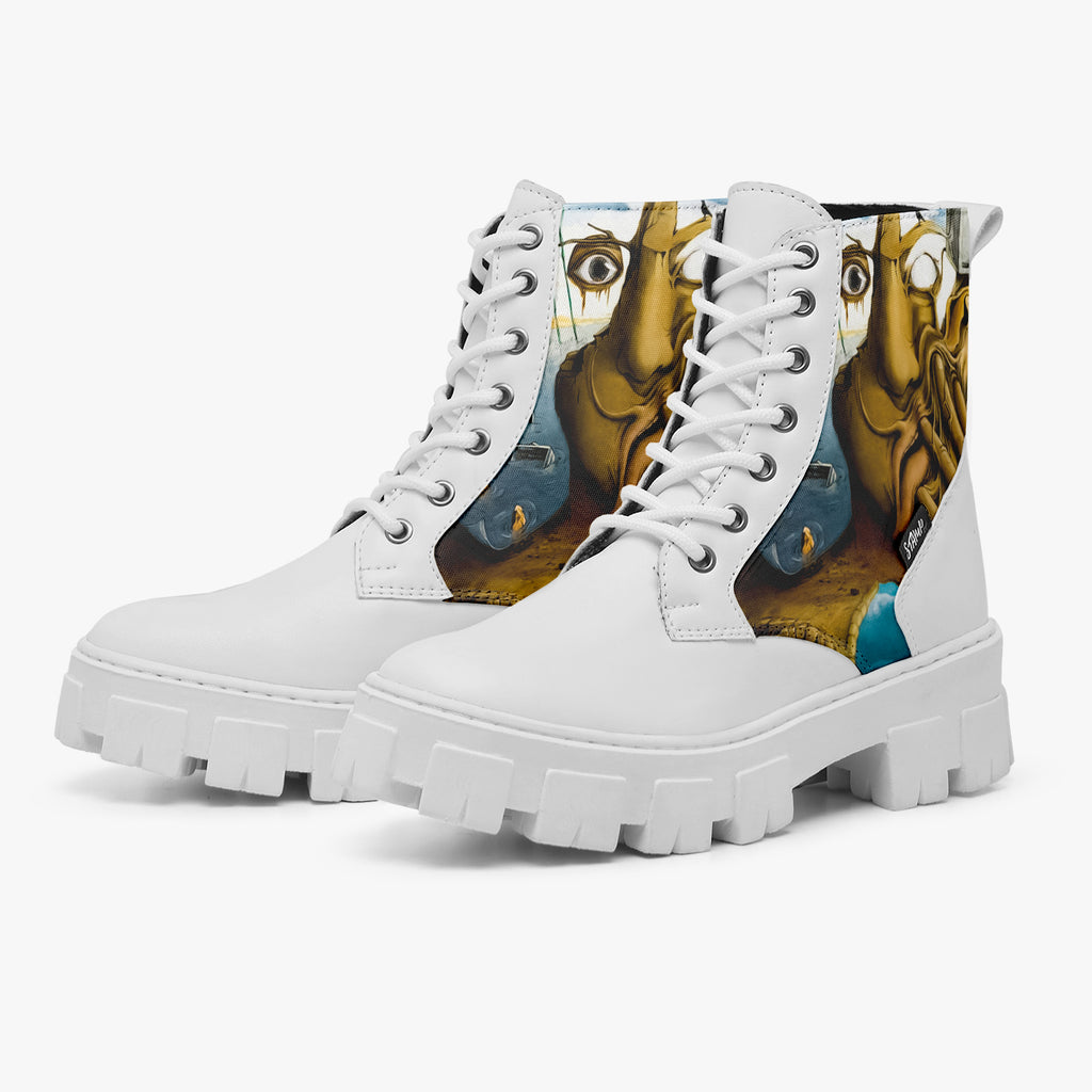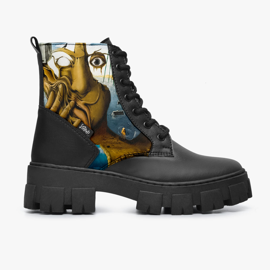 Bota Coturno Tratorada Cano Médio Uma Metamorfose Futurista Azul Cultura e Arte