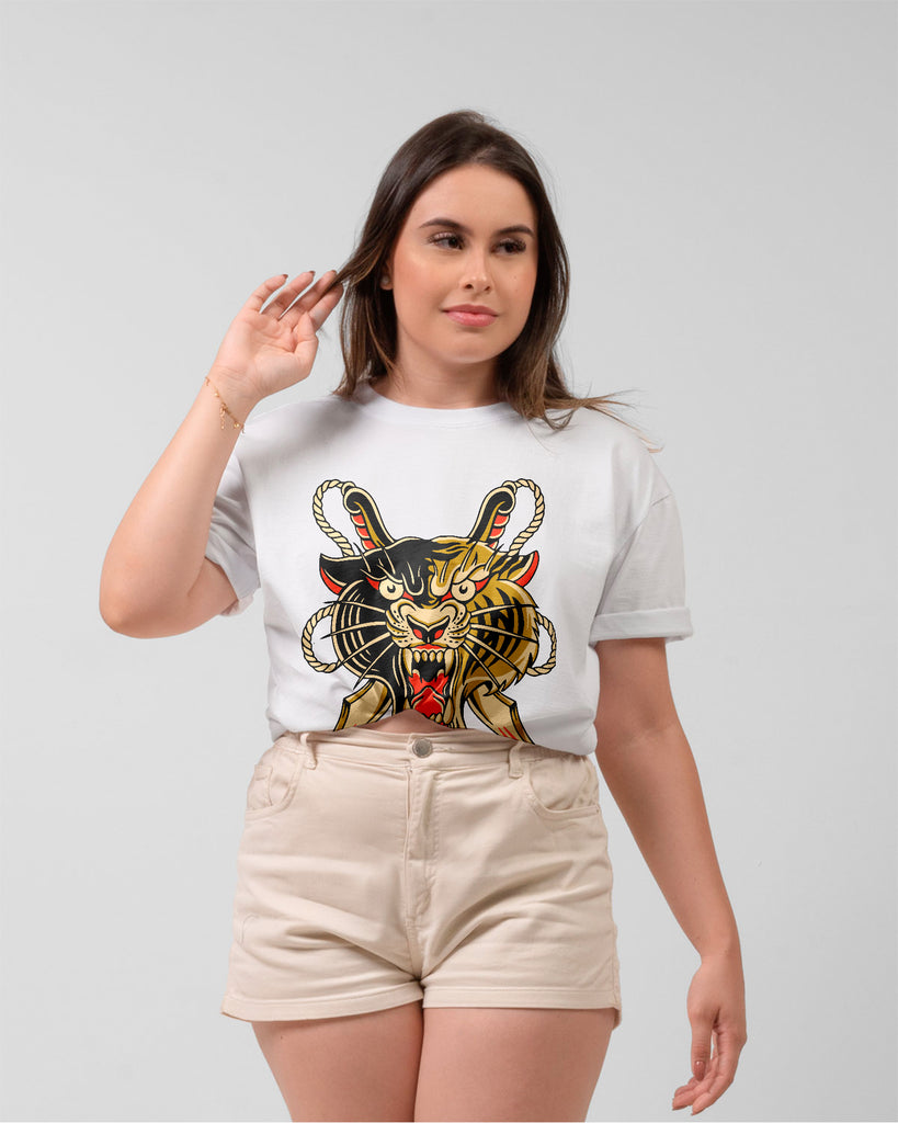 A gola canelada de 2 cm e a costura reforçada garantem durabilidade, sem perder o formato ou a cor. A estampa é de alta qualidade, com cores vivas e definição que duram.