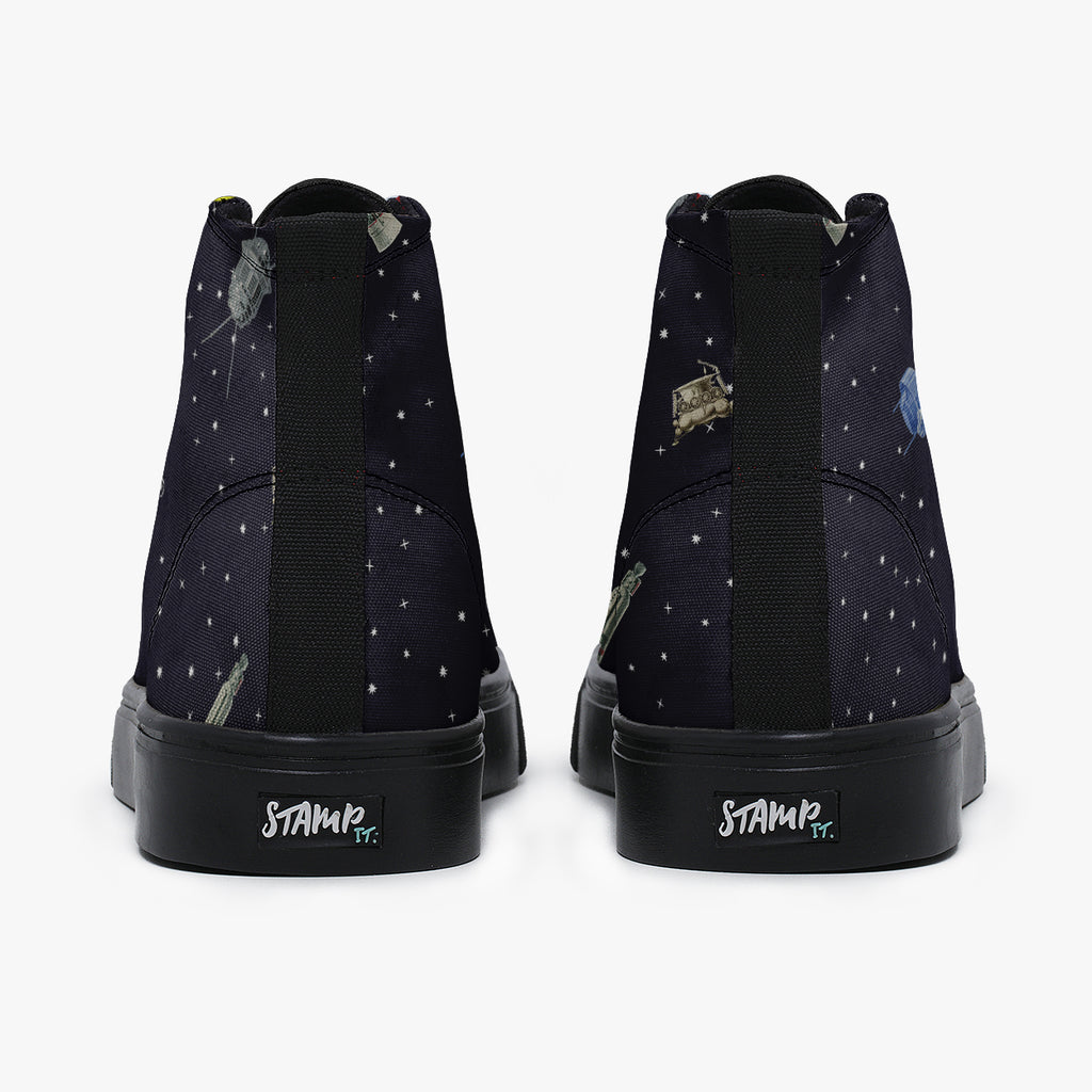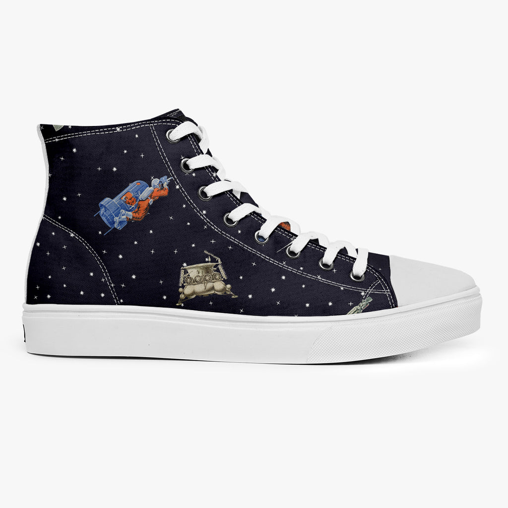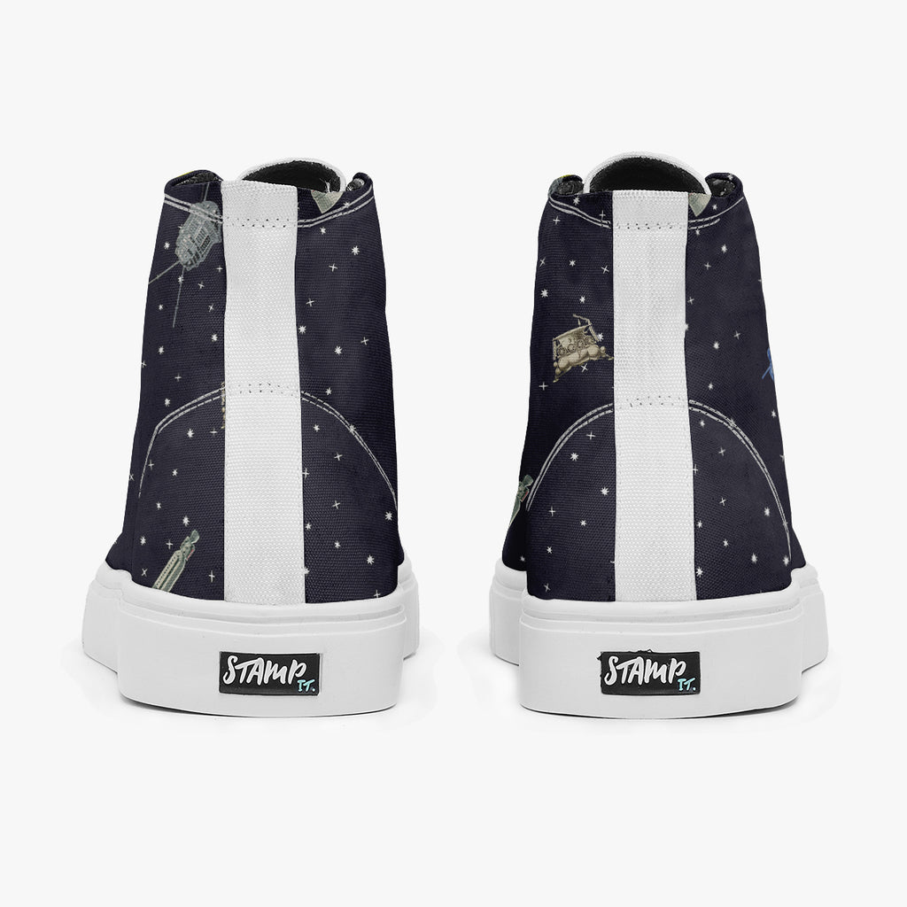Tênis Cano Alto Azul Astronauta Estrelas Satélites Abstrato