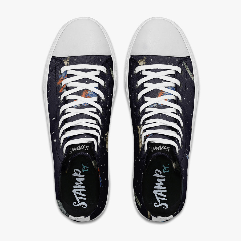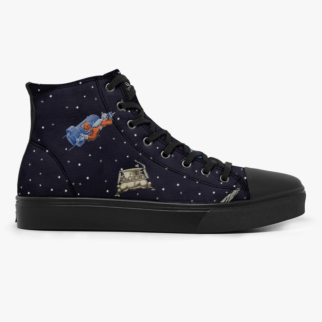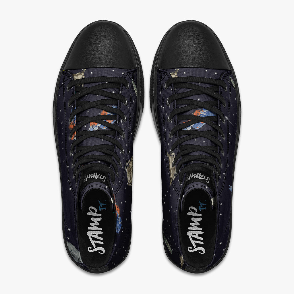 Tênis Cano Alto Azul Astronauta Estrelas Satélites Abstrato