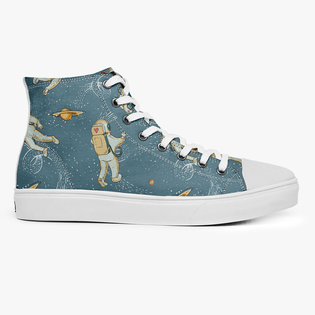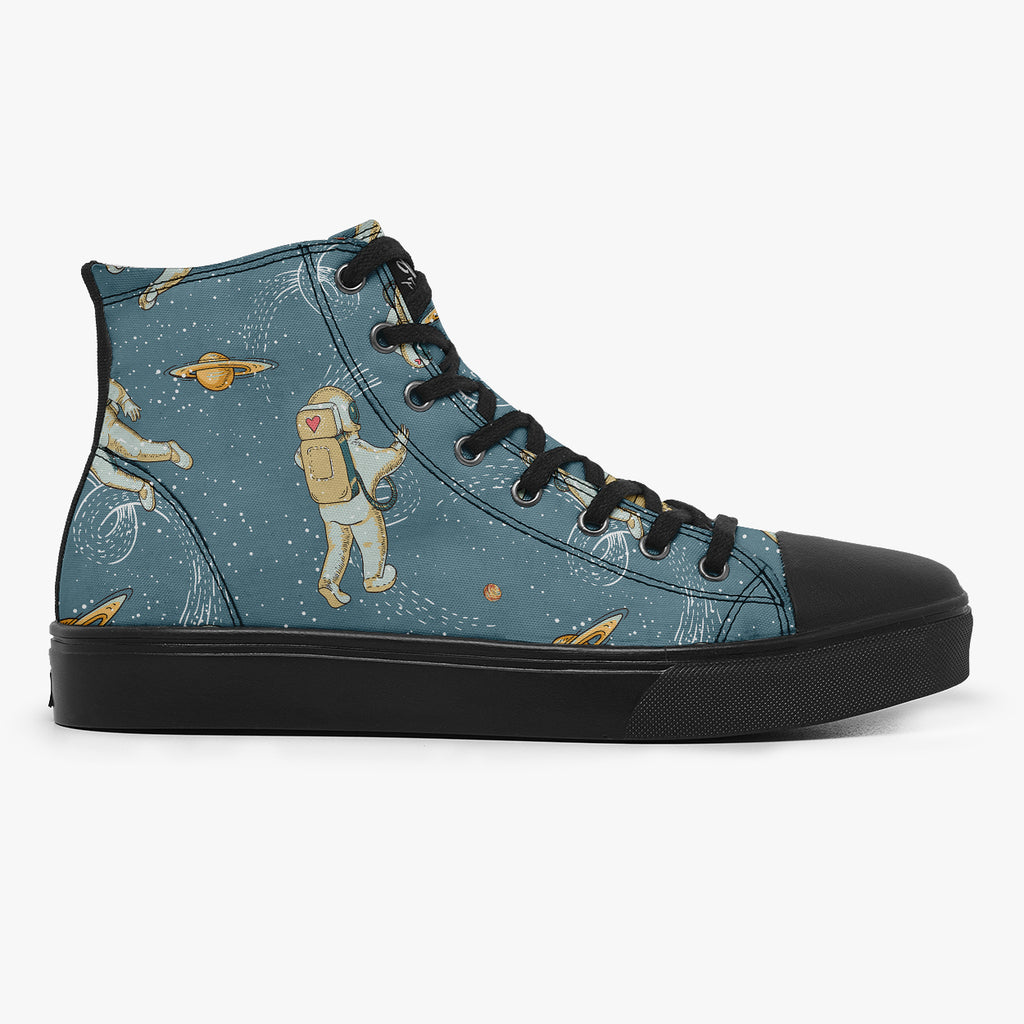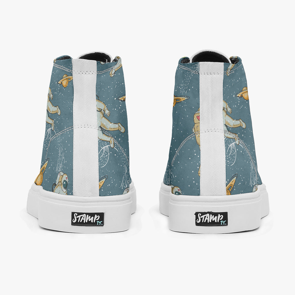 Tênis Cano Alto Azul Astronauta Traje Coração Abstrato