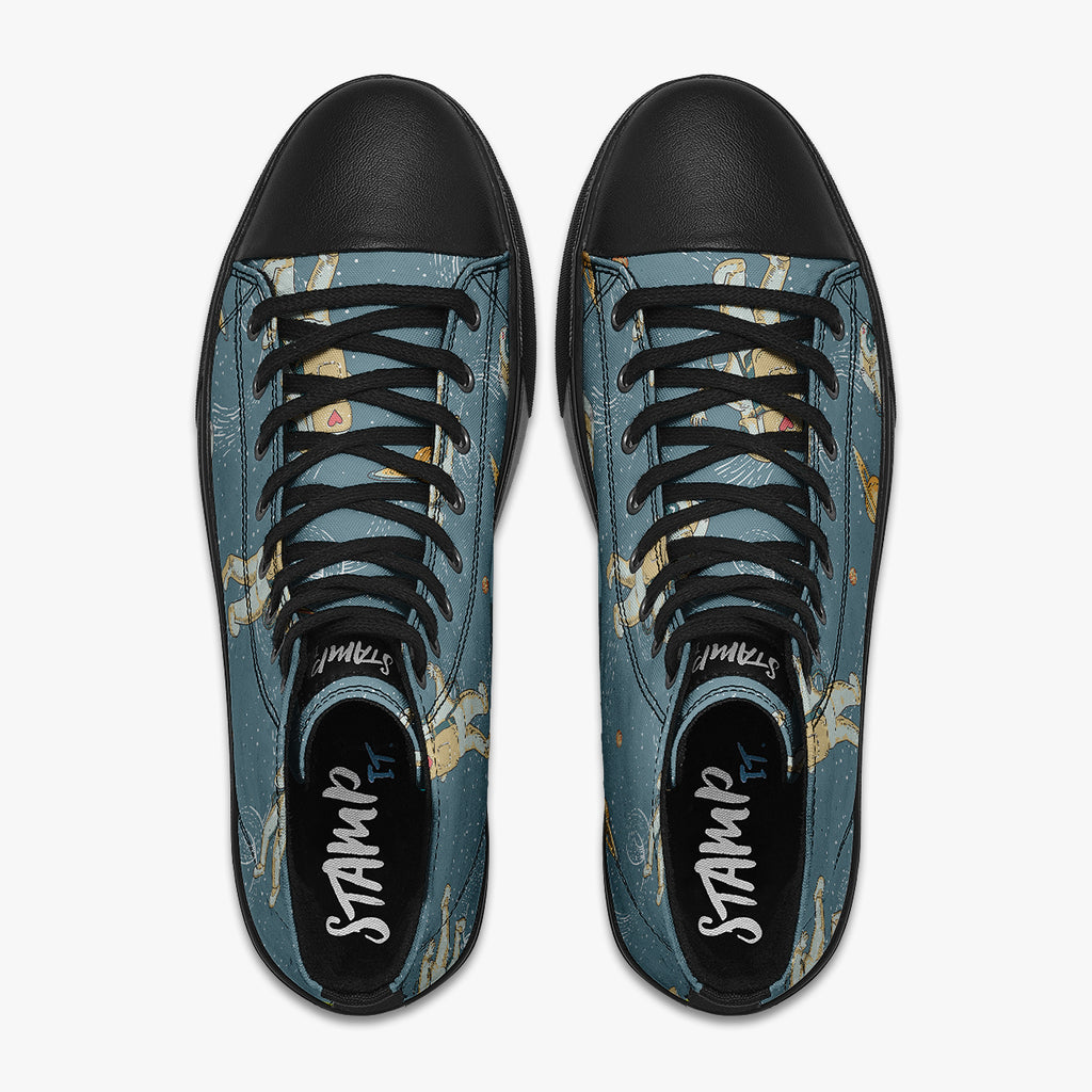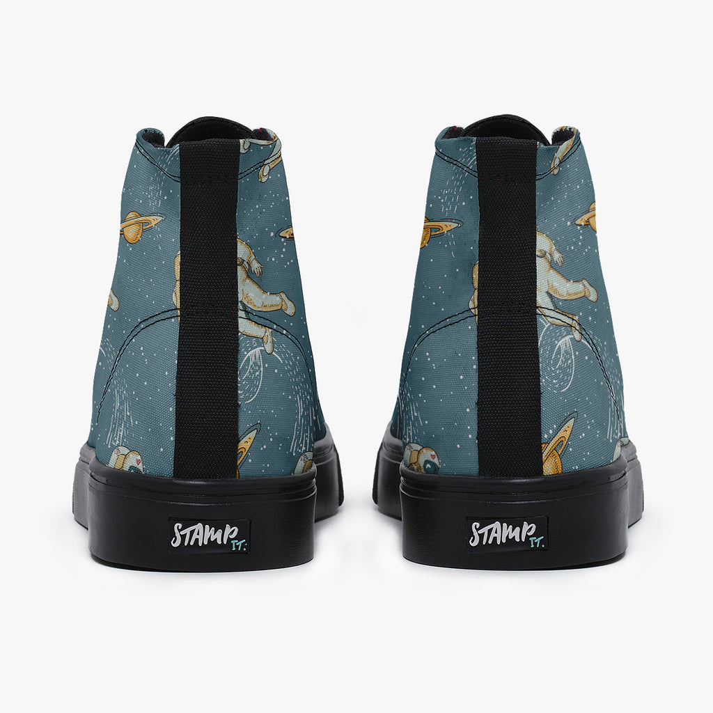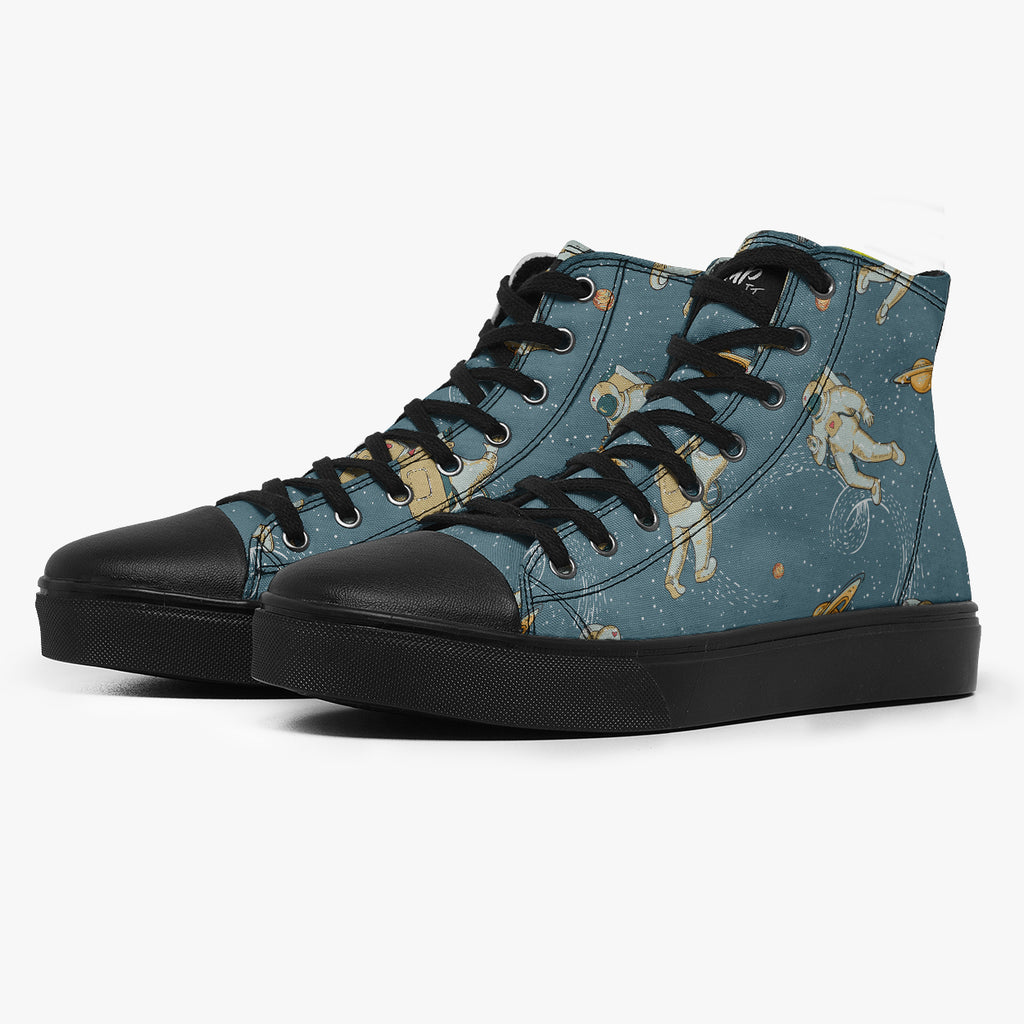 Tênis Cano Alto Azul Astronauta Traje Coração Abstrato