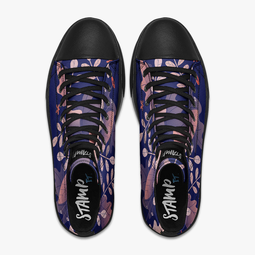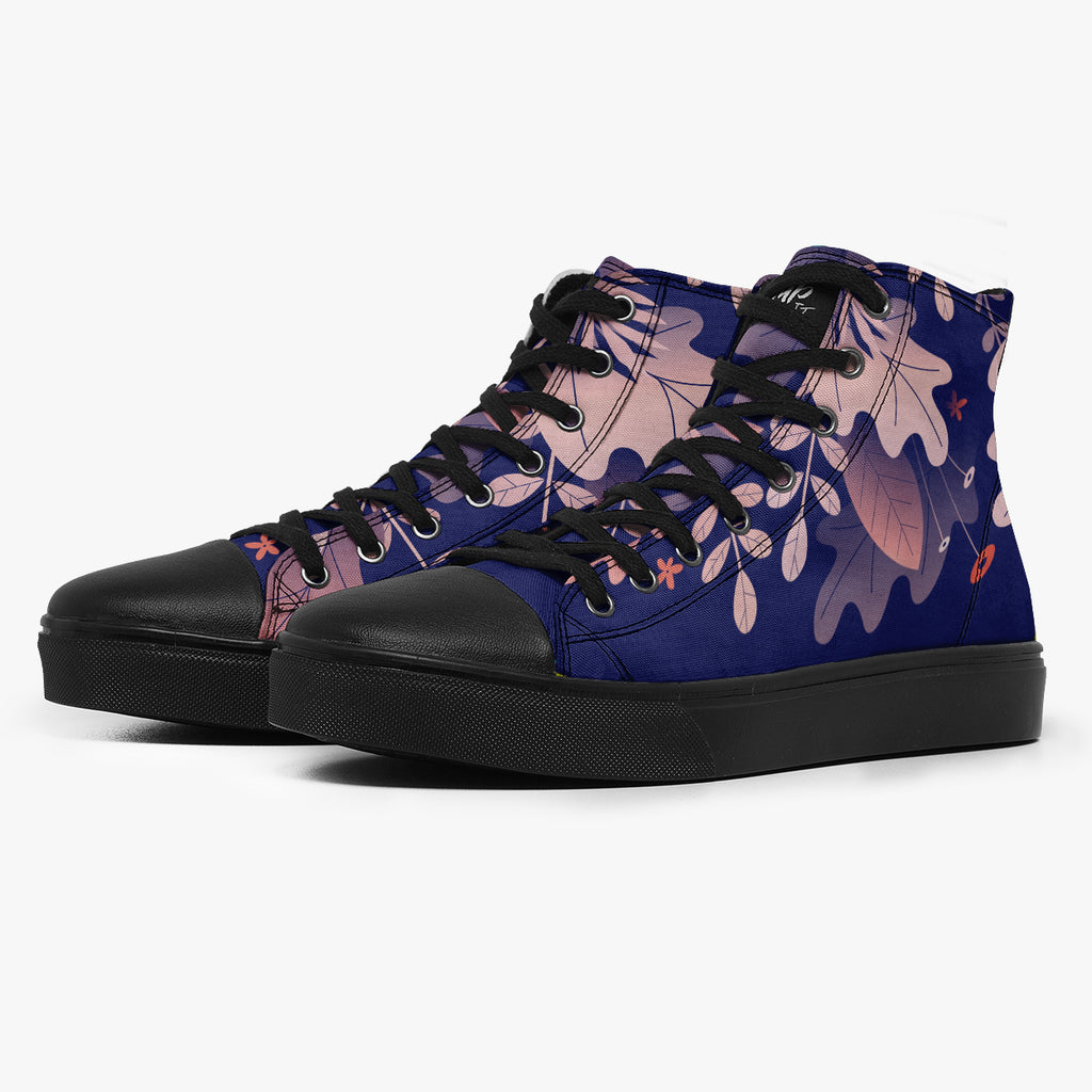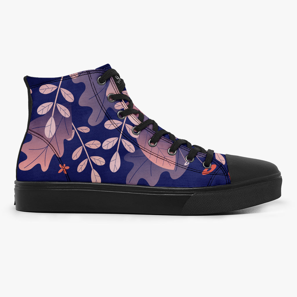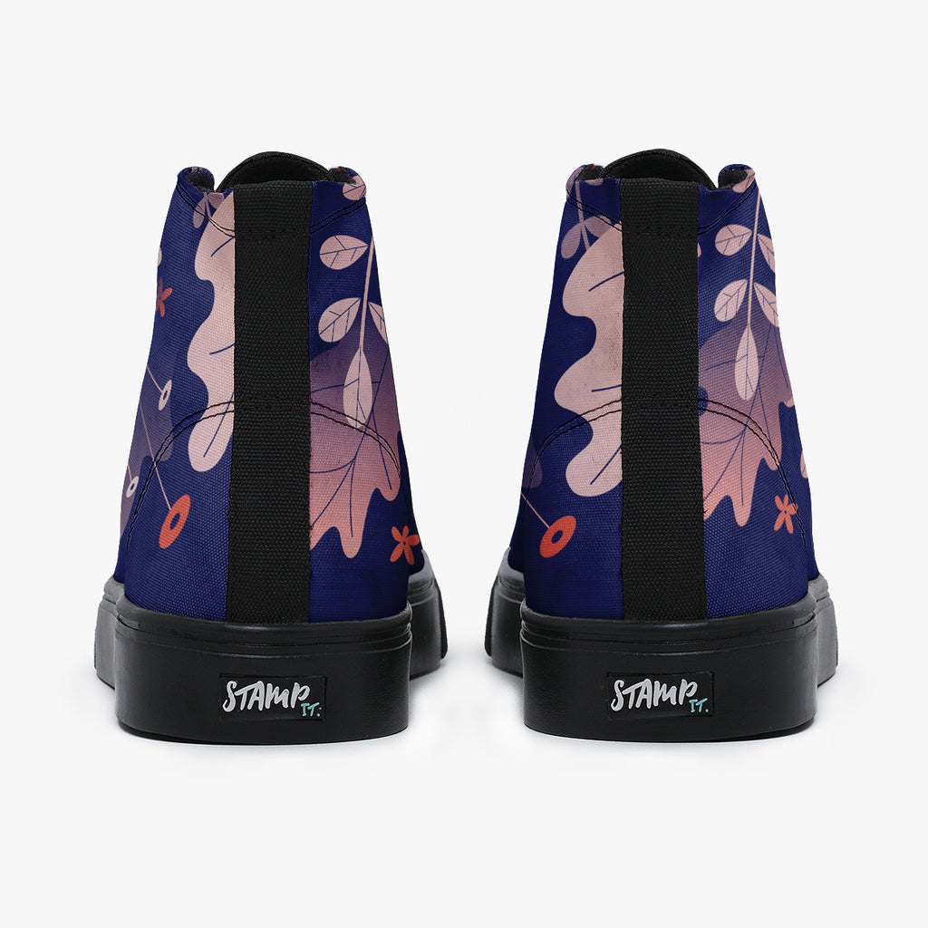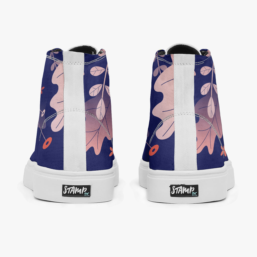 Tênis Cano Alto Azul Folhas Secas Outono Abstrato