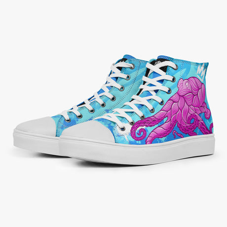 Tênis Cano Alto Azul Polvo Graffiti By Galvão, confeccionado em lona, com cores e estampas exclusivas.