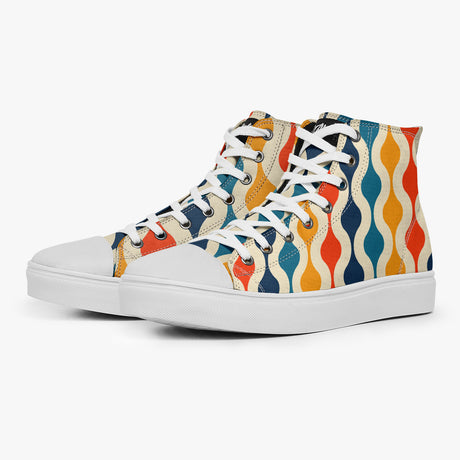 Tênis Cano Alto Bege Ondulados Coloridos Abstrato, confeccionado em lona, com cores e estampas exclusivas.