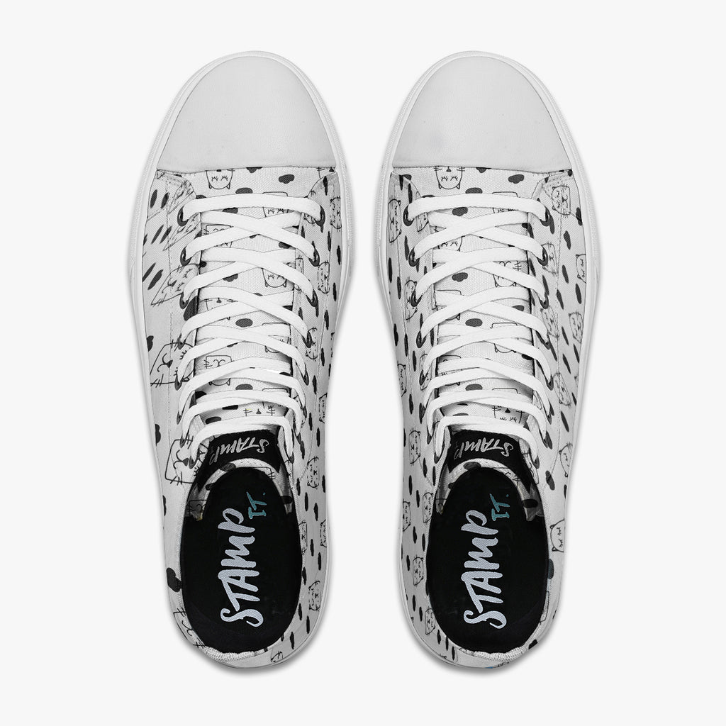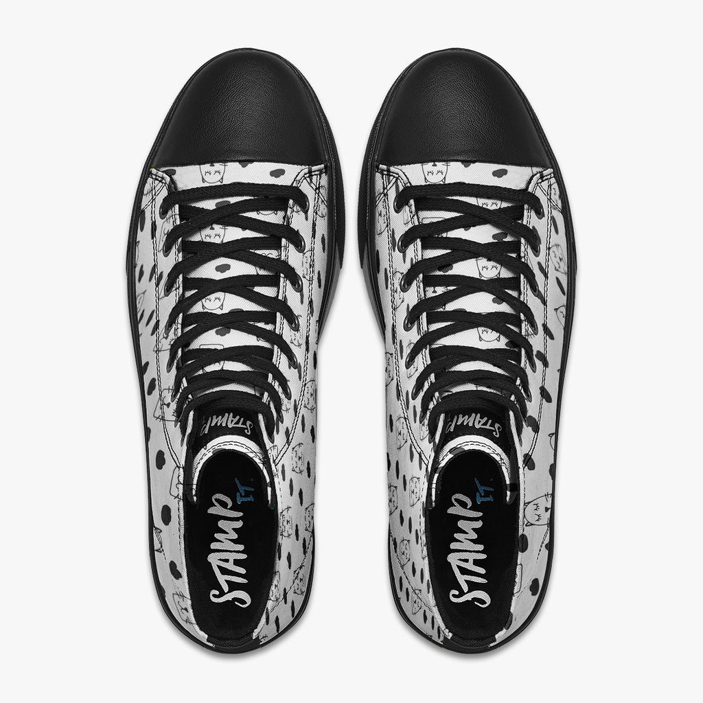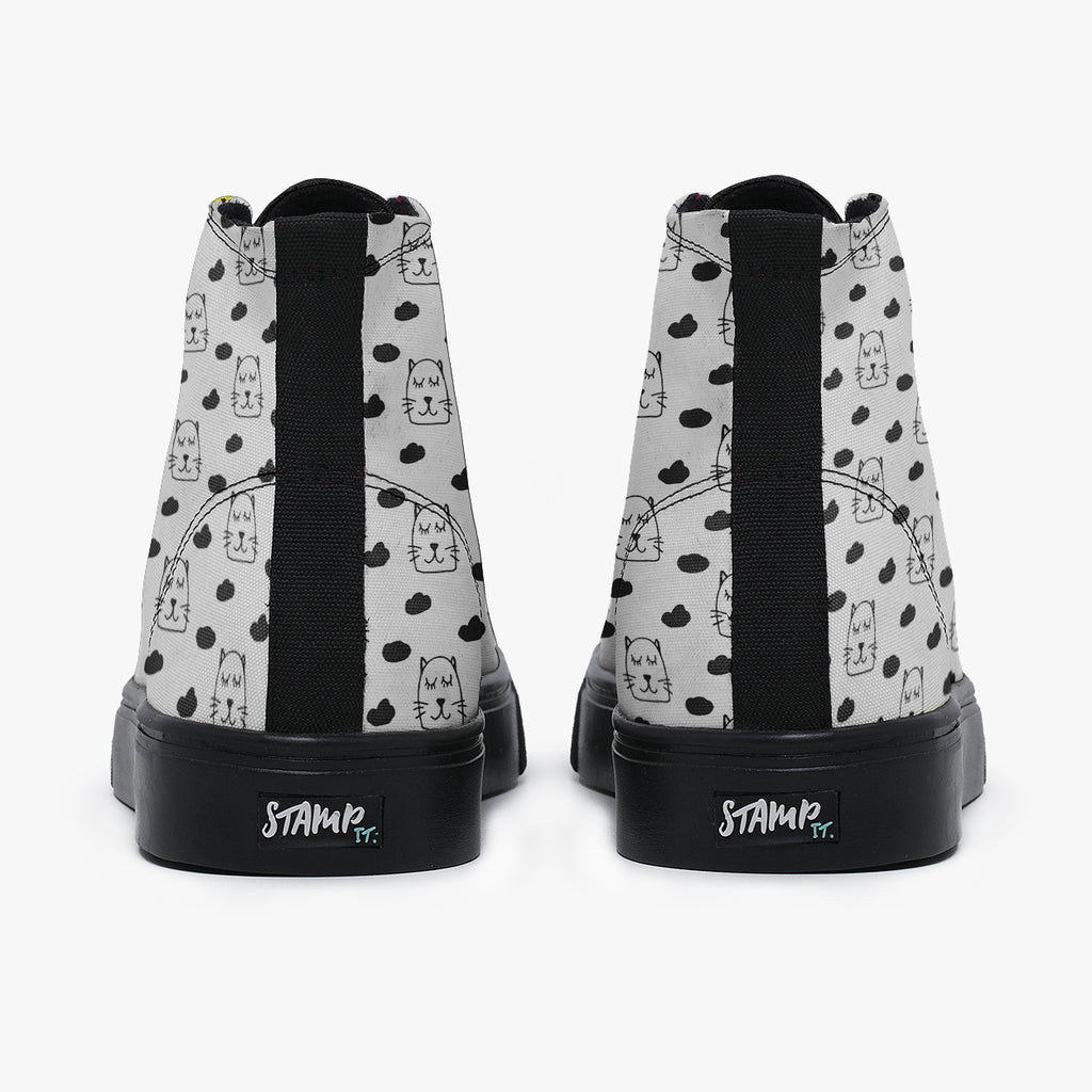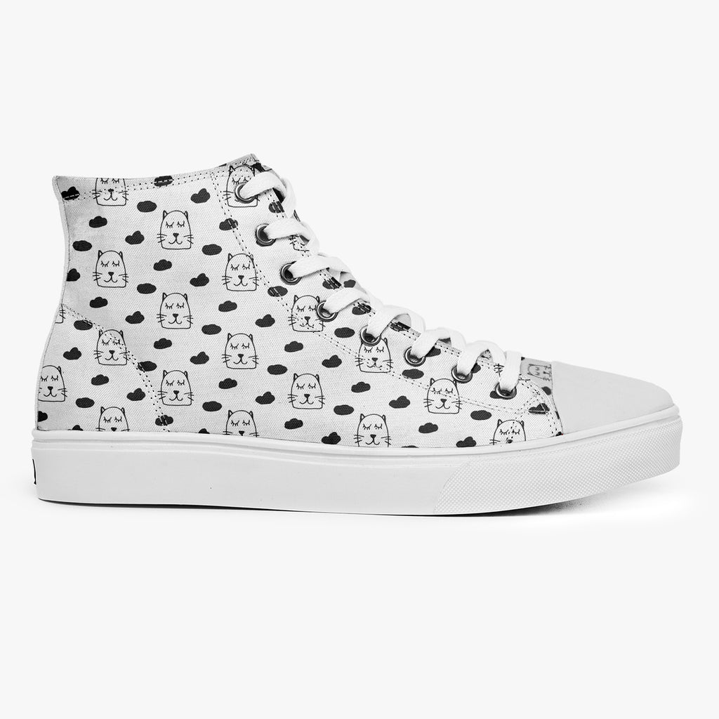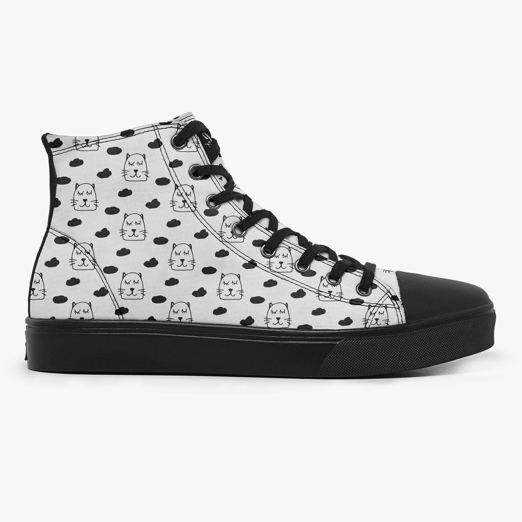 Tênis Cano Alto Branco Cara De Gatinhos Com Nuvens Pretas Animais