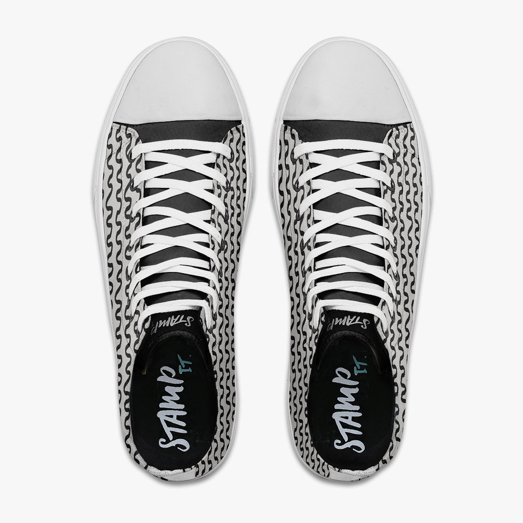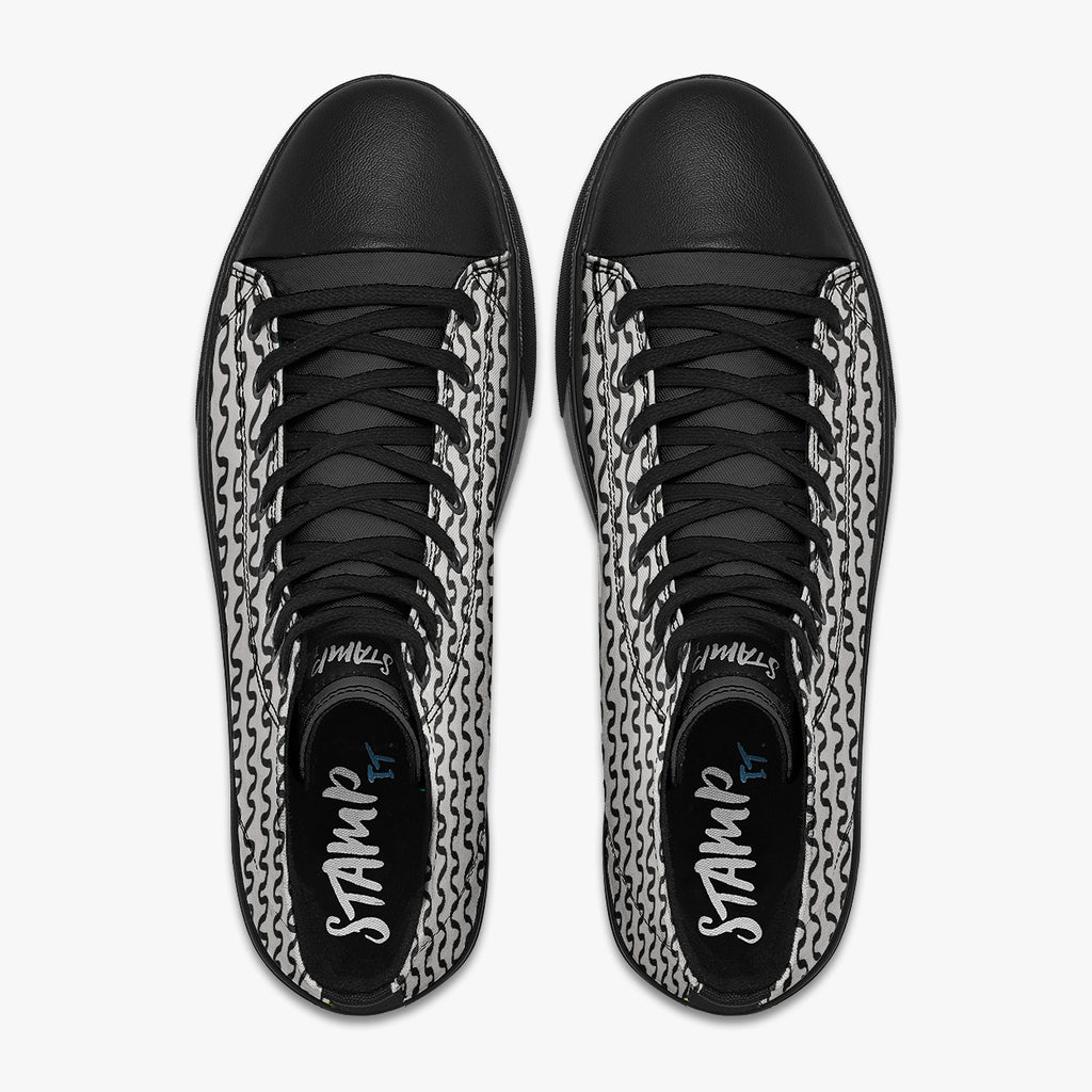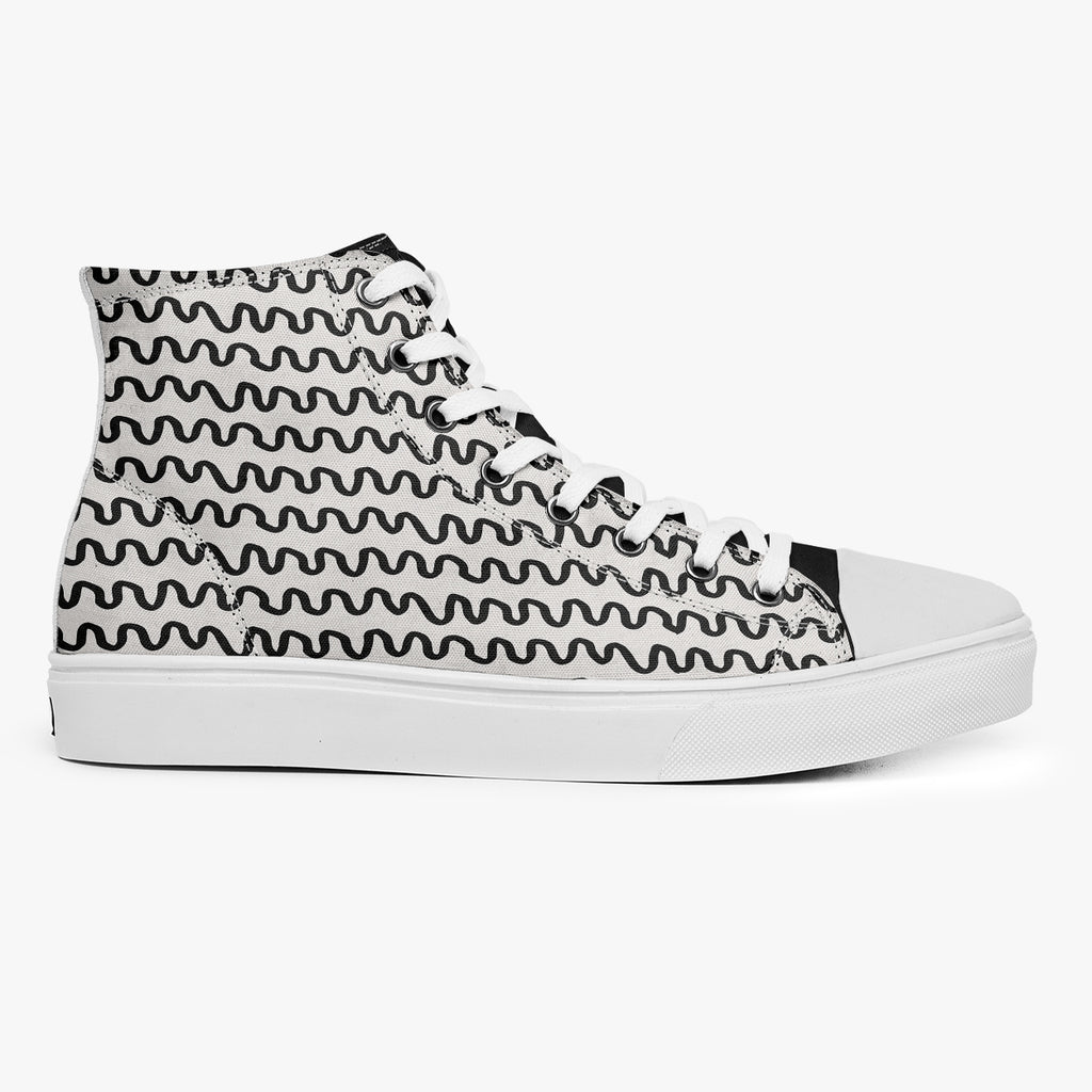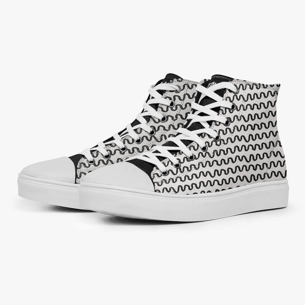 Tênis Cano Alto Branco e Preto Riscos Ondulados Pretos Abstrato