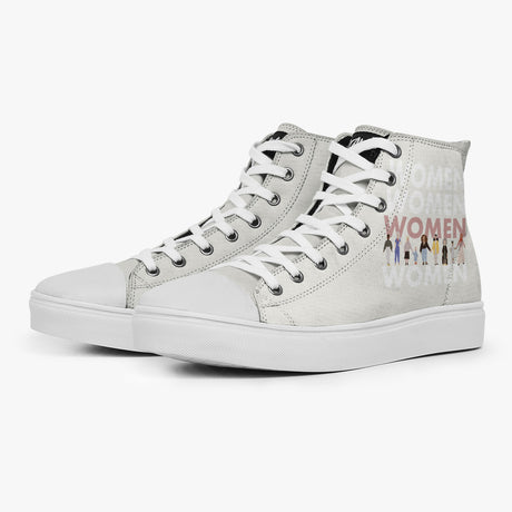 Tênis Cano Alto Branco Girl Power Women Together, confeccionado em lona, com cores e estampas exclusivas.