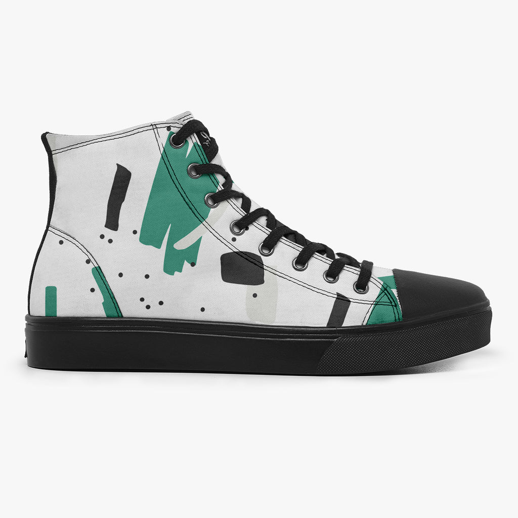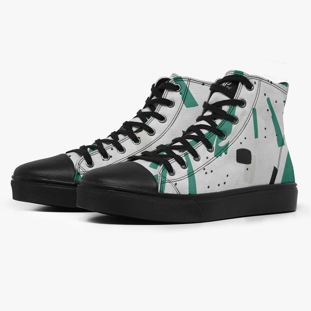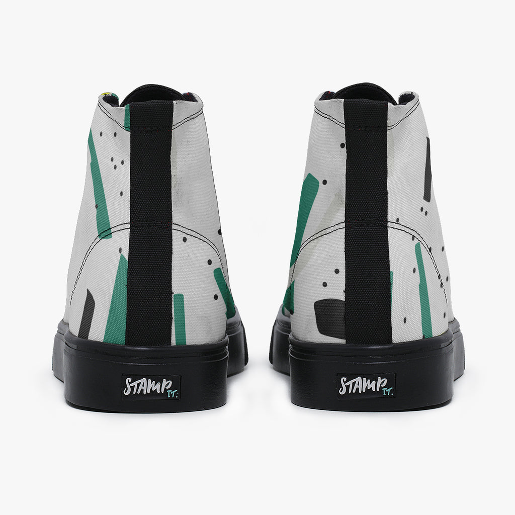 Tênis Cano Alto Branco Riscos Abstratos Verde e Preto Abstrato