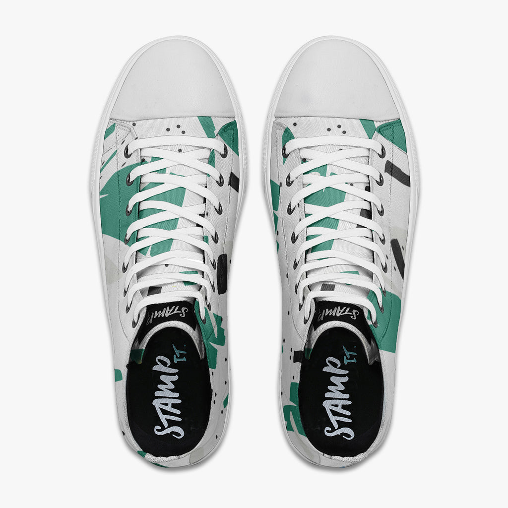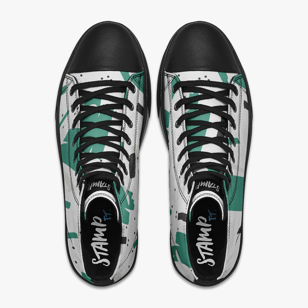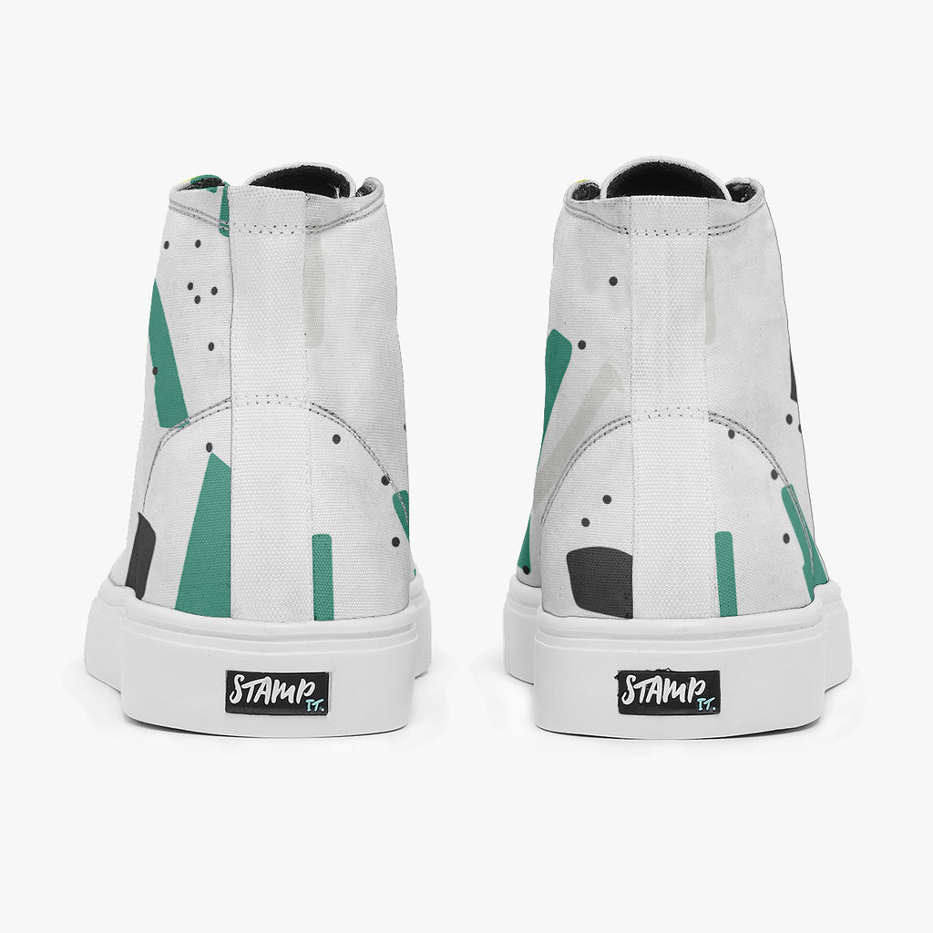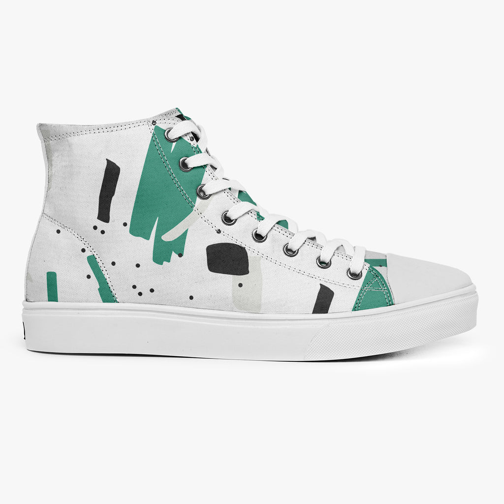 Tênis Cano Alto Branco Riscos Abstratos Verde e Preto Abstrato