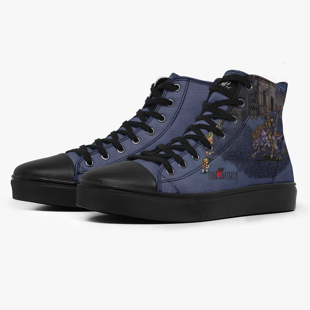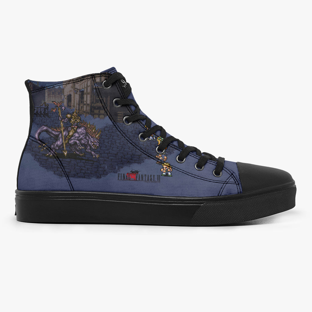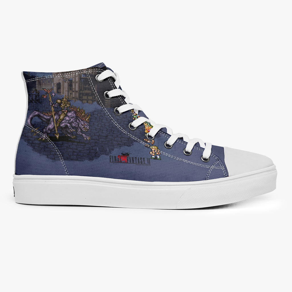 Tênis Cano Alto Cinza Jogos Clássicos Final Fantasy 6 The Battle Games, confeccionado em lona, com cores e estampas exclusivas.
